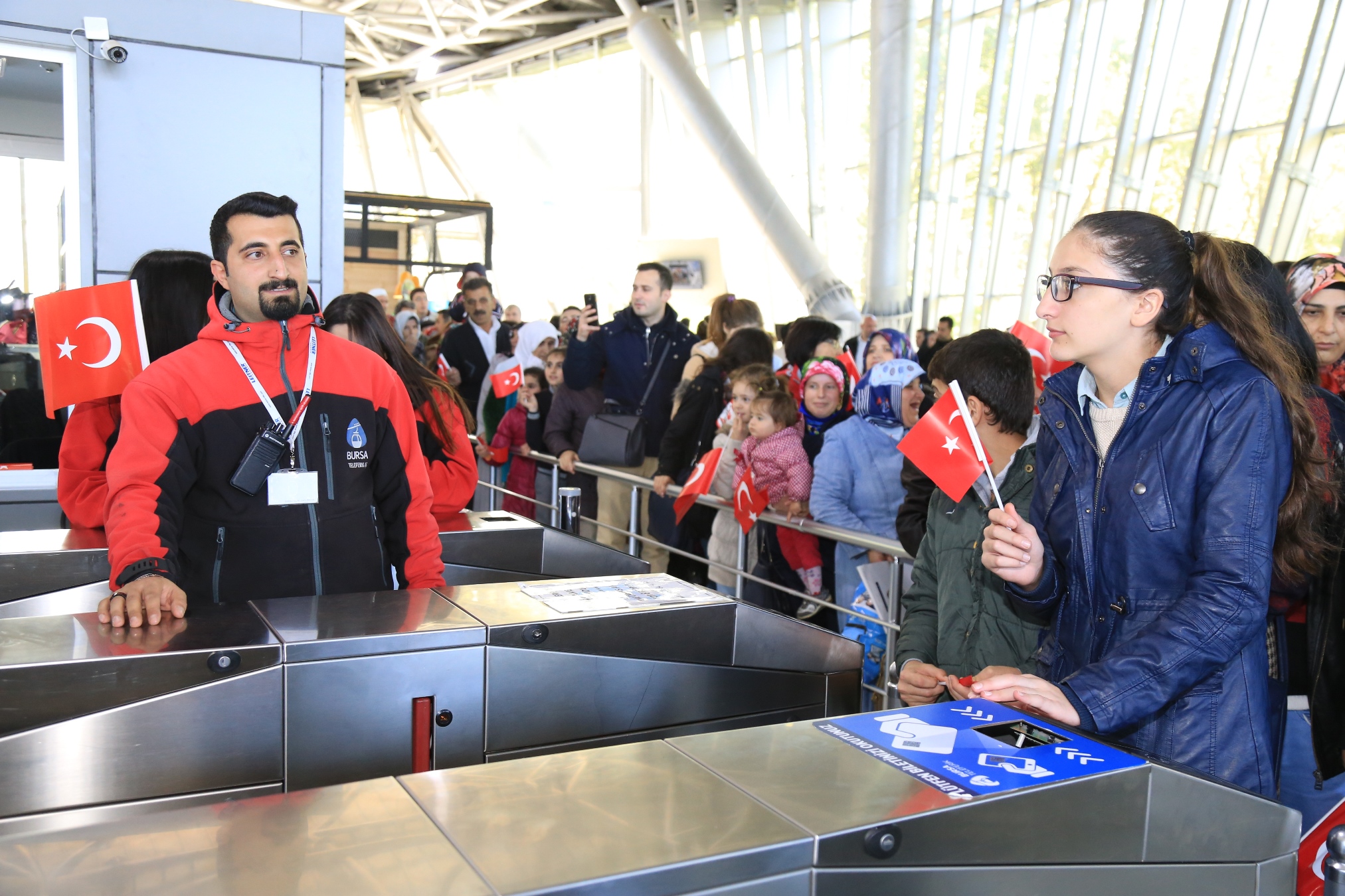Büyükşehir Belediyesi’nin Uludağ’a ulaşımı daha konforlu ve seri hale getirmek amacıyla projelendirdiği ve geçtiğimiz Haziran ayında yolculu seferlere başlayan teleferik, Cumhuriyet Bayramı nedeniyle başlattığı anlamlı kampanyayı bu yıl da sürdürdü. Teleferik A.Ş.’nin tavsiyesi ve Büyükşehir Belediyesi’nin desteğiyle organize edilen kampanya vatandaşlardan büyük ilgi gördü. Teleferikle yolculuk yapmak için eline Türk Bayrağı alan binlerce vatandaş, sabahın erken saatlerinden itibaren Teferrüç İstasyonu’na akın etti.