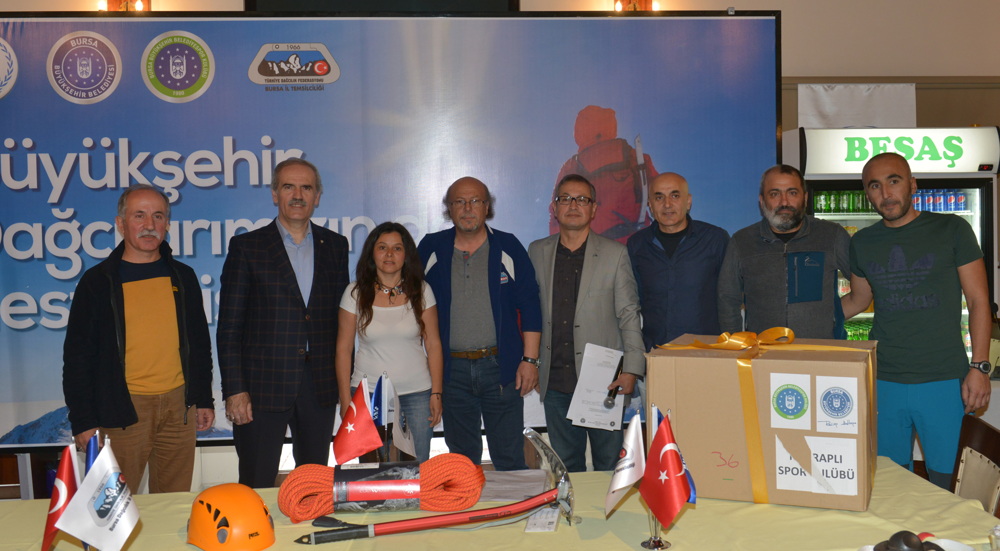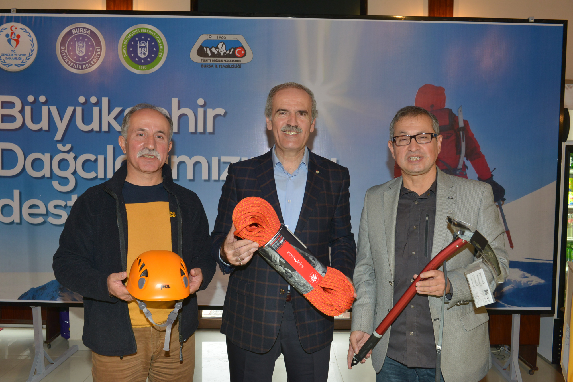 Konuşmaların ardından 22 dağcılık kulübüne kask, kazma ve halattan oluşan malzemeler dağıtıldı.