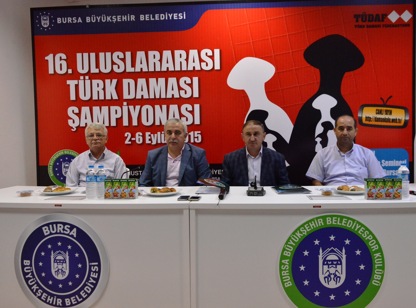 Bu yıl, 2 - 6 Eylül tarihlerinde 16.’sı gerçekleştirilecek olan ‘Uluslararası Türk Daması Şampiyonası’nın basın toplantısı, Bursa Büyükşehir Belediyesi Havuzlu Park Tesisleri Konferans Salonu’nda yapıldı. Basın toplantısına; Mustafakemalpaşa Belediyesi Başkanı ve TÜDAF Onursal Başkanı Sadi Kurtulan, Bursa Büyükşehir Belediyespor Kulübü Başkan Yardımcısı İlhan Satık ve TÜDAF Yönetim Kurulu Üyesi Mustafa Muzaffer Ceylan katıldı.