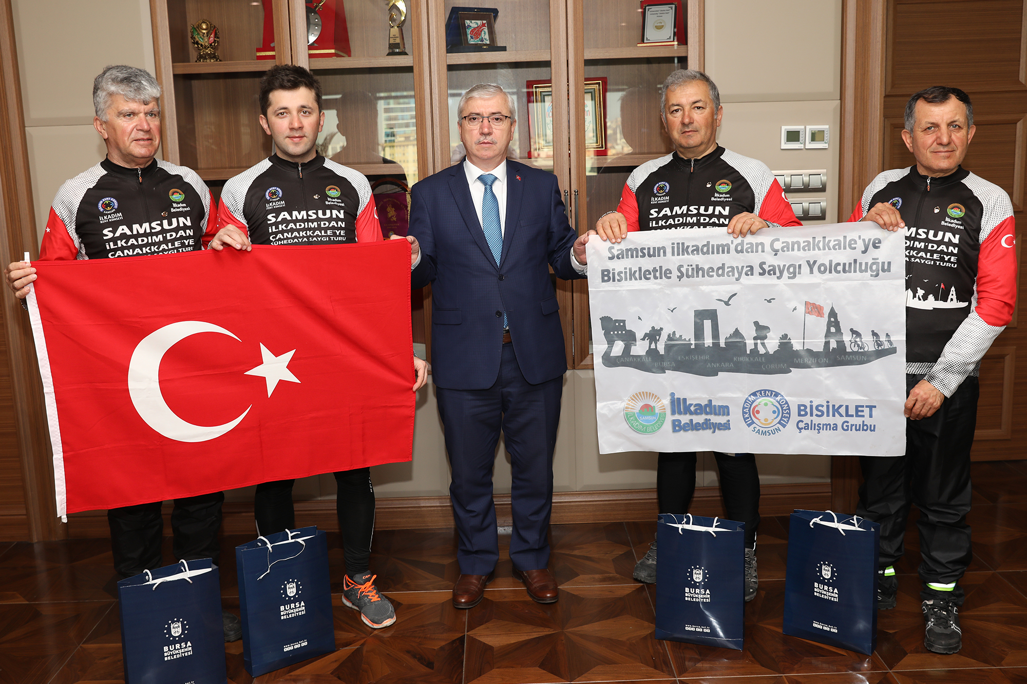 Öte yandan Başkanvekili Köse, Kanuni Sultan Süleyman Eserlerini Koruma ve Yaşatma Derneği Başkanı Ahmet Yavuz ile İlkadım Kent Konseyi Bisiklet Çalışma Grubu ve Ekolojik Yaşam Bisiklet Derneği (EKOBİD) üyelerini de ağırladı. ‘İlkadım’dan Çanakkale’ye Bisikletle Şühedaya Saygı Yolculuğu’ kapsamında, Bursa’ya da uğrayan sporcular, Samsun’un İlkadım İlçesi’nden başlayarak Merzifon / Amasya, Çorum, Kırıkkale, Ankara ve Eskişehir’in ardından Bursa’ya geldiklerini, yolculuğun Balıkesir ve ardından Çanakkale’de sona ereceğini söyledi. Emekli asker, polis ve memurlardan oluşan bisikletliler, uğradıkları kentlerden toprak ve bayrak alarak yollarına devam ettiklerini ve anlamlı yolculukla milli birlik, beraberlik ve dayanışma duygusuna dikkat çekmeyi amaçladıklarını belirtti.