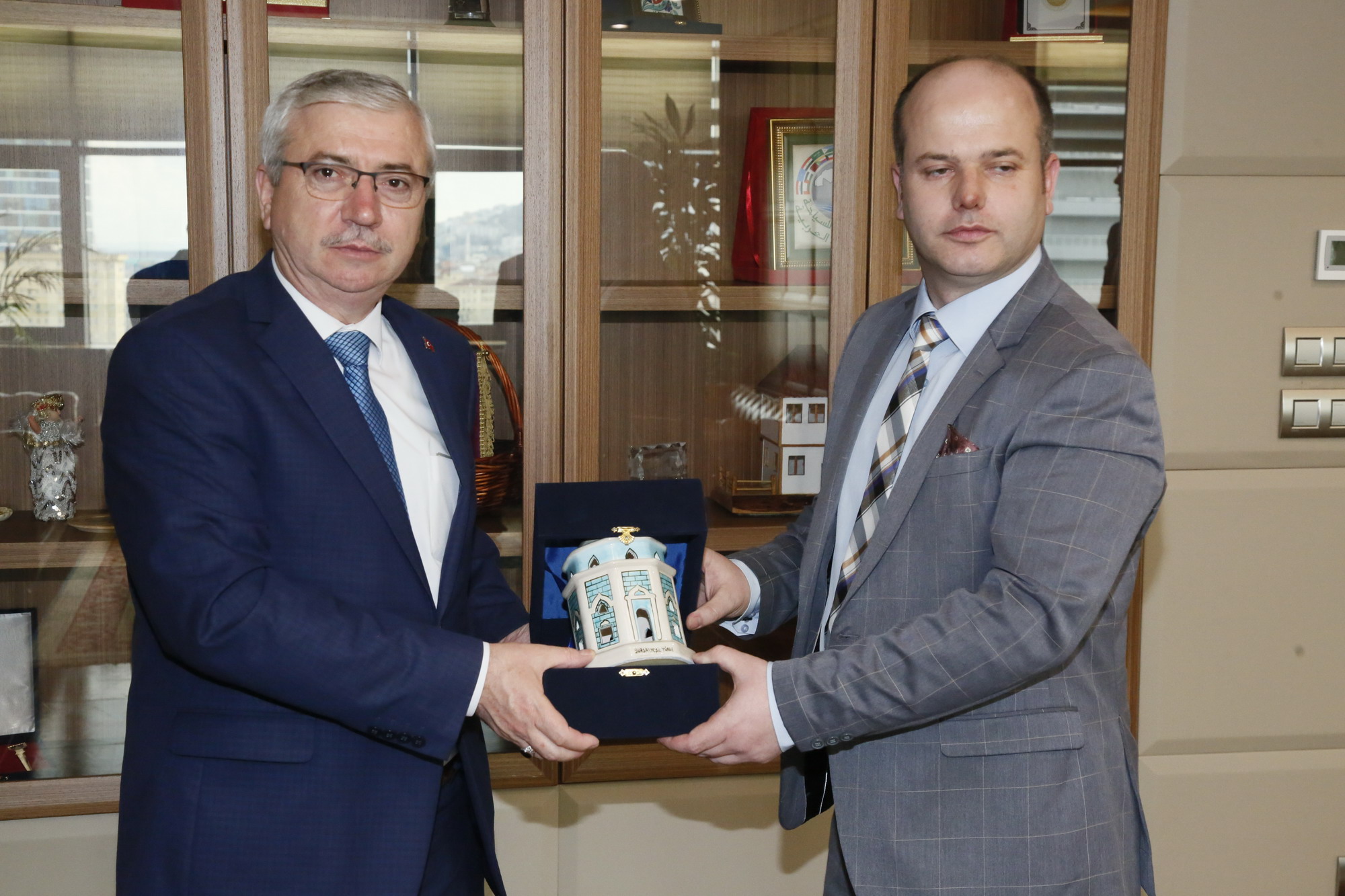 Bursa Büyükşehir Belediyesi Başkanvekili Şükrü Köse, kardeş şehir Manastır Müftüsü Amit Rasimi ile Büyükşehir Belediyesi’nde bir araya geldi. Türkiye ile Makedonya arasındaki ilişkilerin gündeme taşındığı görüşmede, Bursa ile Manastır’ın 1996’da kardeş şehir protokolünü imzaladığını hatırlatan Başkanvekili Şükrü Köse, Osmanlı mirası Balkanlar’ın hiçbir zaman yalnız bırakılmadığını, Bursa Büyükşehir Belediyesi tarafından desteklendiğini anlattı.