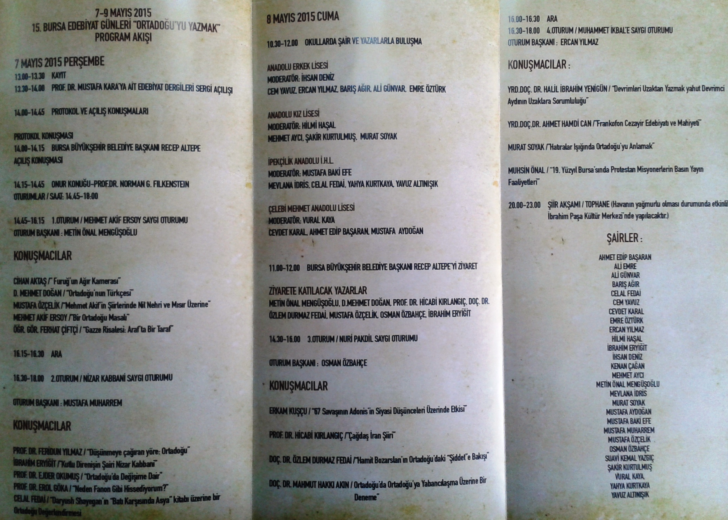 - Bursa Büyükşehir Belediyesi tarafından gerçekleştirilen ‘15. Edebiyat Günleri’, ‘Ortadoğu’yu Yazmak’ temasıyla hayata geçiriliyor.