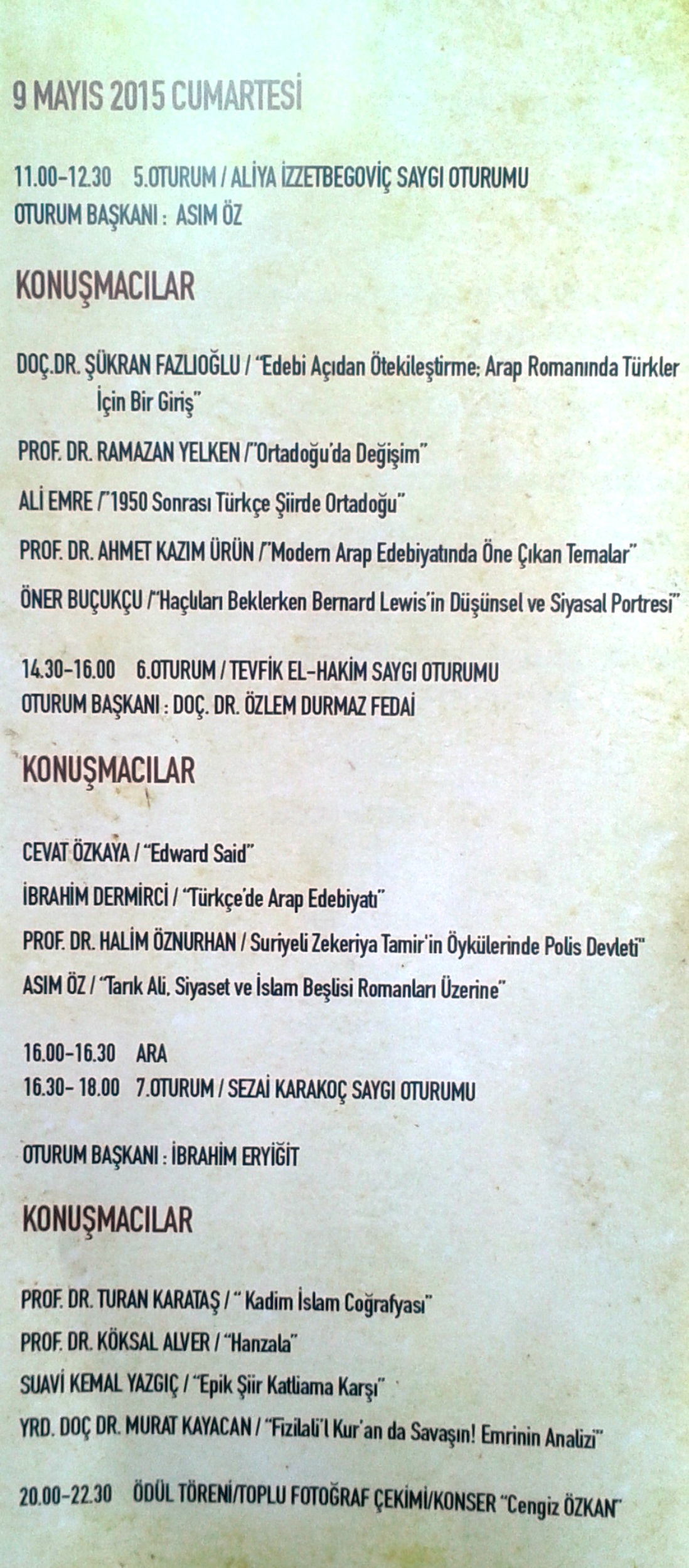 - ‘15. Edebiyat Günleri’nde tema; ‘Ortadoğu’yu Yazmak’