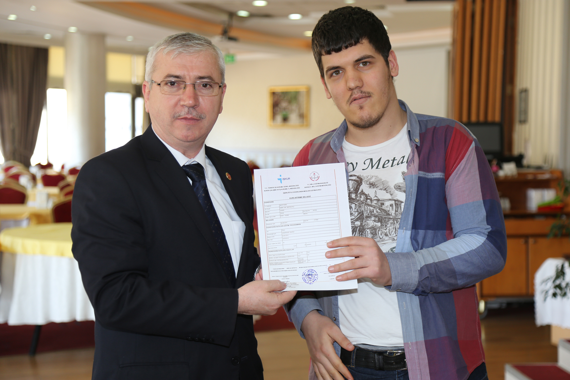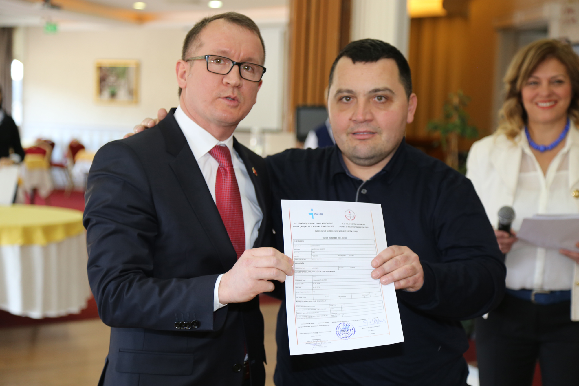 Merinos Gölpark Sosyal Tesisleri’nde yapılan ve Otizmli Çocukları Destekleme Derneği Başkanı Saadet Türkmen’in ev sahibi olduğu sertifika törenine; Büyükşehir Belediye başkanvekilleri Abdülkadir Karlık ile Şükrü Köse, İŞKUR İl Müdürü Kasım Tilki, Aile ve Sosyal Politikalar Bakanlığı İl Müdürü Şevket Barca, belediye bürokratları ve davetliler katıldı.