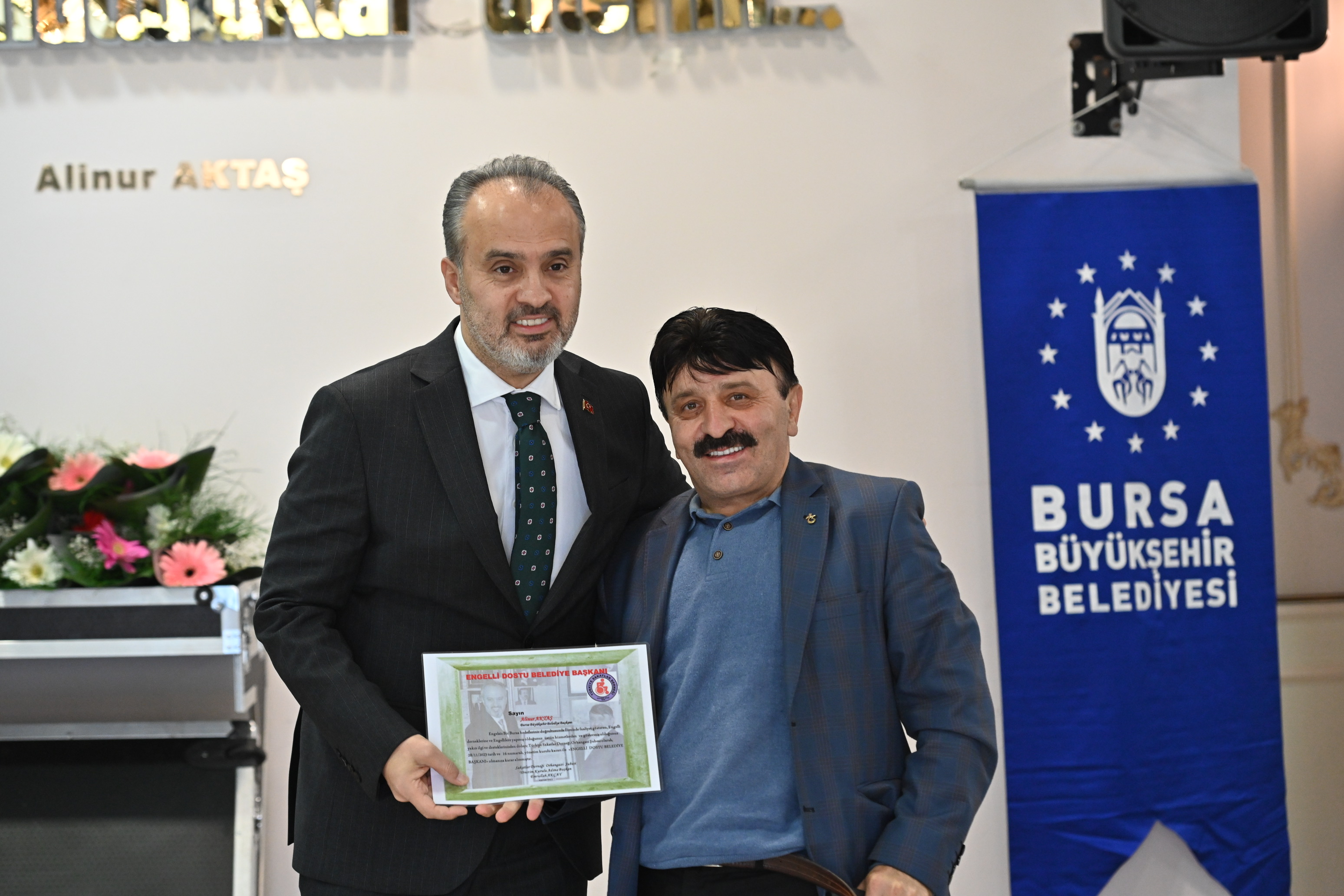 Konuşmaların ardından Türkiye Sakatlar Derneği Orhangazi Şubesi adına Emrullah Akçay, Bursa Otizm Dernekleri Platformu adına Ferhan Özvatan, Kıymet Bilgici ve Hüsamettin Akyıldız desteklerinden ötürü Başkan Aktaş’a plaket verdi. Ayrıca Engelliler Şube Müdürlüğü’nün düzenlediği derslerden yararlanan öğrenciler de Başkan Aktaş’a çiçek takdim etti.