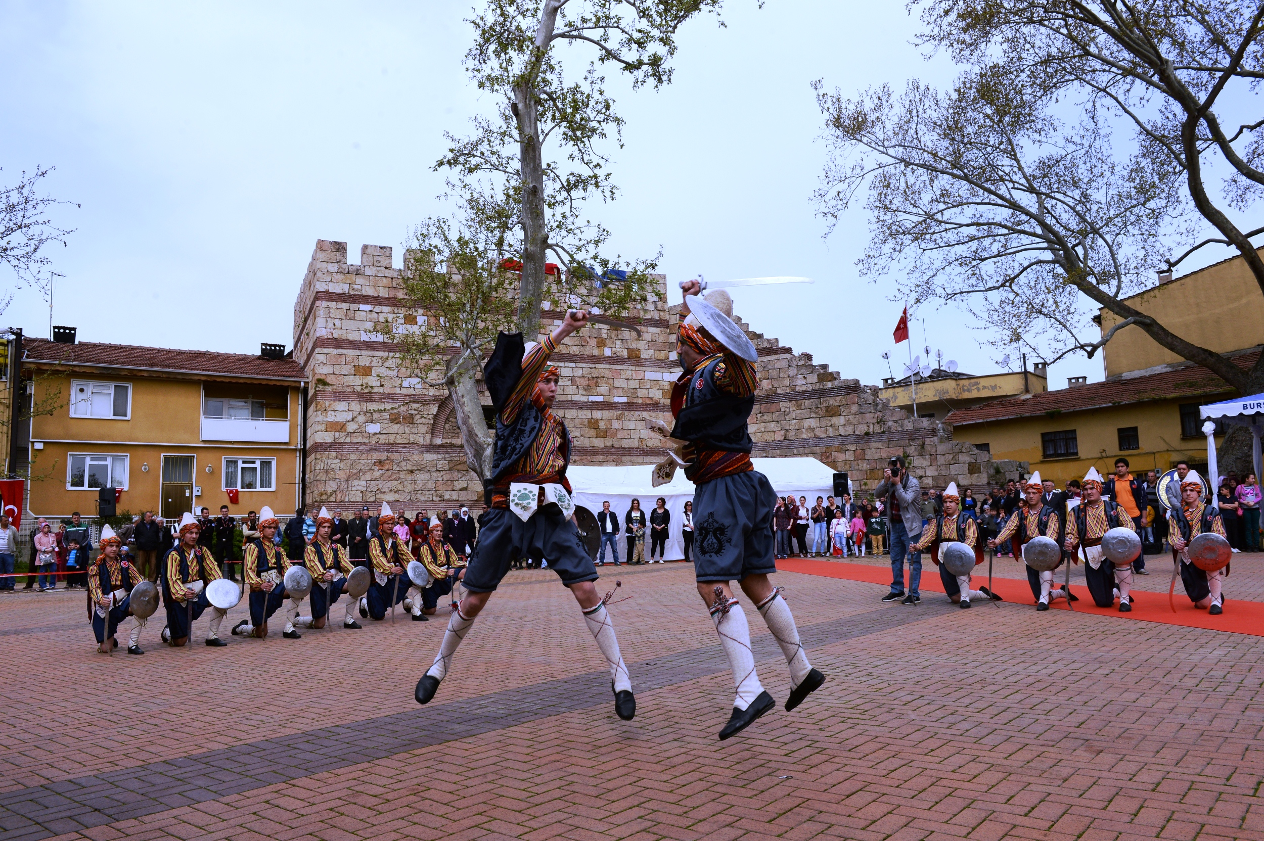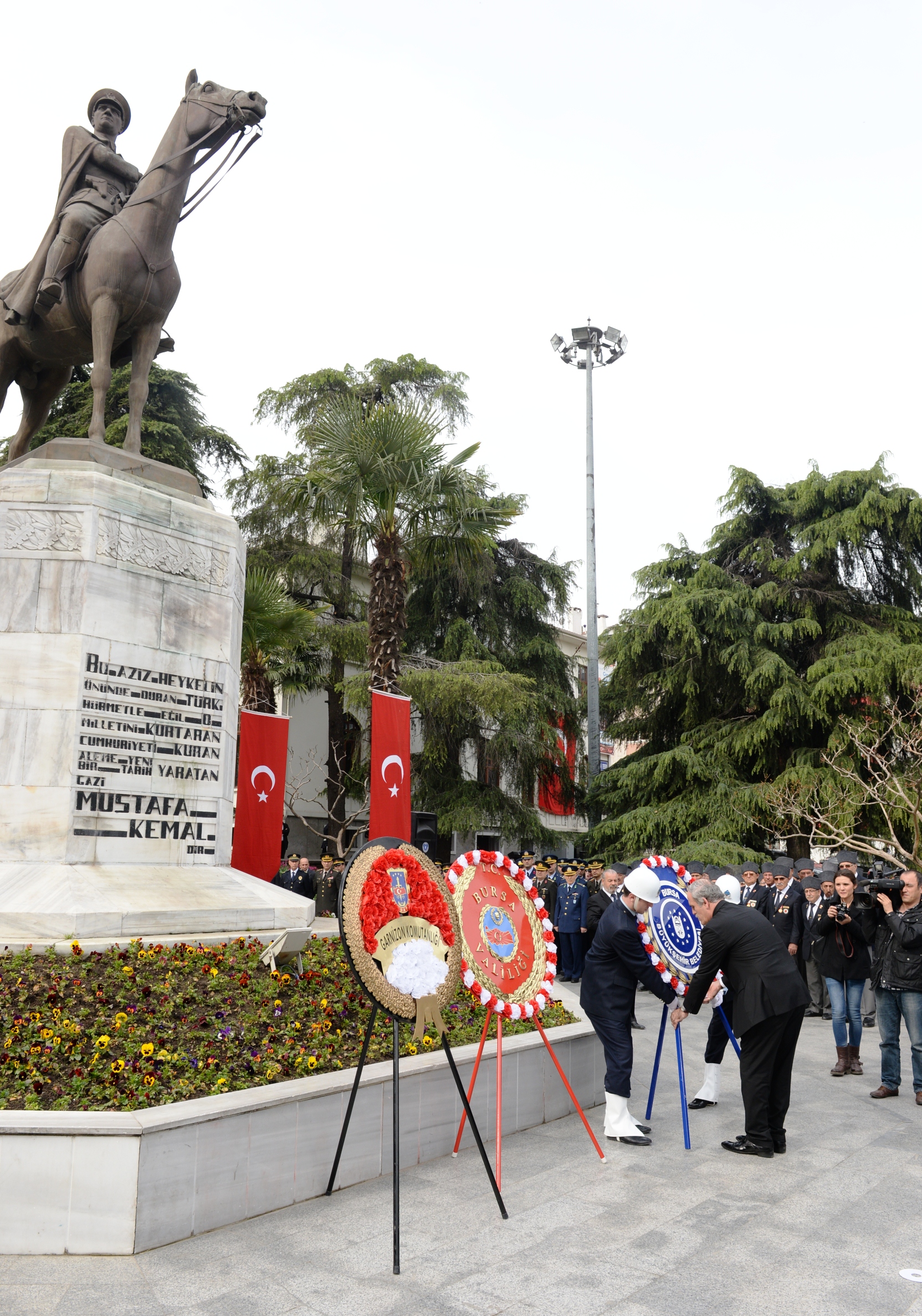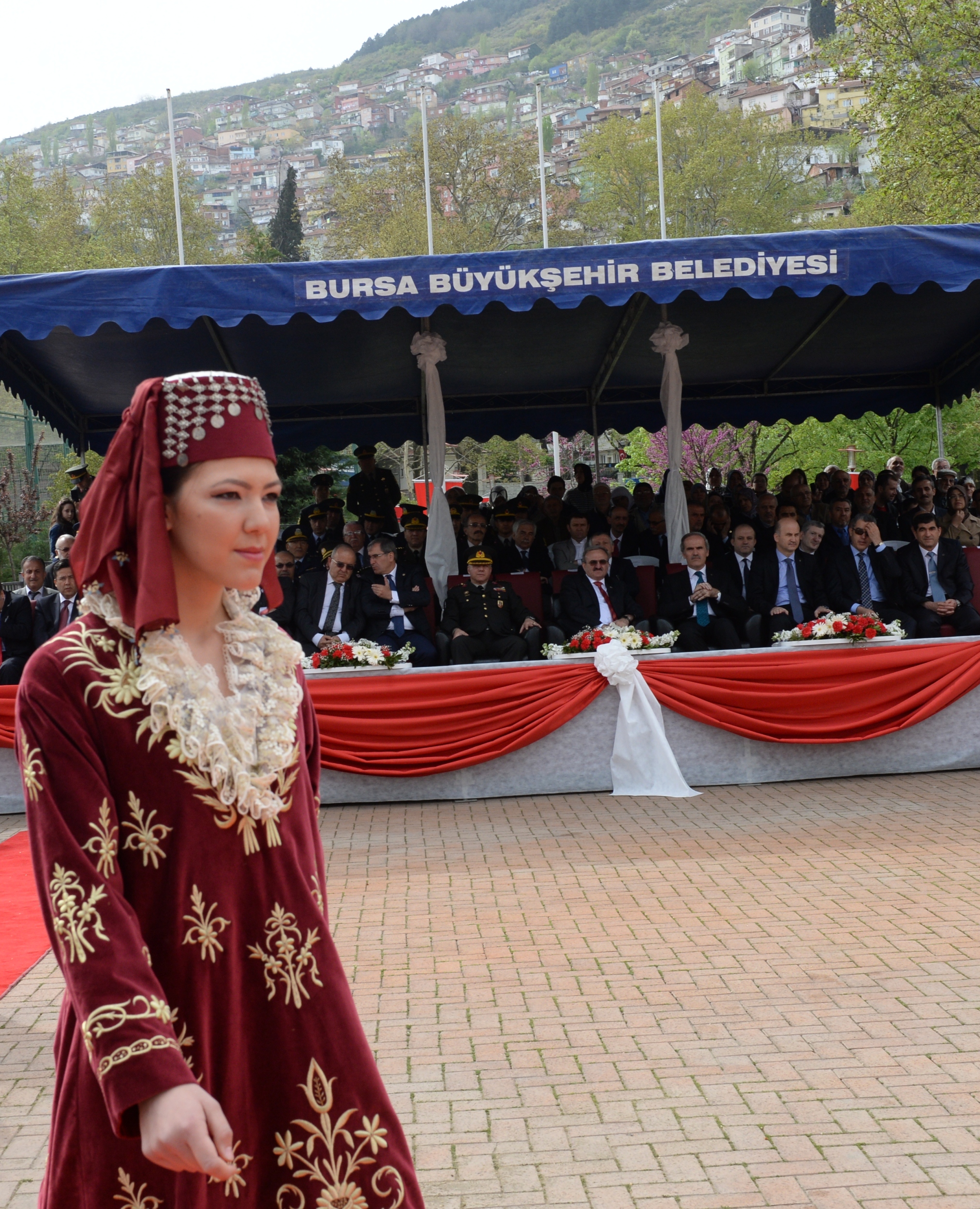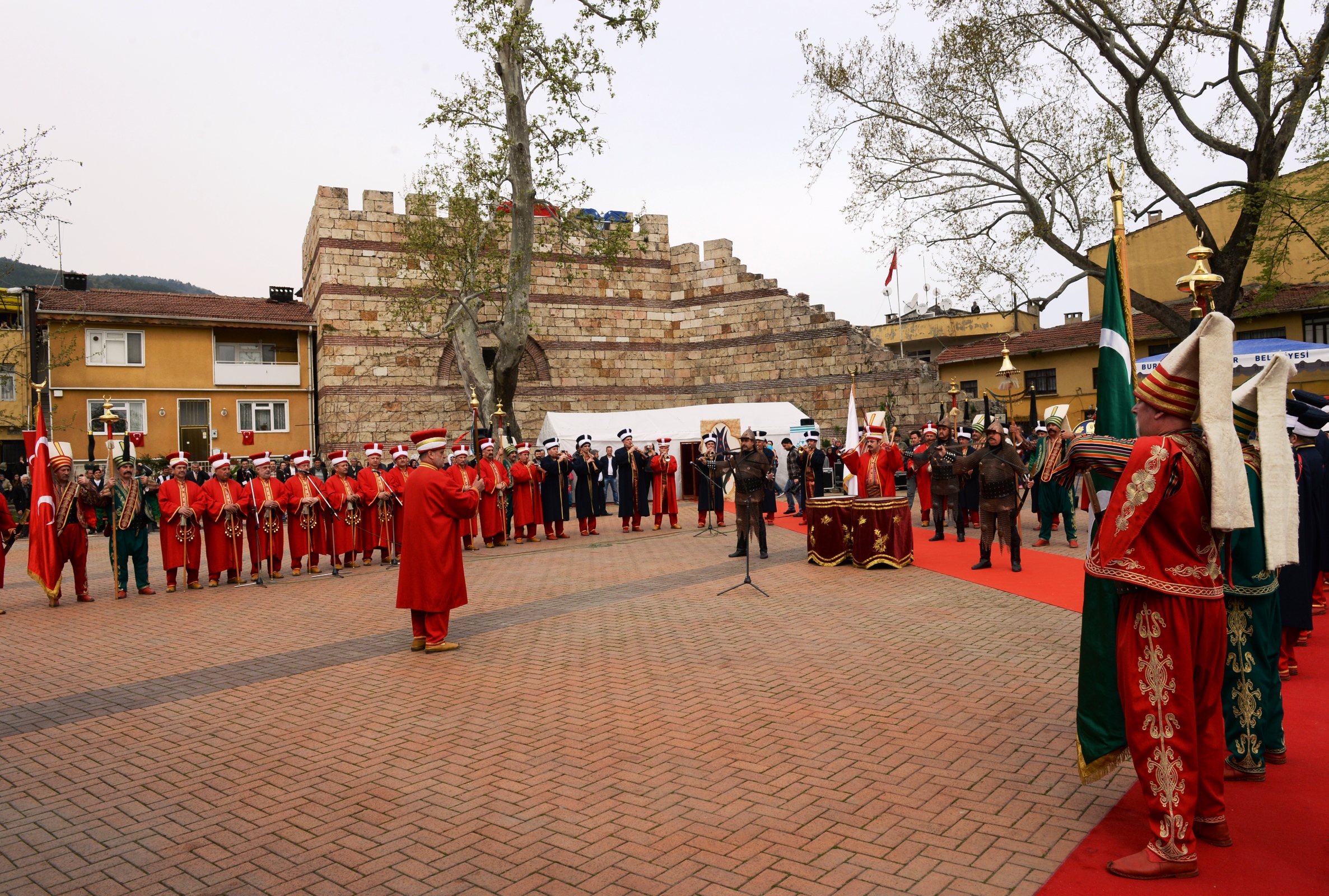 Vali Münir Karaloğlu ve Jandarma Alay Komutanı Albay Vedat Çolak ile çeşitli kamu kurum ve kuruluşlarının temsilcilerinin de katıldığı programda Osmangazi Belediyesi Gösteri Sanatları Topluluğu halk danslarıyla, Olgunlaşma Enstitüsü de Osmanlı Dönemi Kıyafetleri defilesiyle programa renk kattı. Bursa Mehteran Takımı ile Tahtakıran Kılıç Kalkan ekibi de gösterileriyle nefes kesti. Vatandaşların yoğun ilgiyle izlediği törenler kapsamında Tophane’de de Osman Gazi ve Orhan Gazi türbeleri ziyaret edildi.