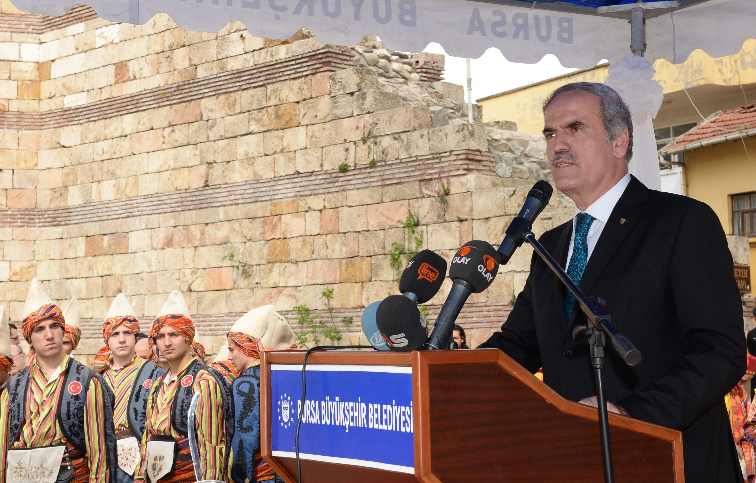 Bursa’nın fethinin 688. yıldönümü, kentte renkli görüntülere sahne oldu. Bursalıların gururla izlediği fetih şenlikleri, anlamlı bir organizasyona imzasını attı. Bursa Valiliği, Garnizon Komutanlığı ve Büyükşehir Belediye Başkanlığı tarafından Atatürk Anıtı’na çelenk sunumuyla başlayan törenler, Pınarbaşı Fetih Kapısı surları önündeki alanda devam etti.
