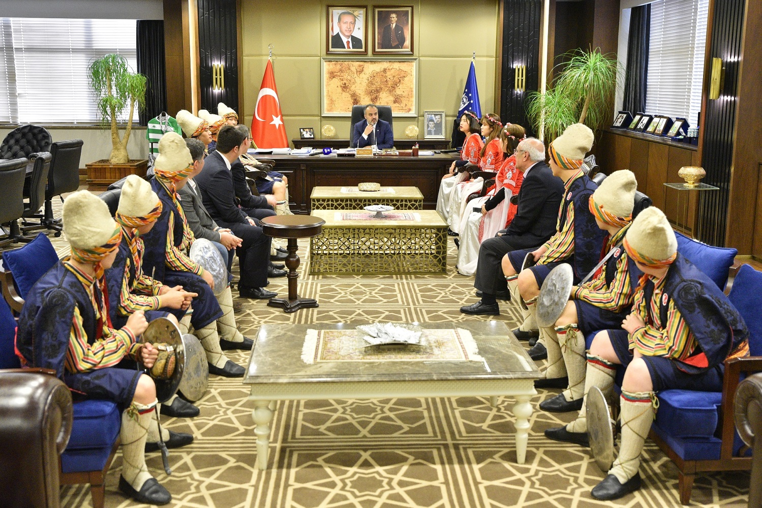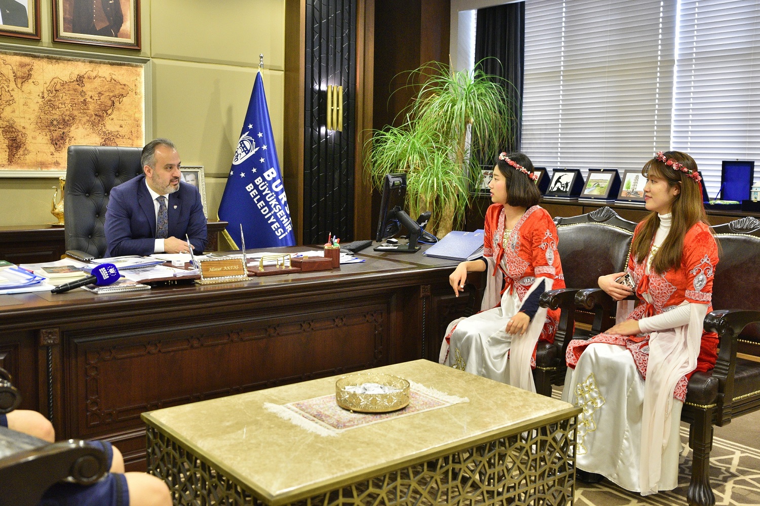 BURSA - Büyükşehir Belediyesi’nin Bursa’nın Güney Kore’de tanıtılmasına yönelik çalışmalar kapsamında Türkçe ve kılıç kalkan oyununu öğrenen Koreli 7 öğrenci, Büyükşehir Belediye Başkanı Alinur Aktaş’ı ziyaret etti. Güney Kore ile tarihten gelen bağı Büyükşehir Belediyesi olarak gerçekleştirdikleri faaliyetlerle daha da güçlendirdiklerini belirten Başkan Aktaş, “Şehrimizi dünyanın farklı şehirlerinde tanıtmanın derdi ve heyecanı içerisindeyiz. Atalarımız, zamanında Güney Kore’nin hürriyeti için mücadele etti. Şehitler verdik. Dolayısıyla, bu anlamlı buluşma nedeniyle Koreli kardeşlerimize teşekkür ediyorum” dedi.