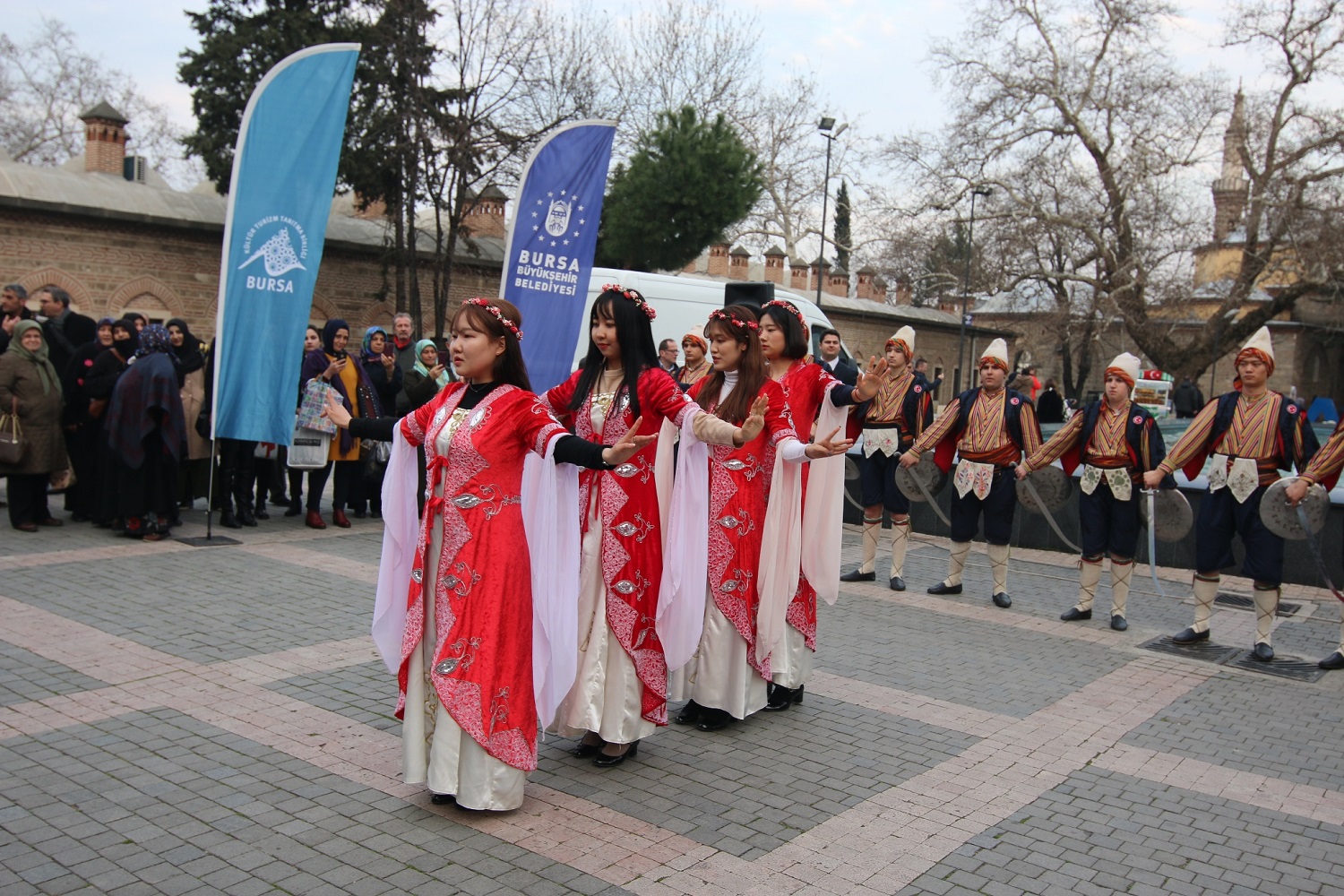 Büyükşehir Belediyesi’nin, 2019 yılında Bursa Kültür Turizm Tanıtma Birliği ve BEBKA desteğiyle, Bursa’nın Güney Kore’de tanıtılmasına yönelik başlattığı çalışmalar meyvelerini vermeye başladı. Yapılan faaliyetlerin bir parçası olarak Hankuk Üniversitesi’nde Türkoloji okuyan ve Seul Yunus Emre Enstitüsü’nün organizasyonuyla Bursa’nın kılıç kalkan oyununu öğrenen 7 öğrenci, Türk Hava Yolları (THY) ve Büyükşehir Belediyesi’nin ev sahipliğinde Bursa’yı ziyaret ederek, Büyükşehir Belediye Başkanı Alinur Aktaş’la bir araya geldi. Başkan Alinur Aktaş, kendisiyle görüşen Koreli öğrencilerle sohbet ederek, Güney Kore’de gerçekleştirdikleri faaliyetlere ilişkin misafir öğrencilerin görüş ve düşüncelerini aldı. Başkan Aktaş’la buluşmanın ardından Bursa’yı gezen Koreli öğrenciler, şehrin kültürel, turistik ve tarihi zenginliklerini yerinde görme fırsatını buldu. Ayrıca Orhangazi Meydanı’nda Koreli kılıç kalkan ekibi ile Tahtakıran Kılıç Kalkan Derneği, ortak gösteri yaptı. Gösteri sırasında Koreli 4 kız öğrenci, ülkelerinde öğrendikleri Kafkas dansı ile bir gösteri daha gerçekleştirdi.