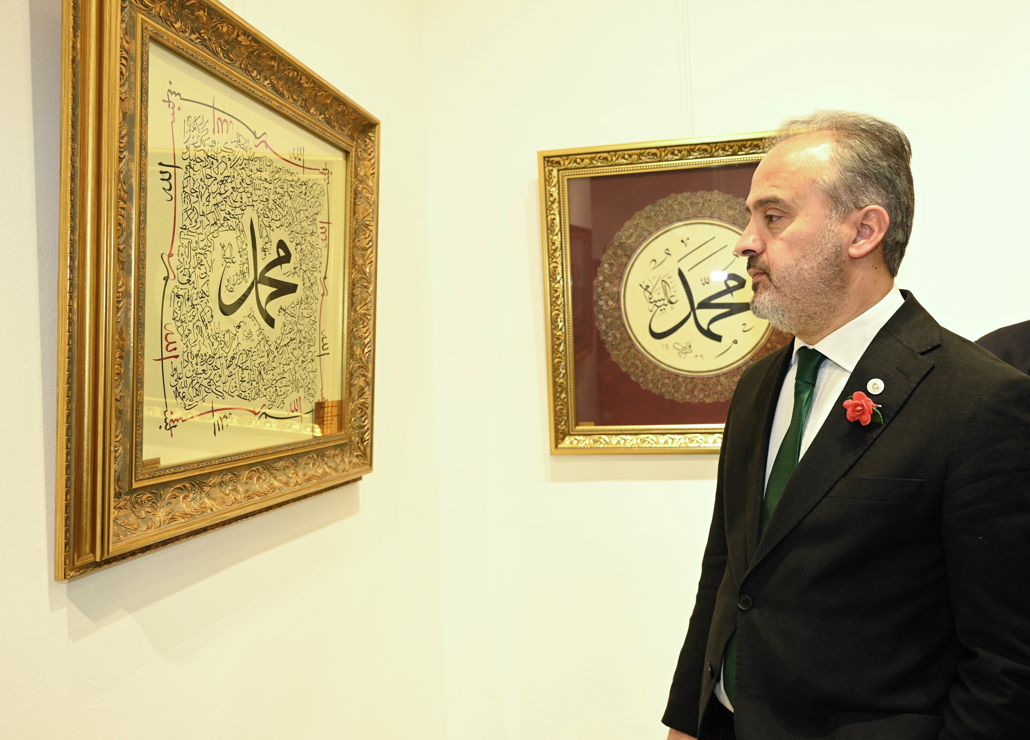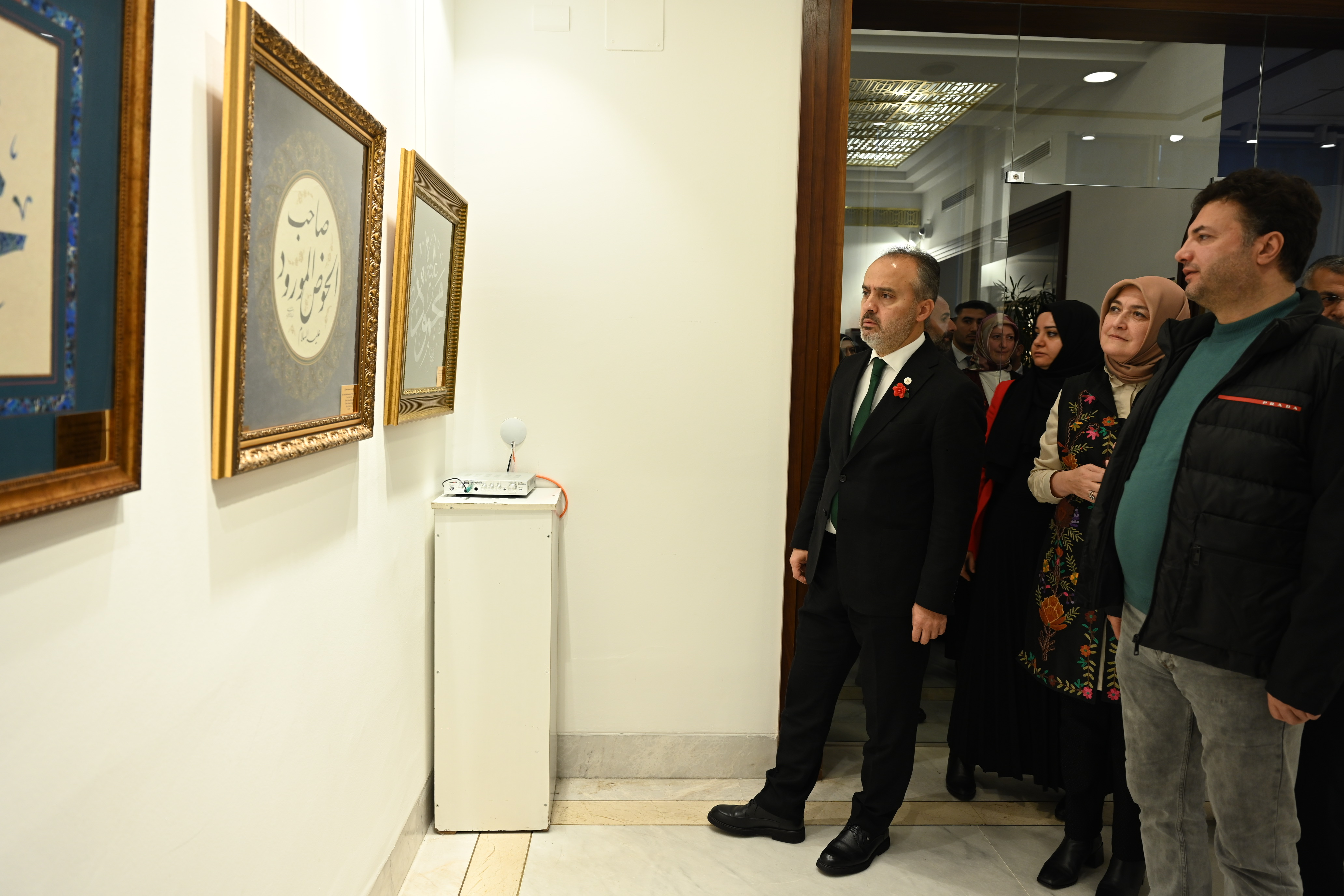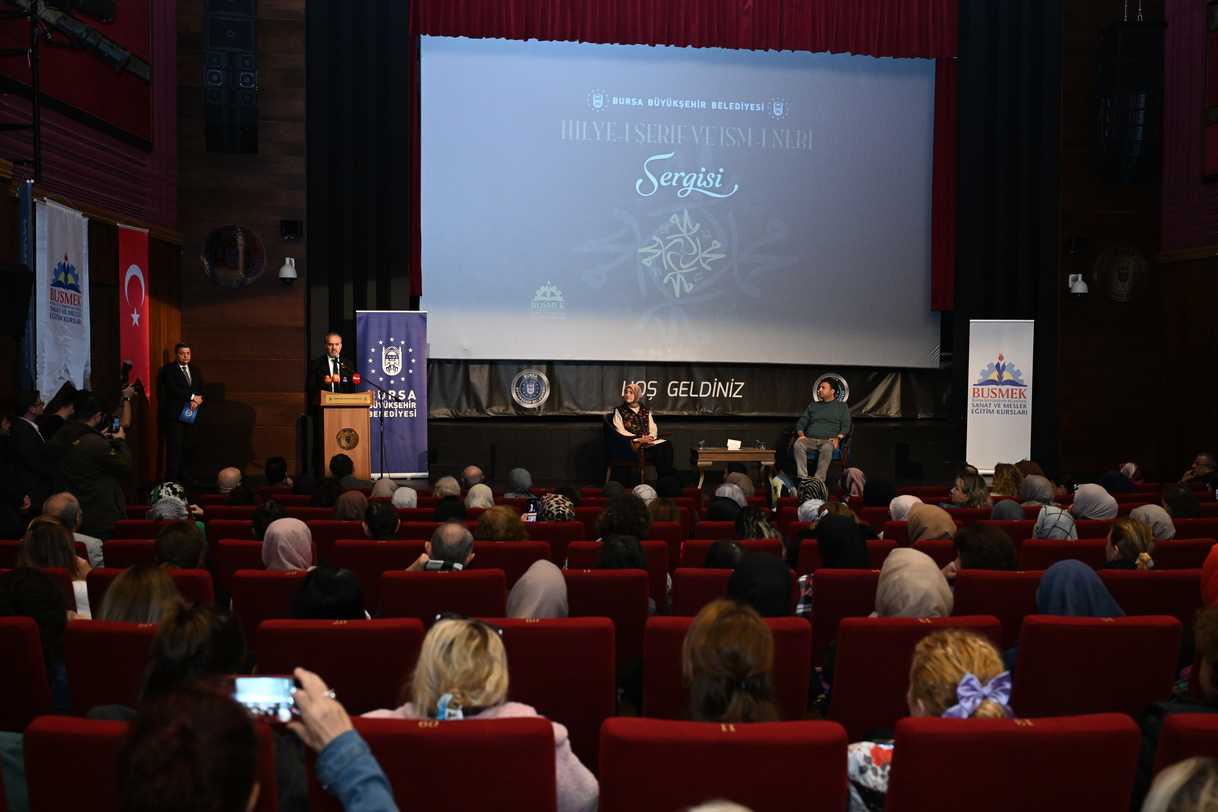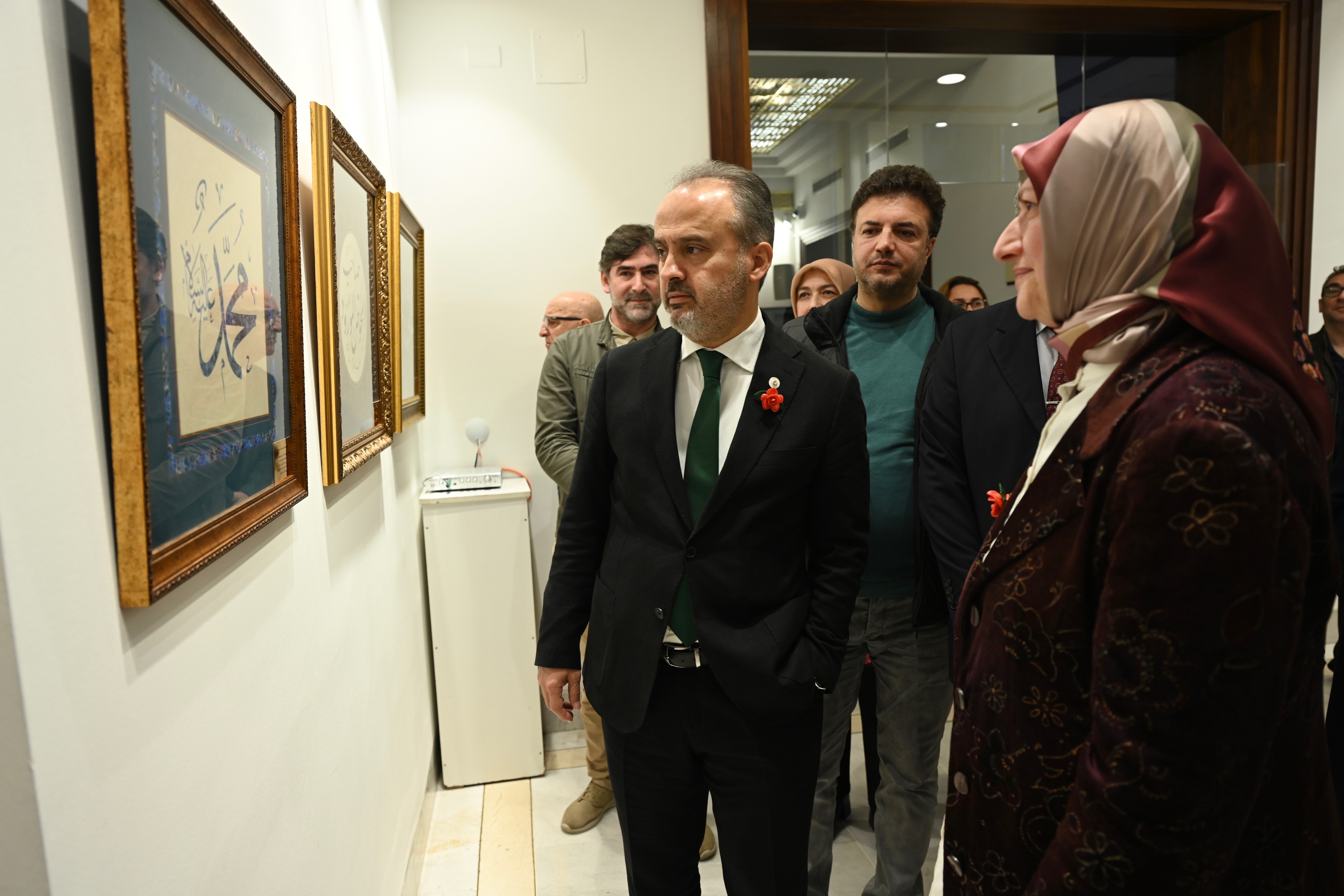 Panelin sonunda konuşan Bursa Büyükşehir Belediye Başkanı Alinur Aktaş, Hilye-i şerifin özellikle sanat ve edebiyat alanında yüksek dini duygularla işlenmiş konulardan biri olduğunu söyledi. Hat sanatında da Peygamberimizin görünüşünü anlatan hadis-i şerif ile dört halifenin isimlerinin yer aldığı güzel hatlarla yazılmış levhaları ihtiva eden eserlere ‘hilye-i saâdet’ veya ‘hilye-i şerîfe’ denildiğini anlatan Başkan Aktaş, “Hattatlar arasında Hazreti Ali'nin tarifinin hilye şeklinde yazılması bir gelenek halini almıştır. İsm-i nebî de Peygamber Efendimizin mübarek isimleri anlamına gelmektedir. Bu mübarek isimler genelde övgü anlamı taşımaktadır. Hilye-i şerif ve İsm-i nebi, İslam kültür ve sanatının önemli birer parçalarıdır. BUSMEK, açıldığı günden bu yana düzenlediği ücretsiz eğitimlerle, halkımızın takdirini toplamaya devam ediyor. Bu merkezlerimiz, ücretsiz sanat ve meslek eğitimlerinin yanı sıra hüsnühat, tezhip, ebru ve minyatür gibi Türk İslam el sanatlarına da büyük önem veriyor. Türk-İslam el sanatlarını yaşatma vizyonuyla düzenledikleri faaliyetlere Hilye-i şerif ve İsm-i nebi sergilerini de ekleyerek çalışmalarını zenginleştiriyorlar. Sergiyi tüm Bursalıların görmesini temenni ediyorum. Emeği geçen sanatçılarımızı kutluyorum. Sergimiz hayırlı olsun” dedi.