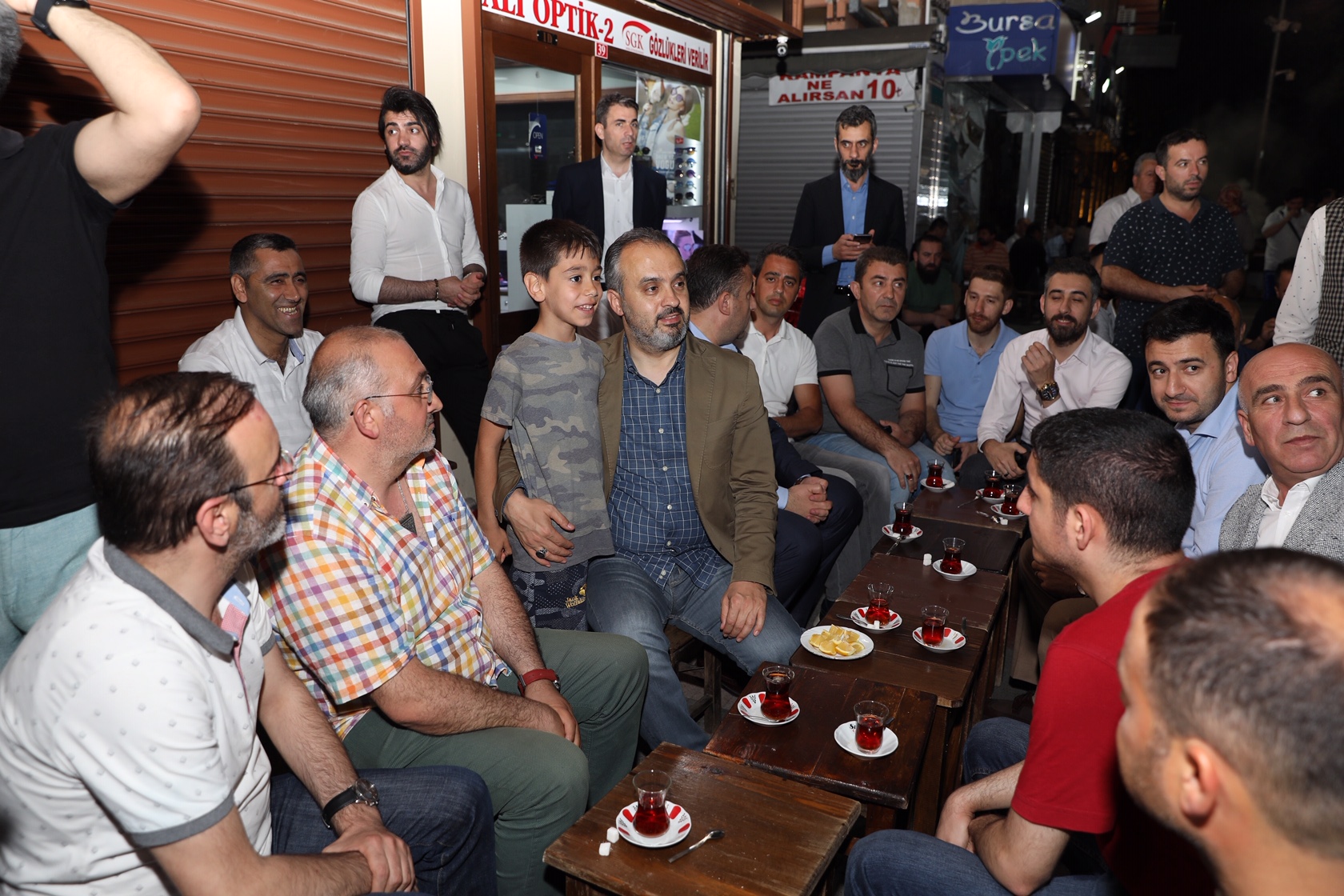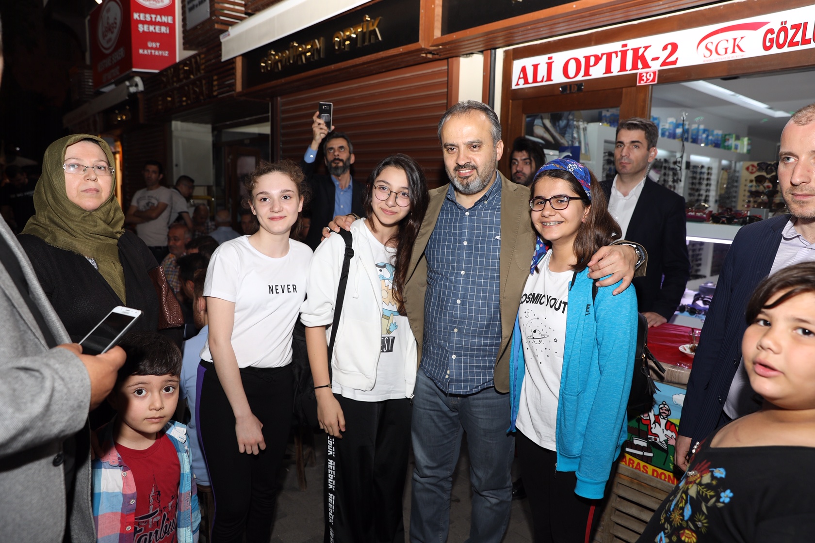 Başkan Aktaş, gecenin ilerleyen saatlerinde de Ulu Cami'de vatandaşlarla buluştu. Ulu Cami çevresindeki esnaflarla çay için sohbet eden Başkan Aktaş, kendisiyle fotoğraf çektirmek isteyen vatandaşları da geri çevirmedi. Kadir Gecesi nedeniyle yoğunluğun bir an olsun eksilmediği Ulu Cami'de vatandaşlara sahurluk ikramı yapıldı. Başkan Aktaş, beraberindeki AK Parti Osmangazi İlçe Başkanı Ufuk Cömez ile birlikte vatandaşlara sahurluk dağıttı.