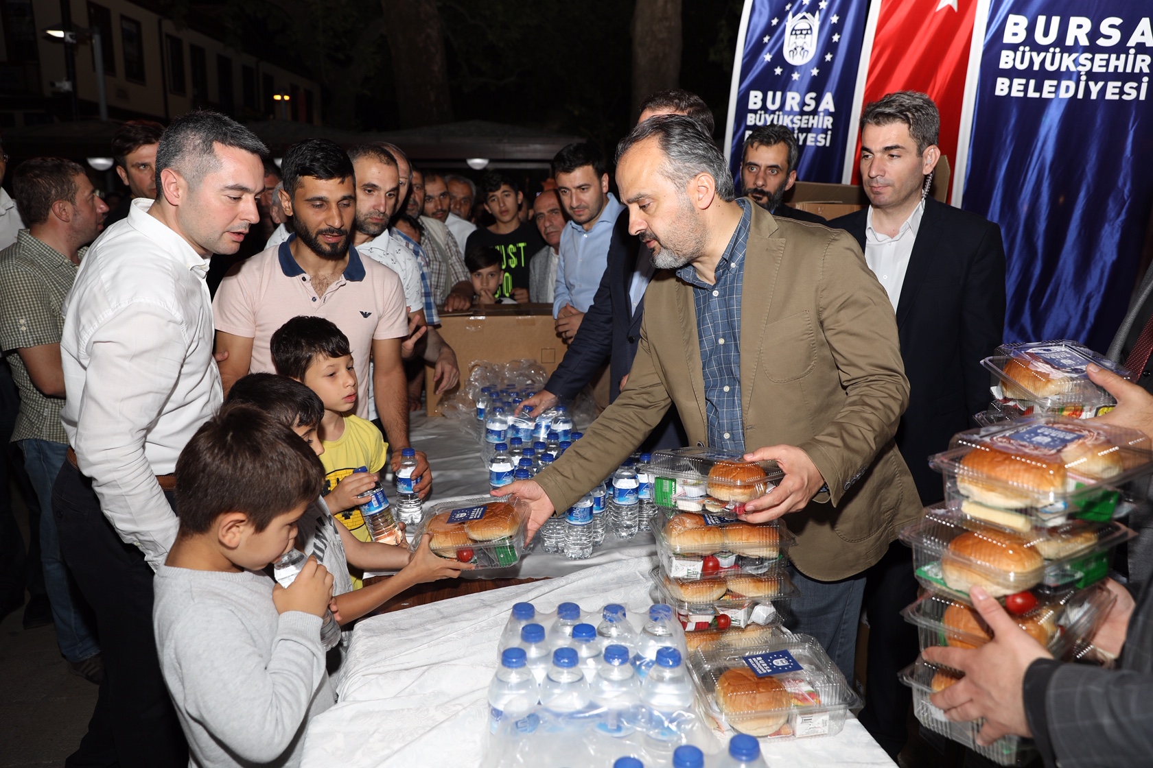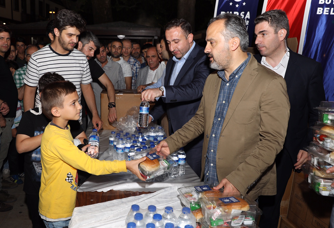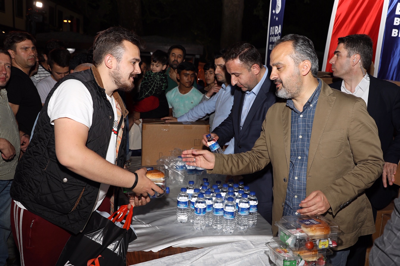 BURSA - Kadir gecesi nedeniyle Demirtaş Merkez Camii'ne akın eden vatandaşların manevi coşkusuna ortak olan Bursa Büyükşehir Belediye Başkanı Alinur Aktaş, gece de Ulu Cami'de vatandaşlara sahurluk ikramında bulundu.