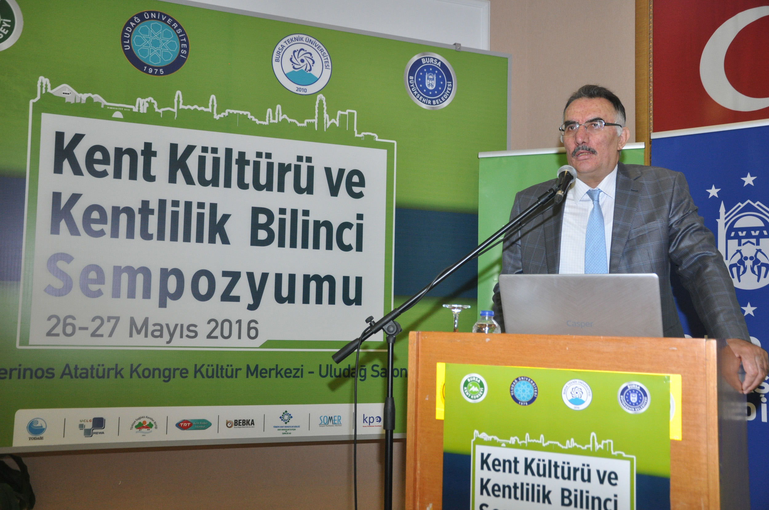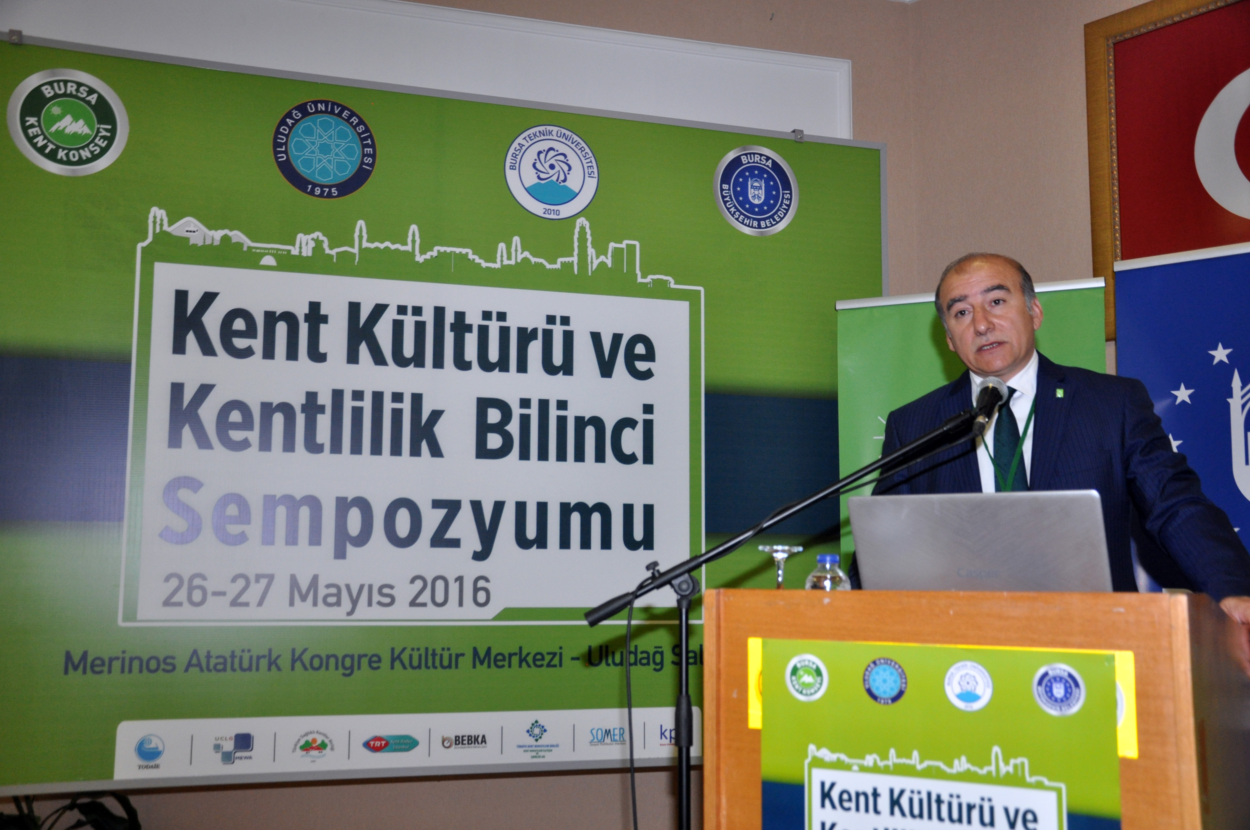 Saygı duruşu ve İstiklal Marşı’nın okunmasıyla başlayan programın açılış konuşmasını yapan Bursa Kent Konseyi Başkanı Hasan Çepni, şehirleri sürekli gelişen, yerleşme, barınma, çalışma, dinlenme gibi gereksinimlerin karşılandığı yerler olarak tanımladı. Şehirleşmenin tarihinin uygarlıkla eşdeğere olduğunu ifade eden Çepni, “Şehirlerin taşıdığı anlamlar tarih boyunca sürekli değişikliğe uğramıştır. Günümüzde şehirlerin nüfus ve yayıldıkları alan olarak sürekli büyümesi, kentlilik bilincini ve kent kültürünü tartışmaya zorunlu hale getirmiştir. Hızı ve yoğunluğu kestirilemeyen şehirlerin büyümesi, kültür sistemi oluşturmak için gerekli koşulların oluşmamasına sebep olmaktadır. Bu düşünceden yola çıkarak 40 üniversiteden 59 akademisyenin ve 27 kent konseyinden temsilcinin katıldığı sempozyumun düzenlenmesini zaruri gördük. Sempozyum kapsamında kent kültürü, kentlilik bilinci, kentsel aidiyet, kent kimliği gibi konular iki gün boyunca konuşulacak” dedi.