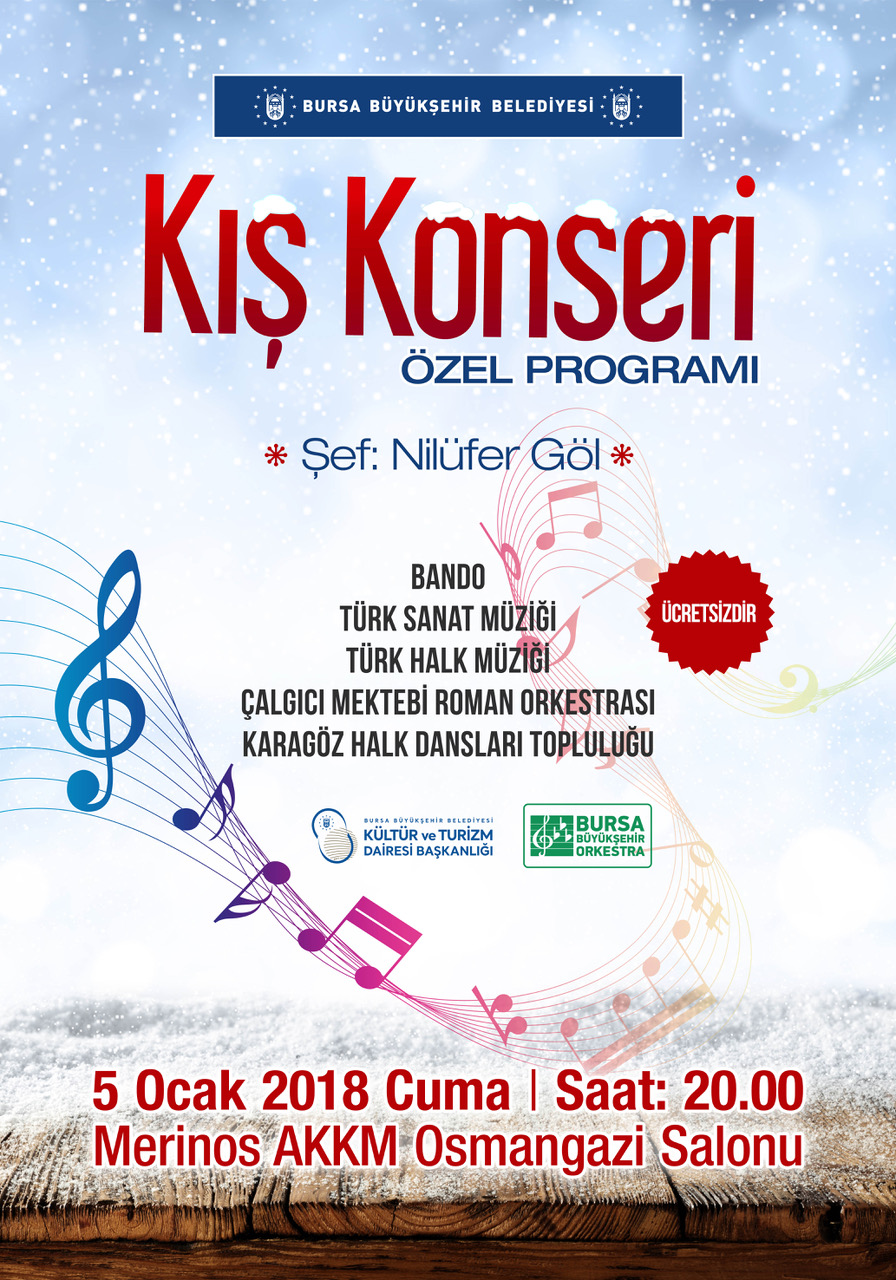 ‘Kış Konseri Özel Programı’, 5 Ocak Cuma günü saat 20.00’da Merinos AKKM Osmangazi Salonu’nda gerçekleştirilecektir.