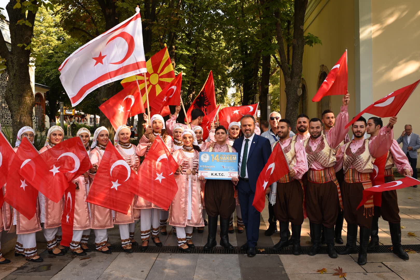 Başkan Aktaş’ın konuşmasının ardından şiirler okundu, Bursa Büyükşehir Belediyesi Karagöz Halk Dansları Topluluğu, Bursa yöresine özgü gösterilerini sergiledi. Bursa Mehter Takımı ve Kılıç Kalkan ekibinin gösterileri de özel anlara imza attı. Bursa’nın kardeş şehirleri Bosna Hersek (Saray Bosna), Moldova (Çadır Lunga), KKTC (Lefkoşa), Belarus (Mogilev) ve Filisin (El Halil) ile Muş, Niğde, Tokat Niksar, Tokat Turhal ve Kars Arpaçay’dan gelen konuklar da kurtuluş coşkusuna ortak oldu. KKTC ekibi de gösterisiyle törene renk kattı.