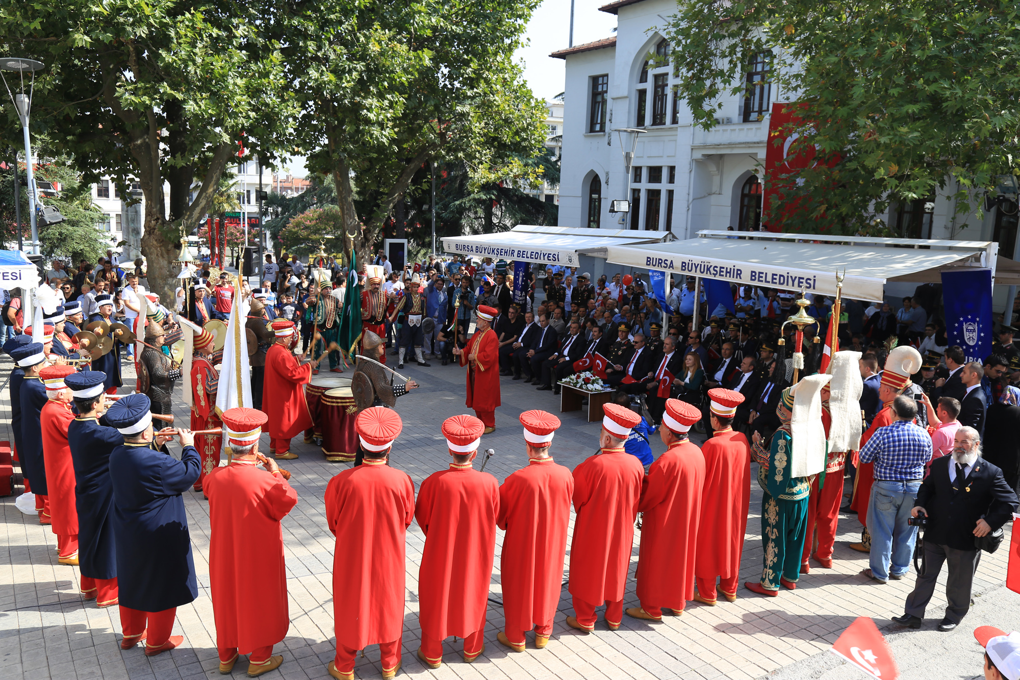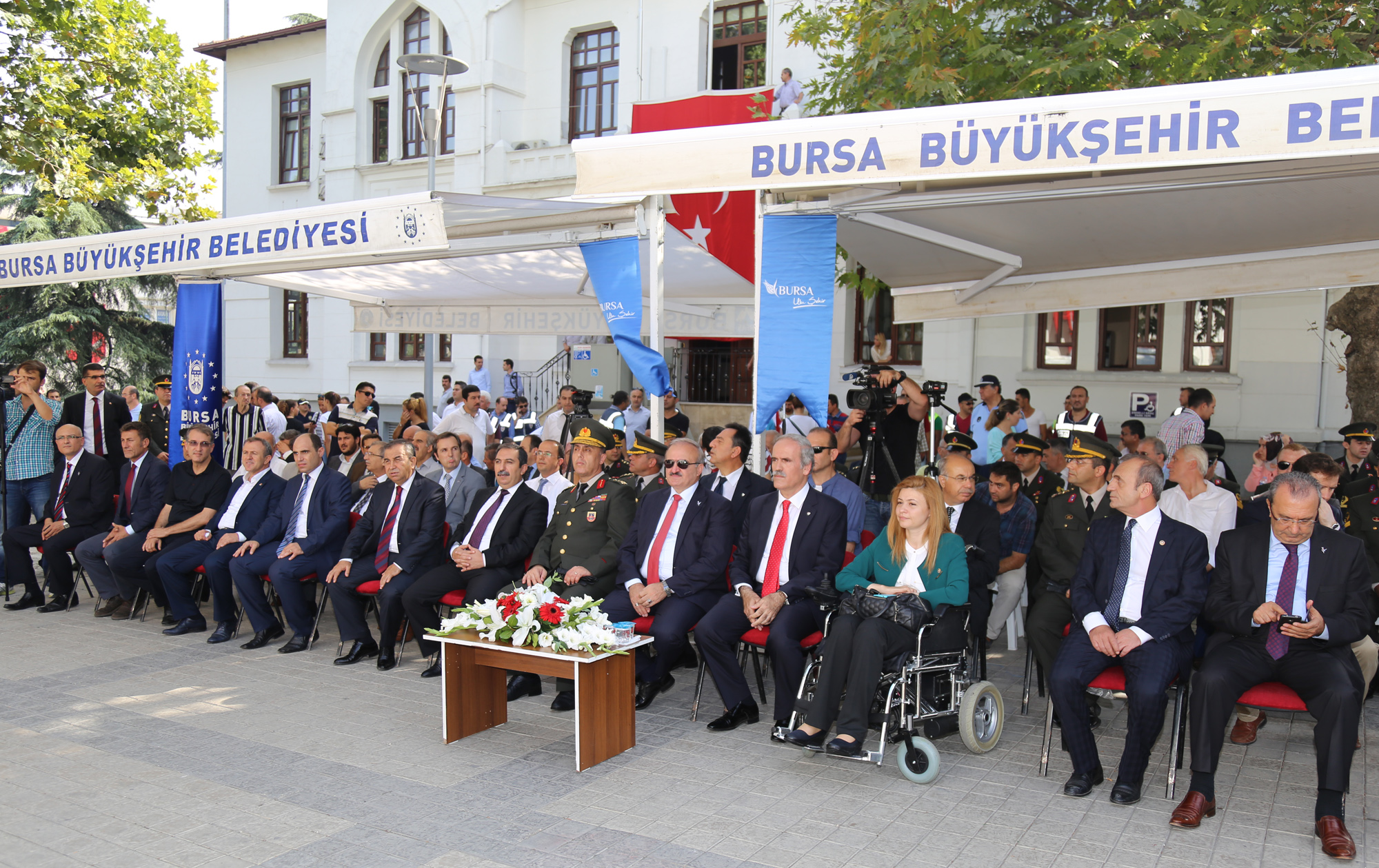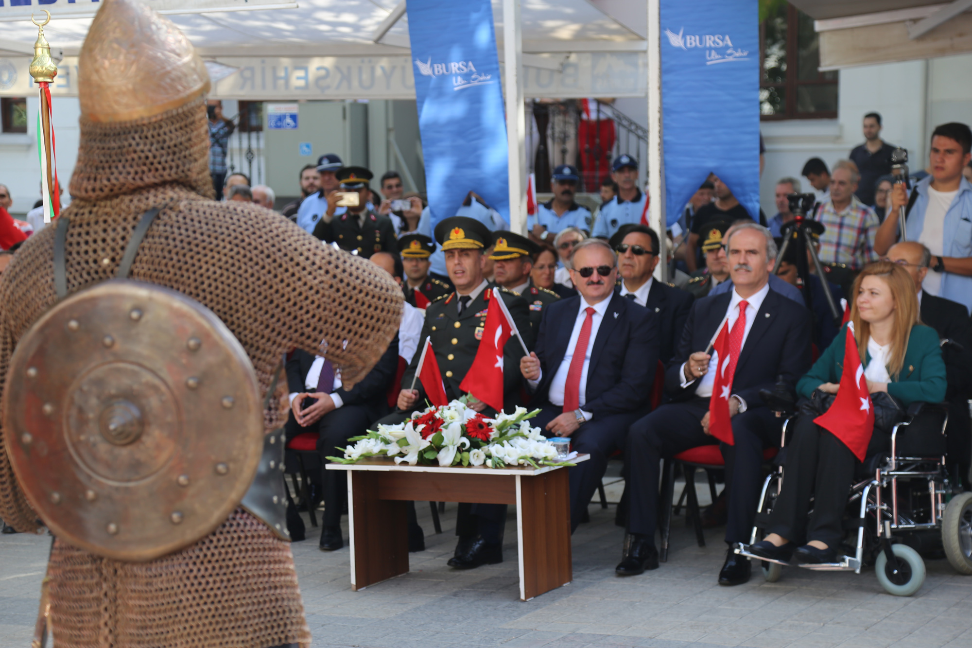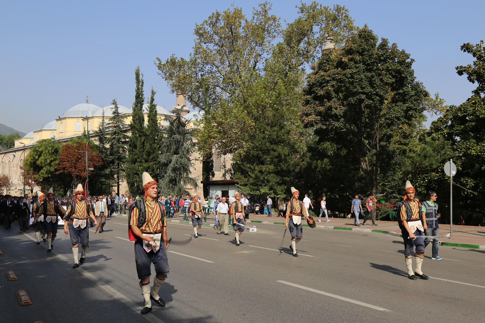 Türkiye’de bölücü terör örgütüyle mücadelede verilen şehitler nedeniyle sade tutulan ve Bursa Valiliği ile Büyükşehir Belediyesi tarafından organize edilen tören, Tophane Saltanat Kapı’dan başlayan ve Atatürk Caddesi boyunca devam eden, Bursa Kent Müzesi önünde son bulan kortej yürüyüşüyle başladı. Bursa Valisi Münir Karaloğlu, Büyükşehir Belediye Başkanı Recep Altepe, AK Parti Milletvekili Bennur Karaburun ve Bursa Bölge Garnizon Komutanı Tümgeneral Seyfullah Saldık’ın da katıldığı kortej yürüyüşünde, Bursa Mehter Takımı ile Büyükşehir Belediye Bandosu çaldığı marşlarla vatandaşları gururlandırdı. Türkiye Muharip Gaziler Derneği Bursa Şubesi üyeleri, üniformalarıyla törene renk kattı. Bursa Kent Müzesi önündeki törende, Özel Ahmet Kırmızı Temel Lisesi öğrencisi Eren Işık, ‘Bursa’nın külleri’ isimli şiirini seslendirdi.