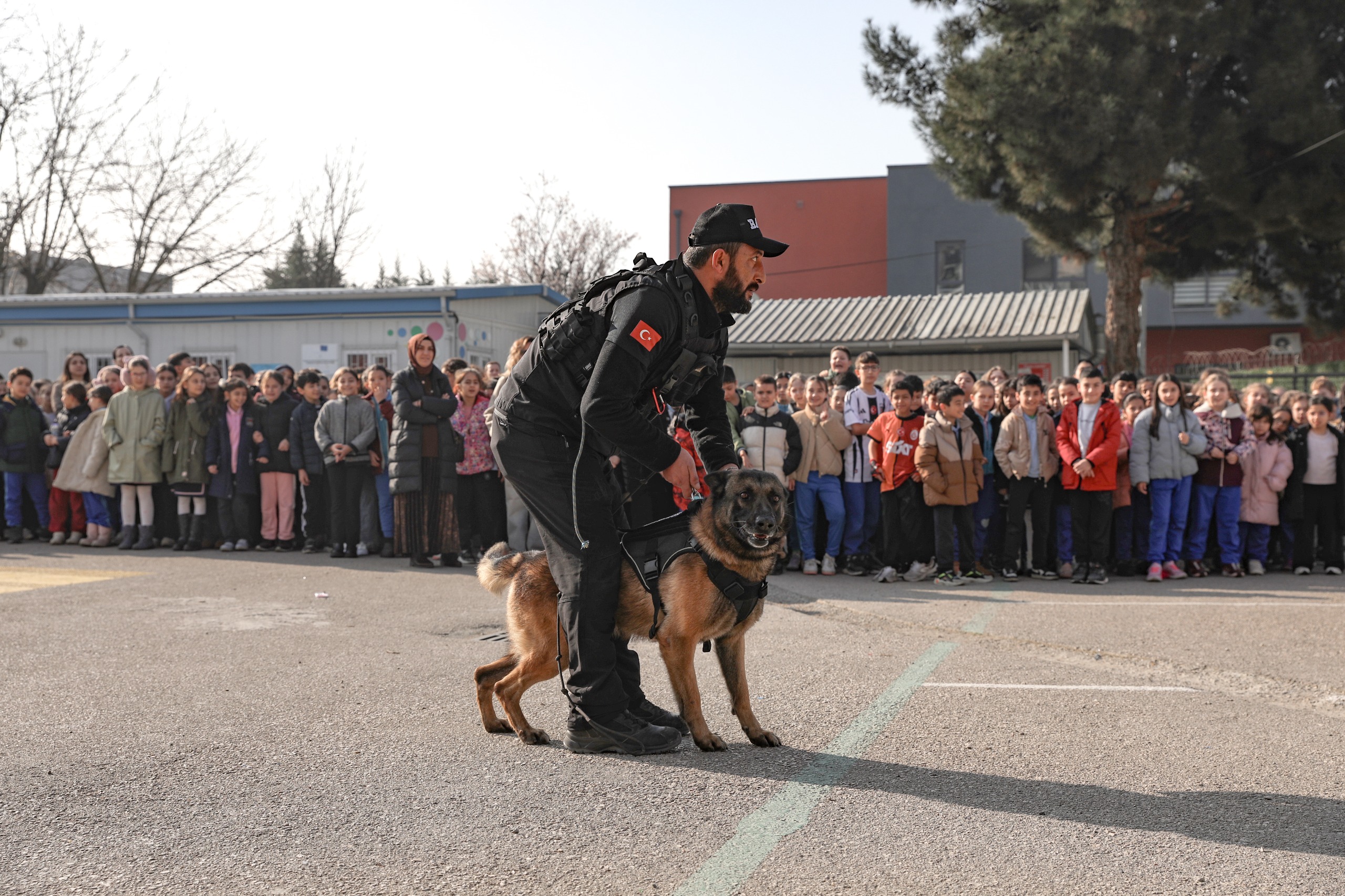 Okul genelinde gerçekleştirilen deprem tatbikatında öğrenciler ve personel, siren uyarısıyla çök-kapan-tutun hareketini uyguladı. Ardından okul binasını kontrollü şekilde tahliye edildi. Arama kurtarma köpeği Tipo’nun yaptığı gösteri, çocuklar tarafından ilgiyle takip edildi. Daha sonra Bursa Büyükşehir Belediyesi’nin Mobil Afet Koordinasyon Aracı’na geçen öğrenciler, çalışmalar hakkında bilgilendirildi.