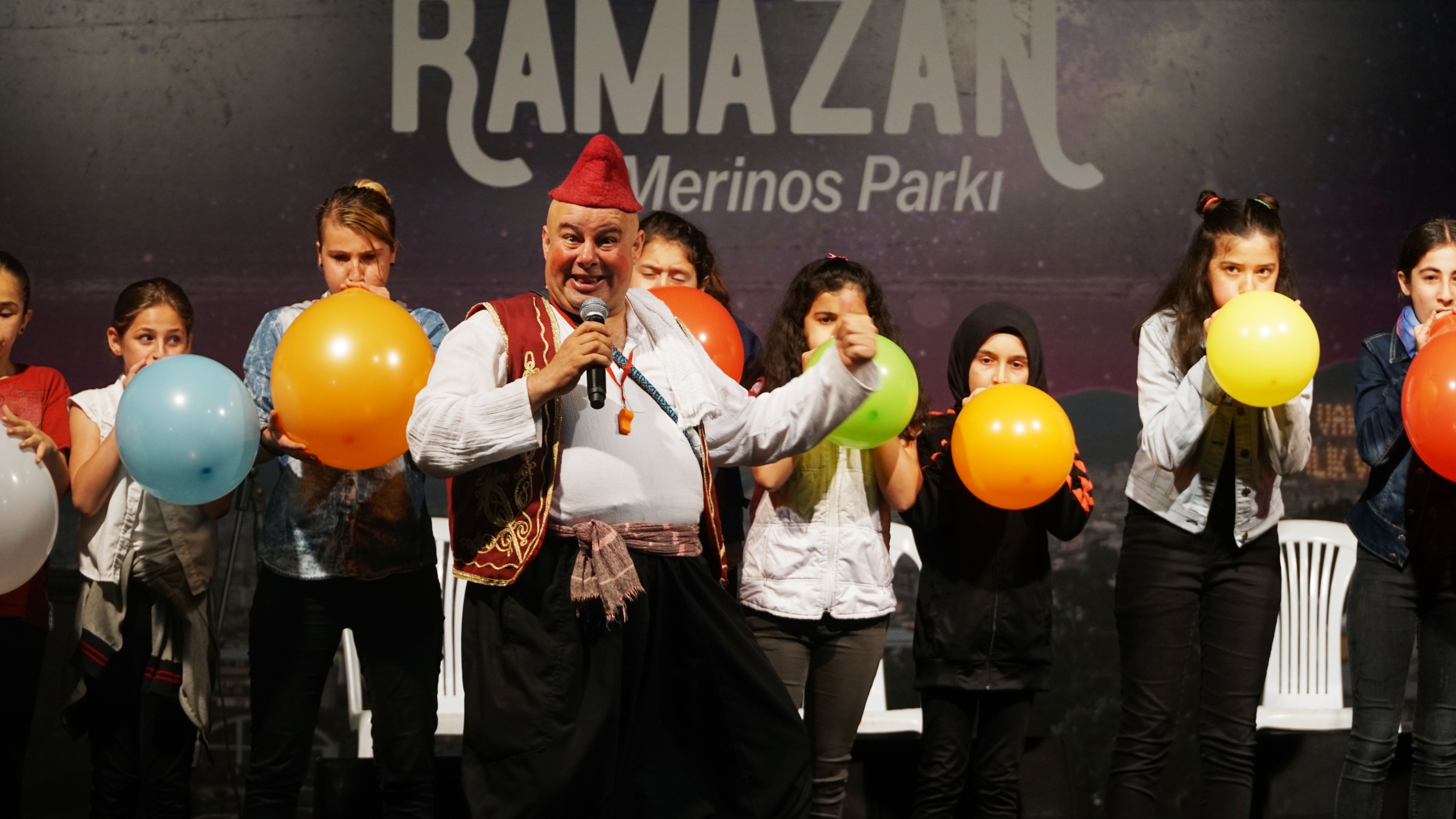 BURSA- Büyükşehir Belediyesi’nin “Şehr-i Ramazan” etkinlikleri, 11 ayın sultanı Ramazan akşamlarına ayrı bir renk katıyor. Kültür Sanat Daire Başkanlığı koordinesinde ve Bursa Kültür A.Ş. tarafından düzenlenen etkinlikler, Ramazan ayının manevi atmosferini doyasıya yaşamak isteyenleri Merinos Park’ında buluşturuyor. Rahmet ayının ikinci hafta sonu Merinos Park’a kurulan dev çadırda yine birbirinden renkli programlar vardı. Teravih namazı öncesi Hüseyin Goncagül ve ekibi Tulûat Tiyatrosu ile miniklerin neşesi olurken, ikilinin renkli doğaçlamaları büyükleri de güldürdü. Park alanına kurulan oyun parkurları ve lunaparkta ise çocuklar gönüllerince eğlendi.