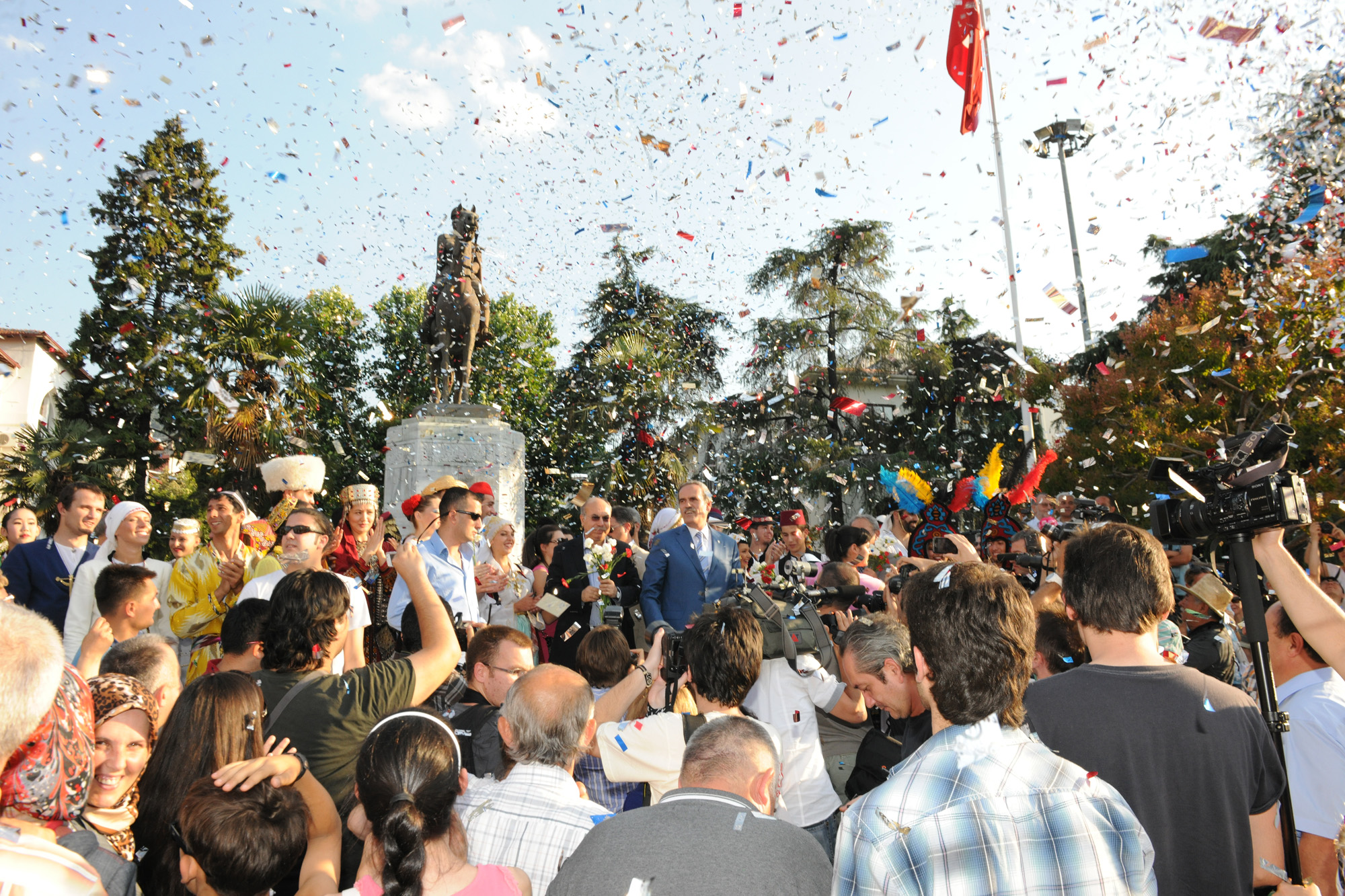 Büyükşehir Belediyesi tarafından Bursa Kültür Sanat ve Turizm Vakfı (BKSTV) koordinatörlüğünde, ‘51. Uluslararası Bursa Festivali’ kapsamında gerçekleştirilen ‘26. Uluslararası Altın Karagöz Halk Dansları Yarışması’, Heykel’den Kültürpark’a uzanan renkli bir kortej yürüyüşüyle başladı. 20 farklı ülkeden Bursa’ya gelen halk dansları ekipleri, Heykel Atatürk Anıtı önündeki törende, güvercin uçurarak Bursa’dan tüm dünyaya barış, birlik ve beraberlik mesajları gönderdi. Törende, Bursa Mehter Takımı ile Büyükşehir Belediyesi Bandosu konser verirken, kılıç kalkan ekibinin gösterileri de ilgiyle izlendi.