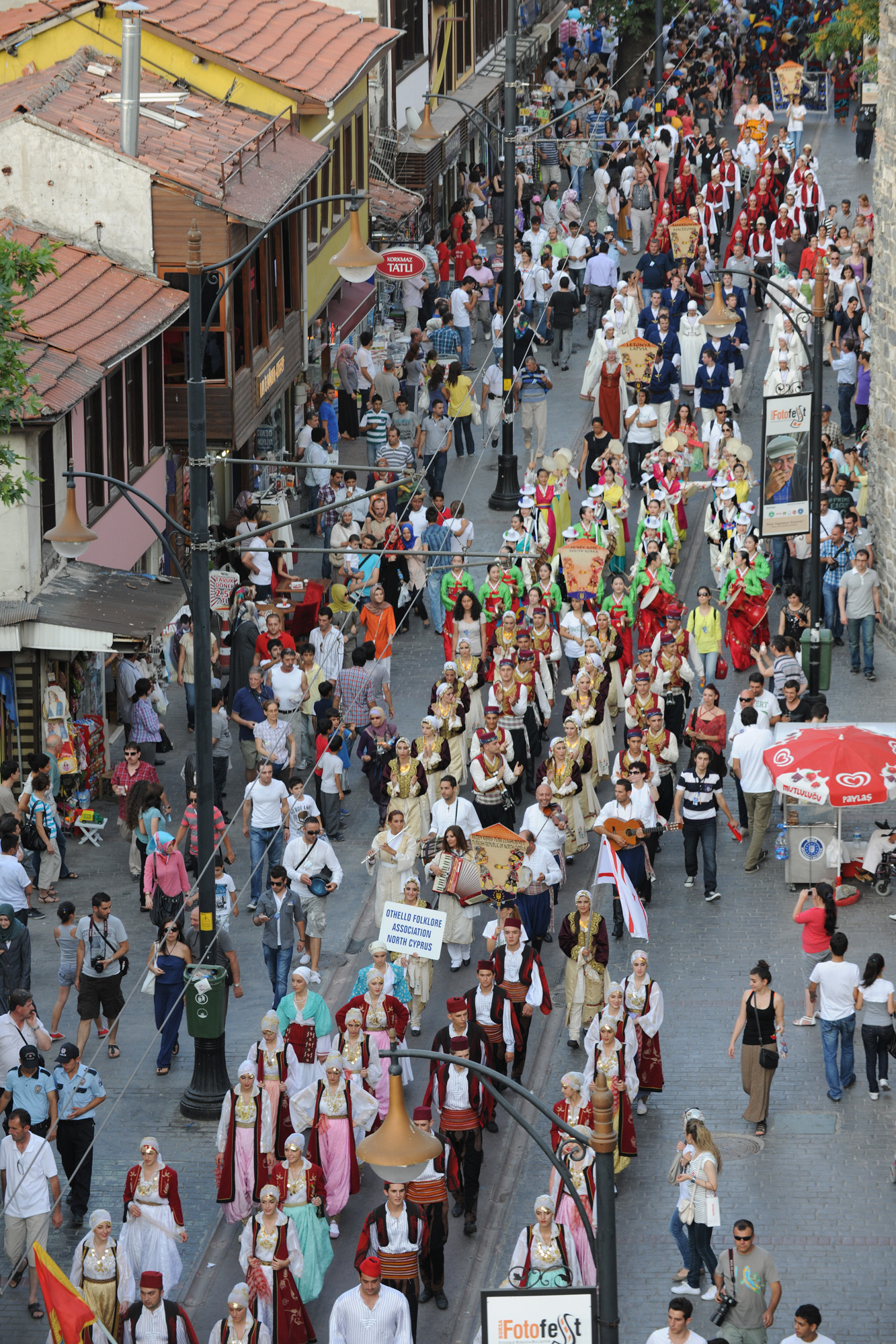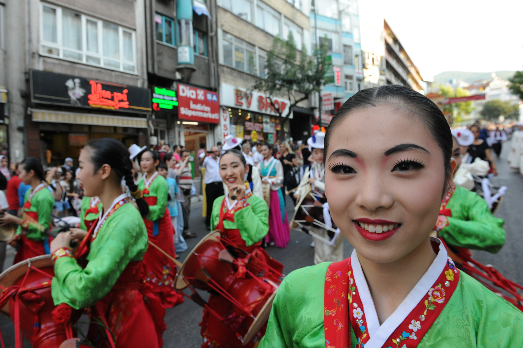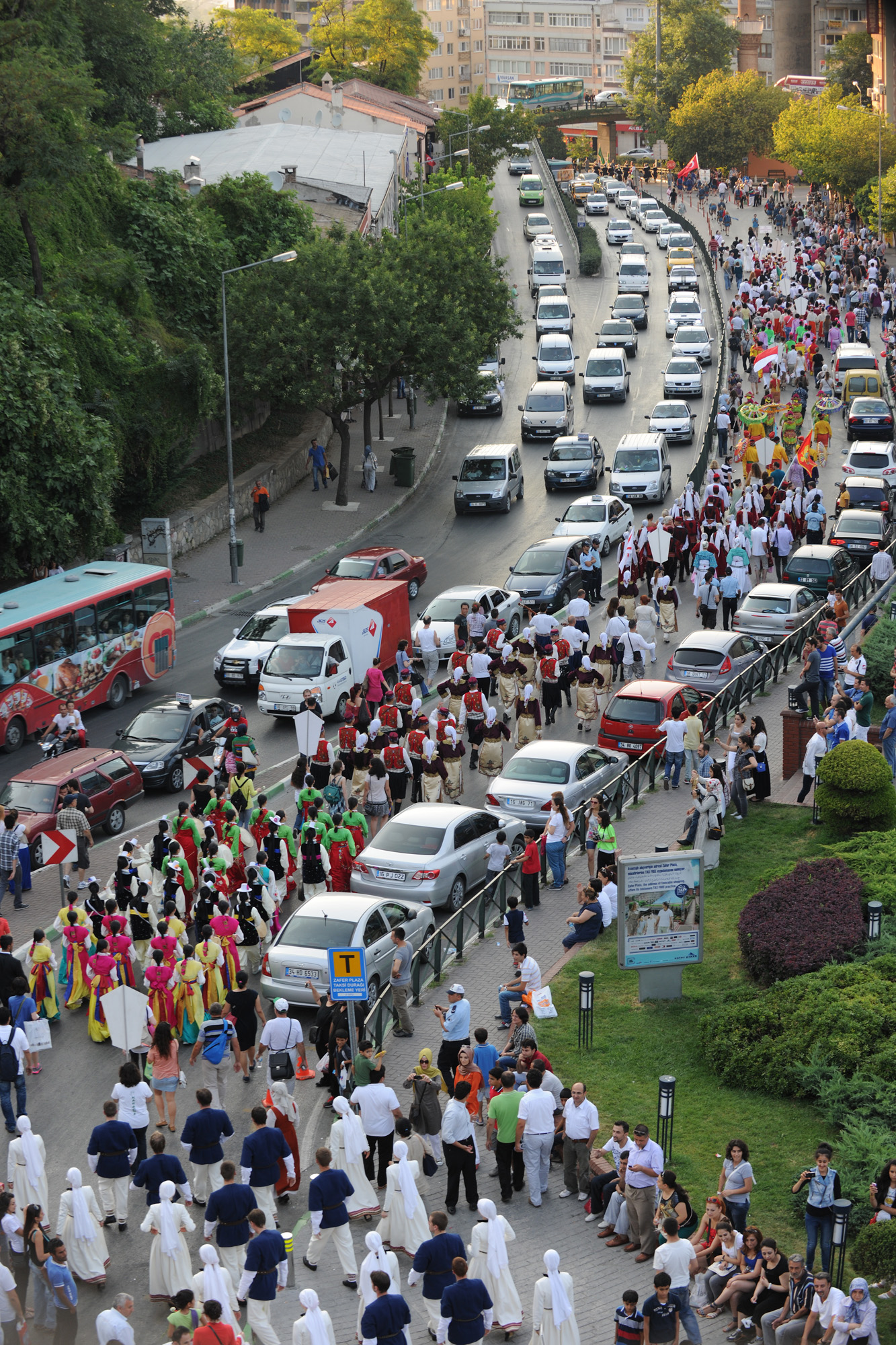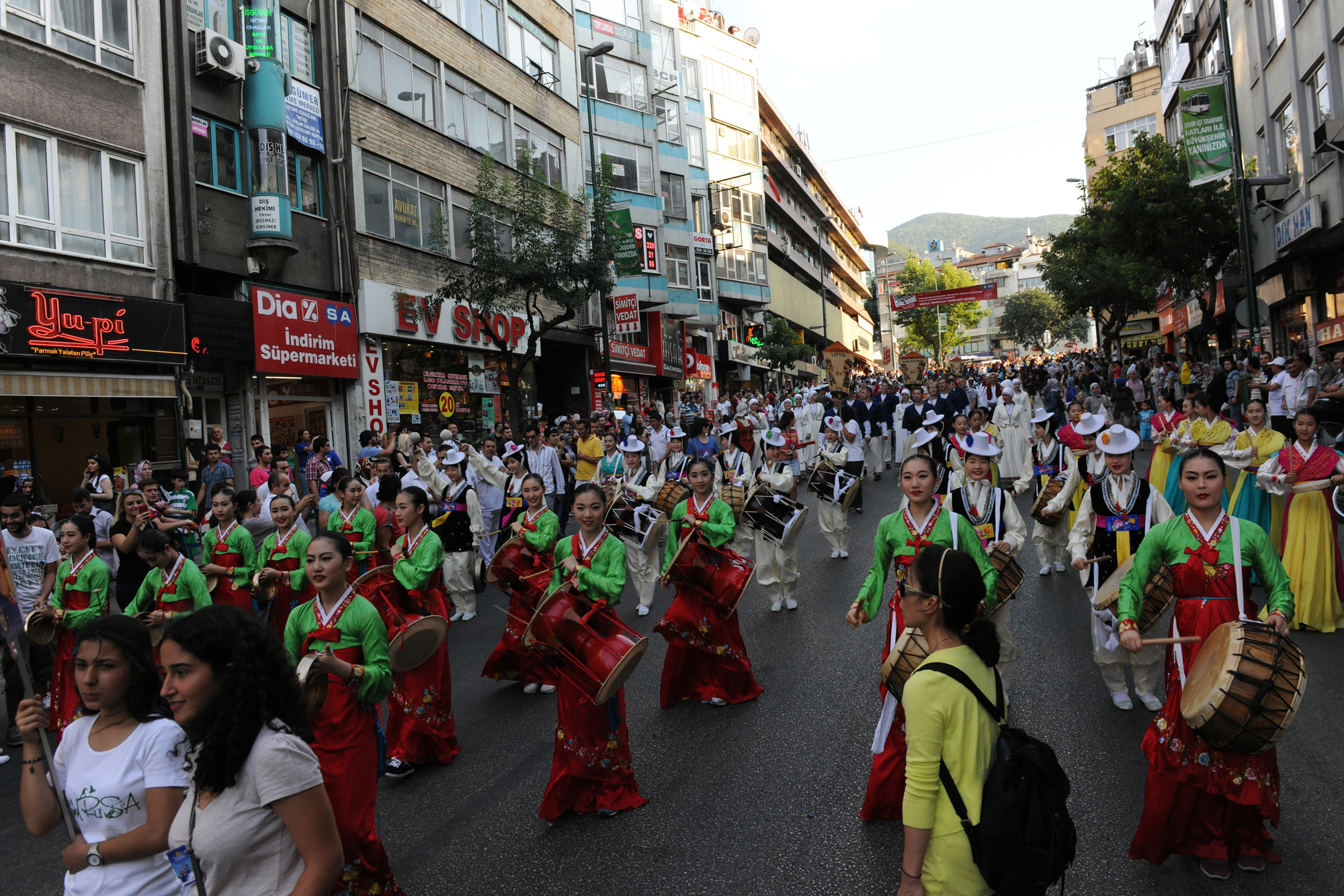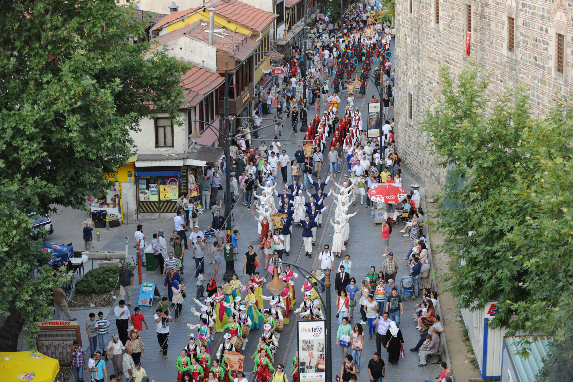 BURSA – Bursa Büyükşehir Belediyesi tarafından bu yıl 26. kez gerçekleştirilen ‘Uluslararası Altın Karagöz Halk Dansları Yarışması’na 20 ülkeden katılan yaklaşık 600 dansçı ve müzisyen, festival yürüyüşünde, rengarenk kostümleriyle görsel bir şölene imzasını attı.