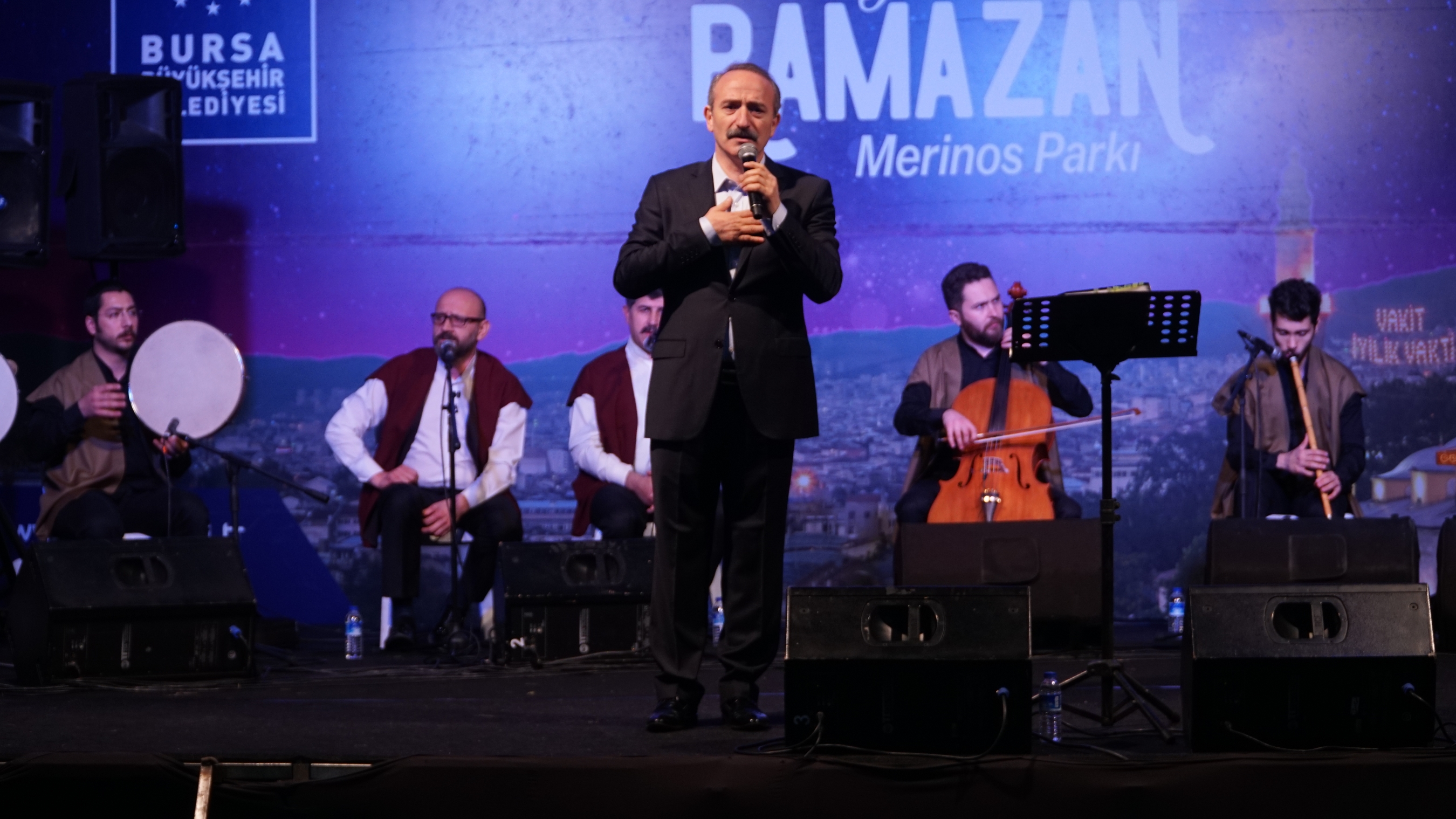 Kültür Sanat Daire Başkanlığı koordinesinde ve Bursa Kültür A.Ş. tarafından düzenlenen etkinlikler, tüm hızıyla sürerken Merinos Park’ında gerçekleştirilen Ramazan programları vatandaşlardan yoğun ilgi görüyor. Teravih namazı öncesi Hüseyin Goncagül ve ekibi Tulûat Tiyatrosu ile miniklerin neşesi olurken, teravih namazı sonrası ise birbirinden ünlü sanatçılar Bursalılar ile buluşuyor. Ramazan-ı Şerif’in 21. gününün akşamı Bursa Büyükşehir Belediyesi Orkestra Şube Müdürlüğü Tasavvuf Müziği Topluluğu, park alanına kurulan dev çadırda sahne aldı. Tasavvuf Müziği’nin güçlü sesi İsmail Coşar ise seslendirdiği ilahi ve kasideler ile Ramazan ayının manevi atmosferine ayrı bir anlam kattı