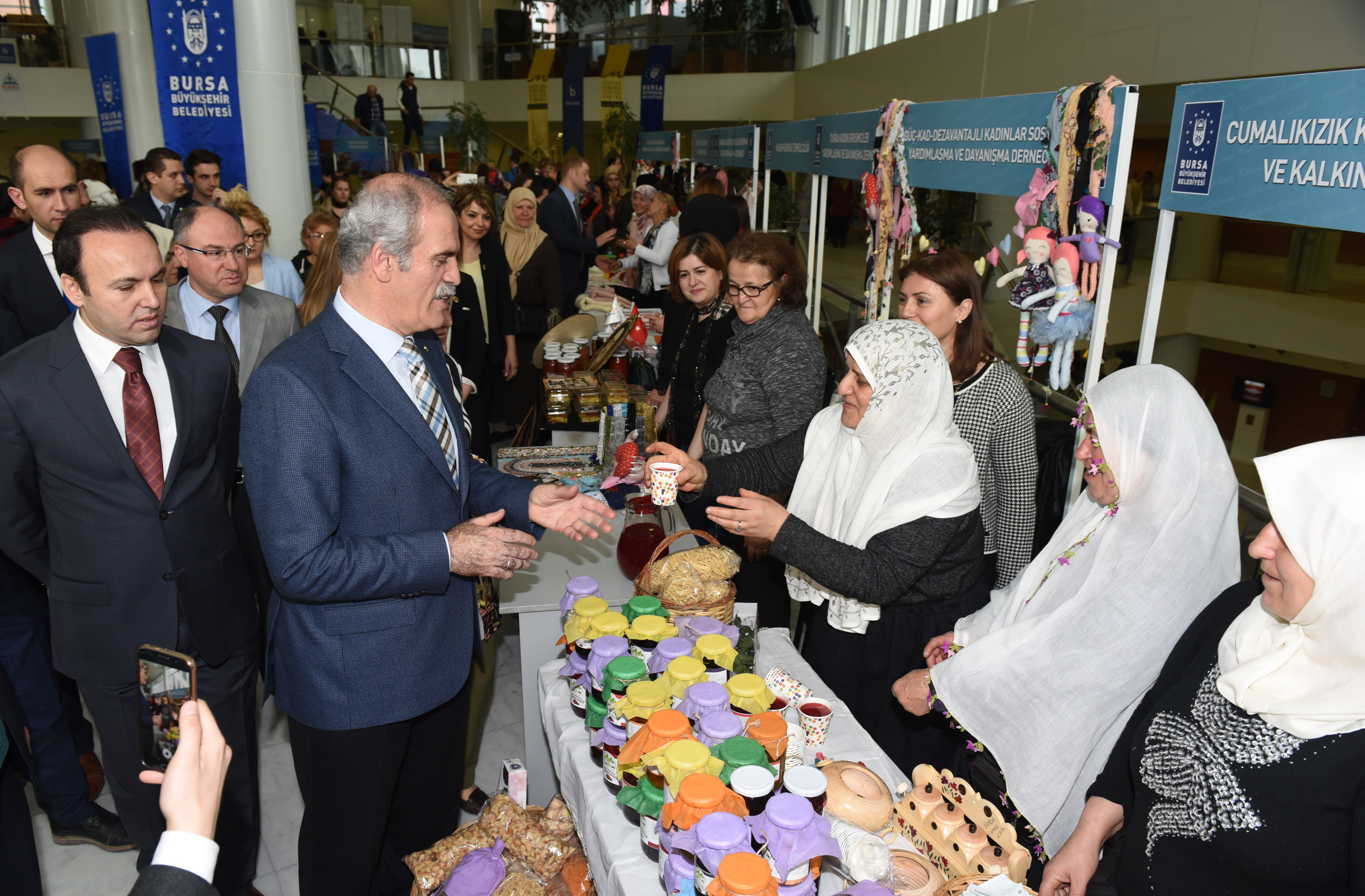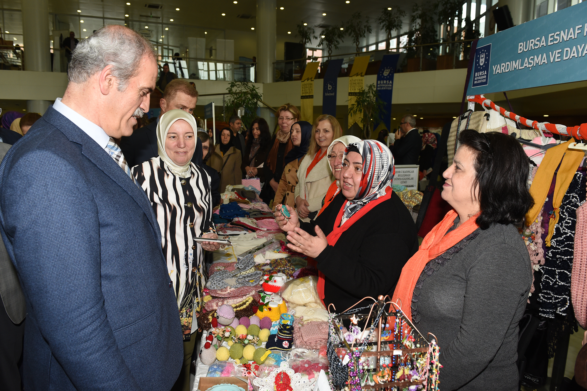 Bursa ve Türkiye’nin gelişimine kadınların katkısının büyük olduğunu vurgulayan Başkan Altepe ile Milletvekili Gözgeç, konuşmaların ardından, Merinos AKKM’de açılan kadın derneklerinin stantlarını gezdi, el emeği ürünleri ilgiyle inceledi.
