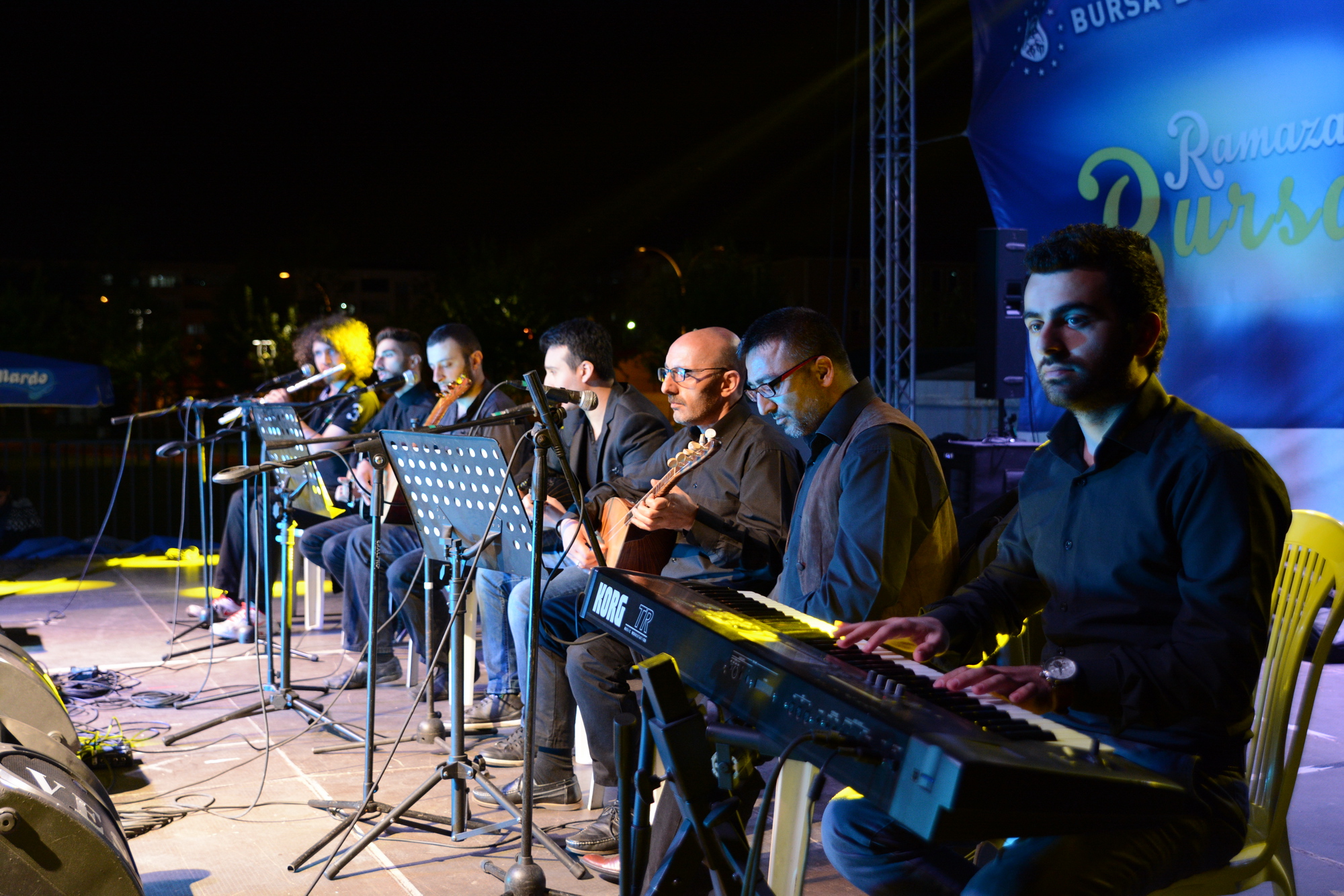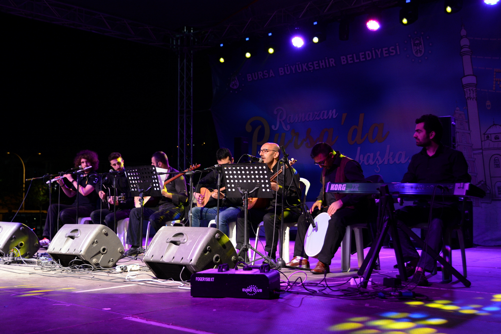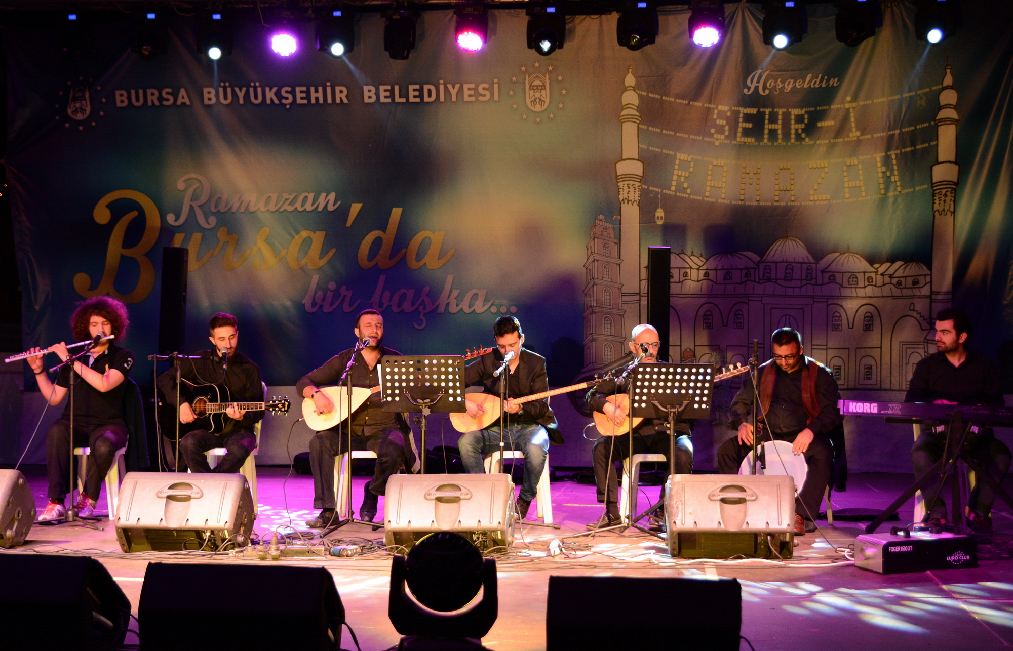 Bursa Büyükşehir Belediyesi iştiraklerinden Kültür AŞ tarafından düzenlenen ‘Şehri Ramazan’ etkinlikleri tüm hızıyla devam ediyor. Hüdavendigar Kent Parkı’ndaki program kapsamında Yusuf Yüzlüler Grubu sahneye çıktı. Bursalı sanatçılar tarafından dört yıl önce kurulan grup, bir saat süren konserde en sevilen türkü ve ezgileri başarıyla yorumladı. Konserde Hüdavendigar Kent Parkı’nda başlayan yağmura rağmen konseri izleyen vatandaşlar güzel bir Ramazan akşamı yaşadılar.