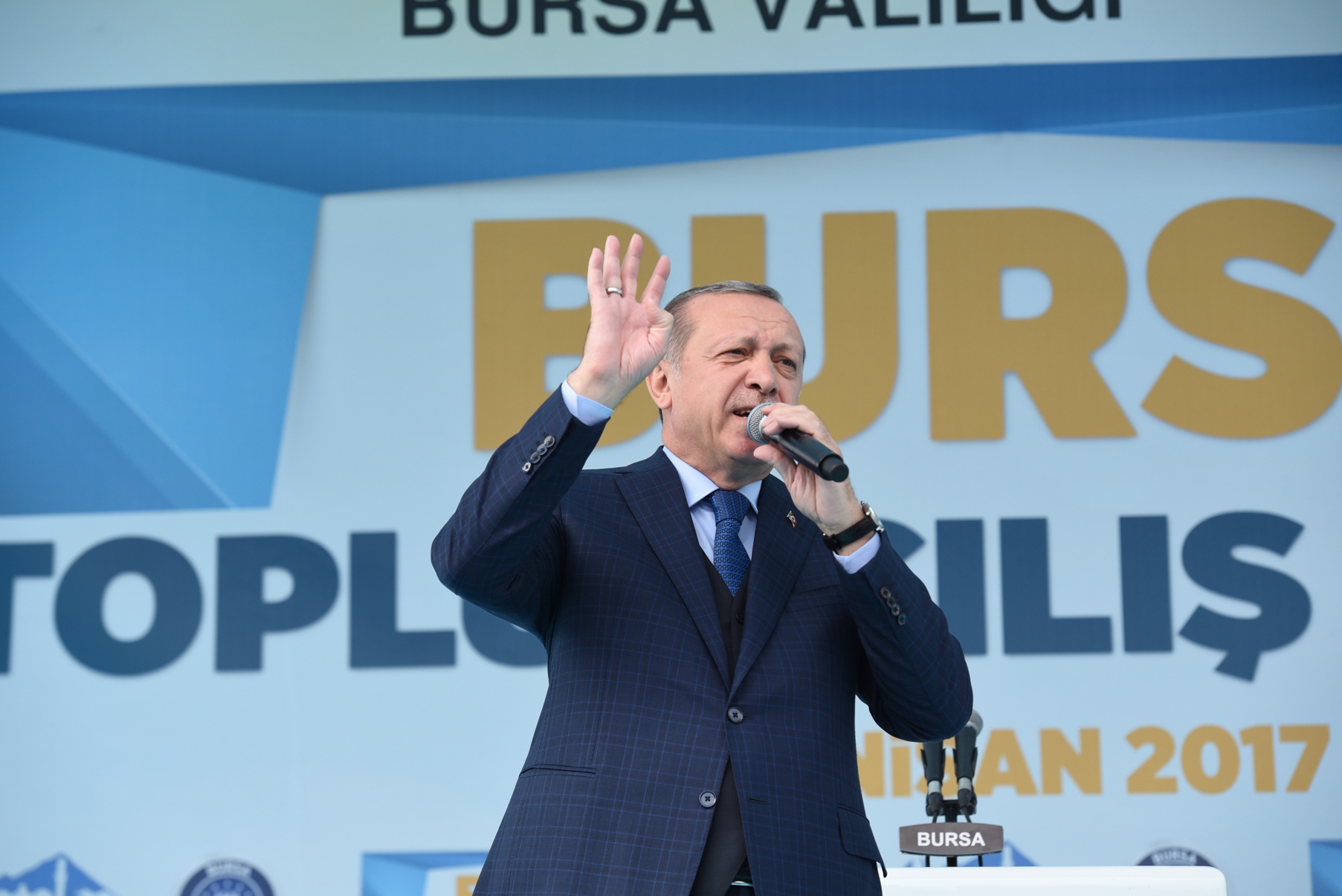 - CUMHURBAŞKANI RECEP TAYYİP ERDOĞAN, TÜRKİYE BÜYÜDÜKÇE BURSA’NIN DA BÜYÜYECEĞİNİ VE 16 NİSAN’DA TÜRKİYE’NİN DE BURSA’NIN DA ÖNÜNÜNÜN AÇILACAĞINI SÖYLEDİ.