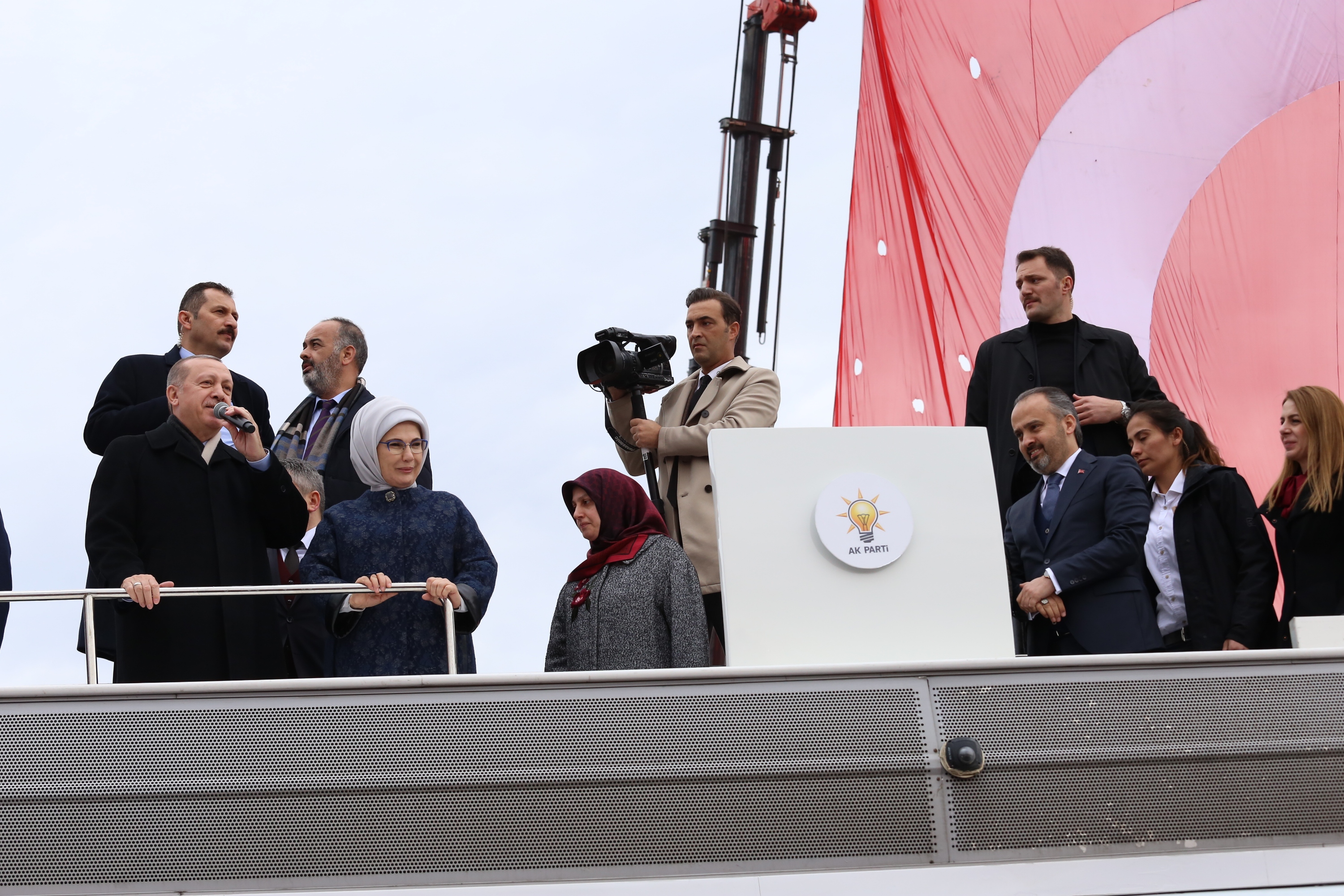 Cumhurbaşkanı ve AK Parti Genel Başkanı Recep Tayyip Erdoğan, kentte gördüğü yoğun katılımdan dolayı mutlu olduğunu belirterek, “Bursa yine muhteşem, hep birlikte. Türkiye olduk. İşte buyurun Bursa, işte buyurun Türkiye…” dedi.