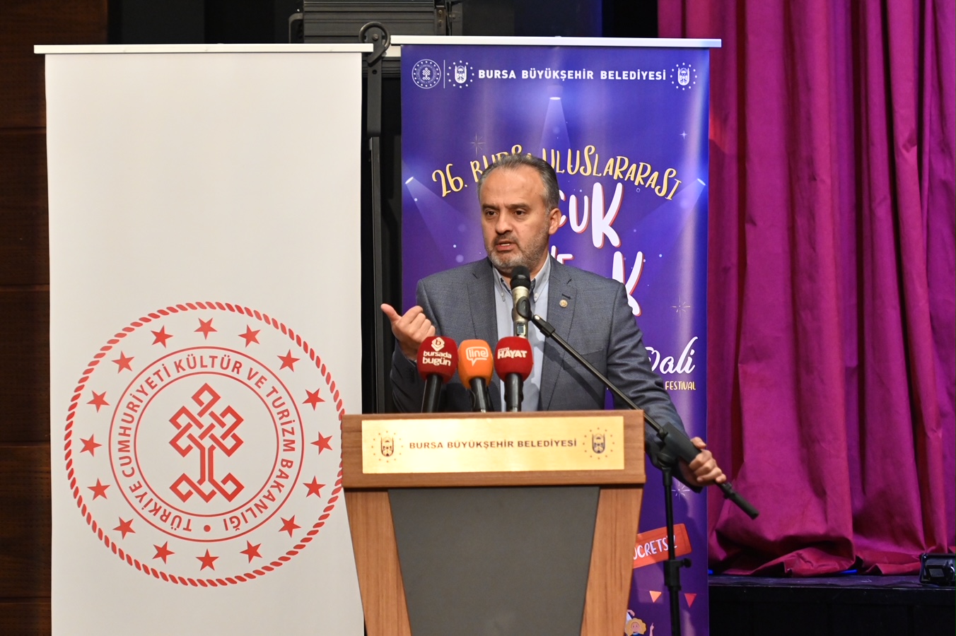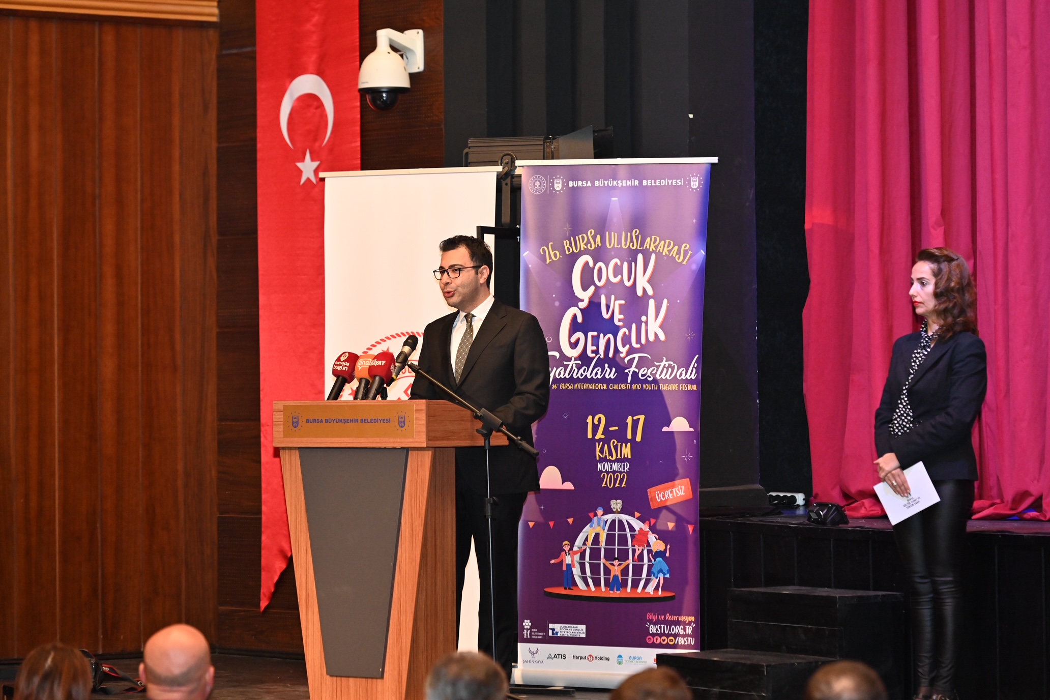Bursa’nın kültür sanat anlamında uluslararası marka etkinliklerinden olan ve bu sene 26’ncısı düzenlenen Uluslararası Çocuk ve Gençlik Tiyatroları Festivali, Tayyare Kültür Merkezi’ndeki açılış töreni ile başladı. Bursa Kültür Sanat ve Turizm Vakfı’nın (BKTSV) Büyükşehir Belediyesi öncülüğünde Kültür ve Turizm Bakanlığı’nın katkılarıyla ve Harput Holding, Royal Termal Otel, Özhan Market, Bursa Ticaret Borsası, Atış Şirketler Grubu ve Şahinkaya Okulları’nın sponsorluğunda yapılan festivalin açılış törenine, Bursa Büyükşehir Belediye Başkanı Alinur Aktaş, BKTSV Başkanı Sadi Etkeser, Uluslararası Çocuk ve Gençlik Tiyatroları Birliği (ASSITEJ) Türkiye Yönetim Kurulu Başkan Yardımcısı Özgün Çakar Özdemir ile tiyatro sever çocuklar ve aileleri katıldı.