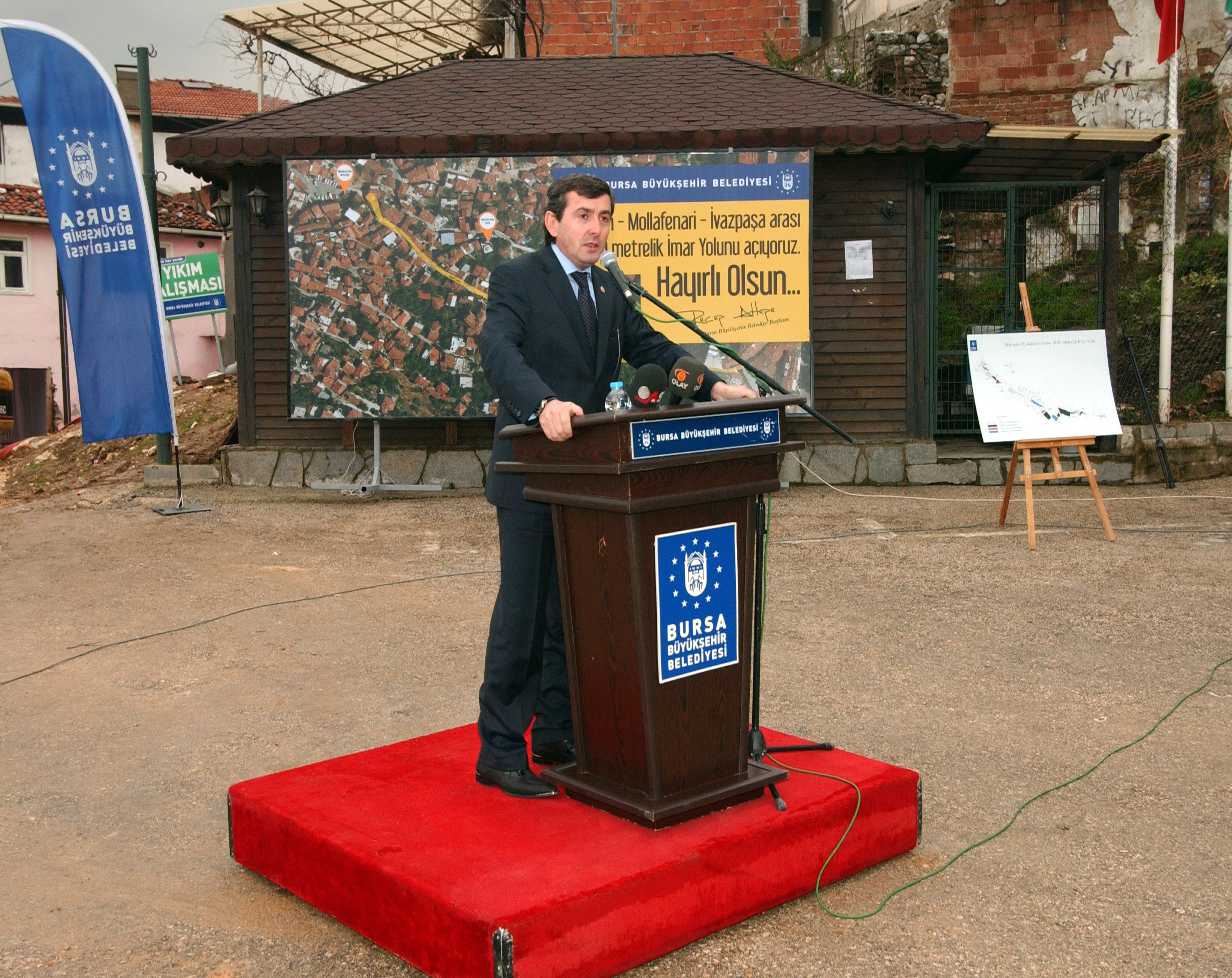 Molla Fenari Mahallesi Muhtarı Şaban Çiçek de, yaptıkları hizmetlerden dolayı Büyükşehir Belediye Başkanı Recep Altepe ile Osmangazi Belediye Başkanı Mustafa Dündar´a teşekkür etti. Konuşmaların ardından yol güzergahında bulunan ilk binanın yıkımı yapıldı.