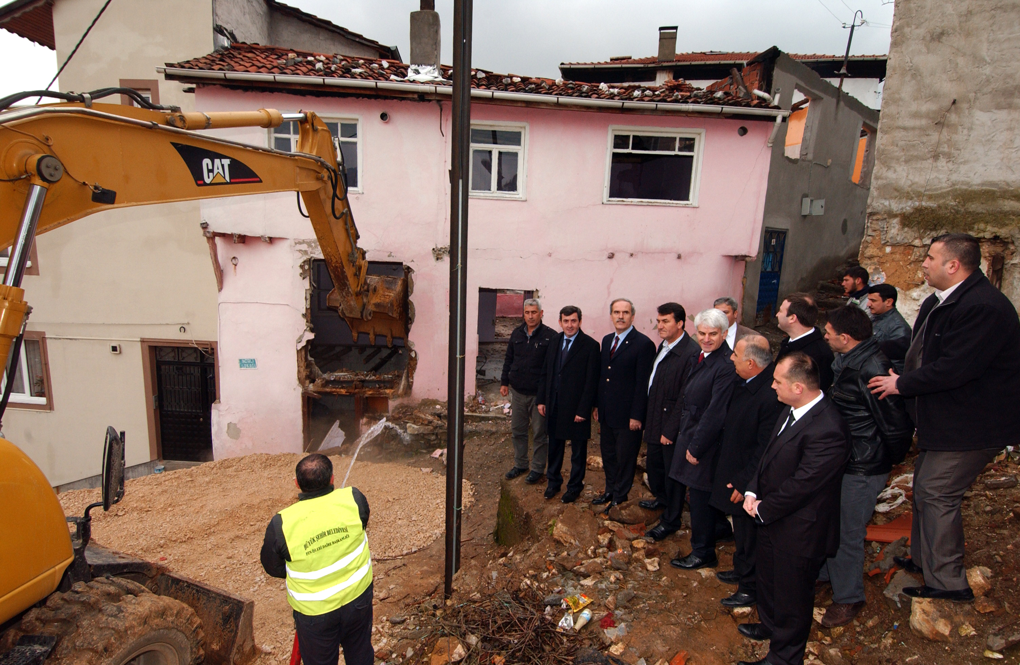 Bursa’ya kazandırılacak önemli yatırımların hemen hepsinde uzlaşmacı bir tutumla sonuca ulaşan Büyükşehir Belediyesi, Maksem-Mollafenari-İvazpaşa arasında açılacak 10 metrelik imar yolunda bulunan 36 mülk sahibinden 24´üyle anlaşma sağladı. Varılan anlaşma gereği evler bir bir boşaltılırken, Büyükşehir Belediyesi ekipleri de boşaltılan binalarda yıkım çalışmalarını başlattı. Molla Fenari Mahallesi´nde düzenlenen yıkım törenine katılan Başkan Altepe, AK Parti Bursa Milletvekilleri Hüseyin Şahin ve İsmail Aydın, Genel Sekreter Seyfettin Avşar, Genel Sekreter yardımcıları Bayram Vardar ve Mustafa Altın´la birlikte çalışmaları yerinde inceledi.