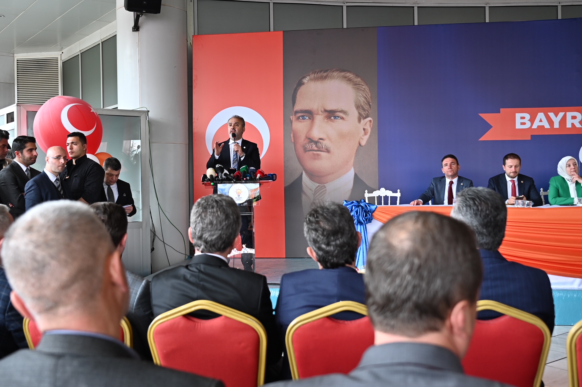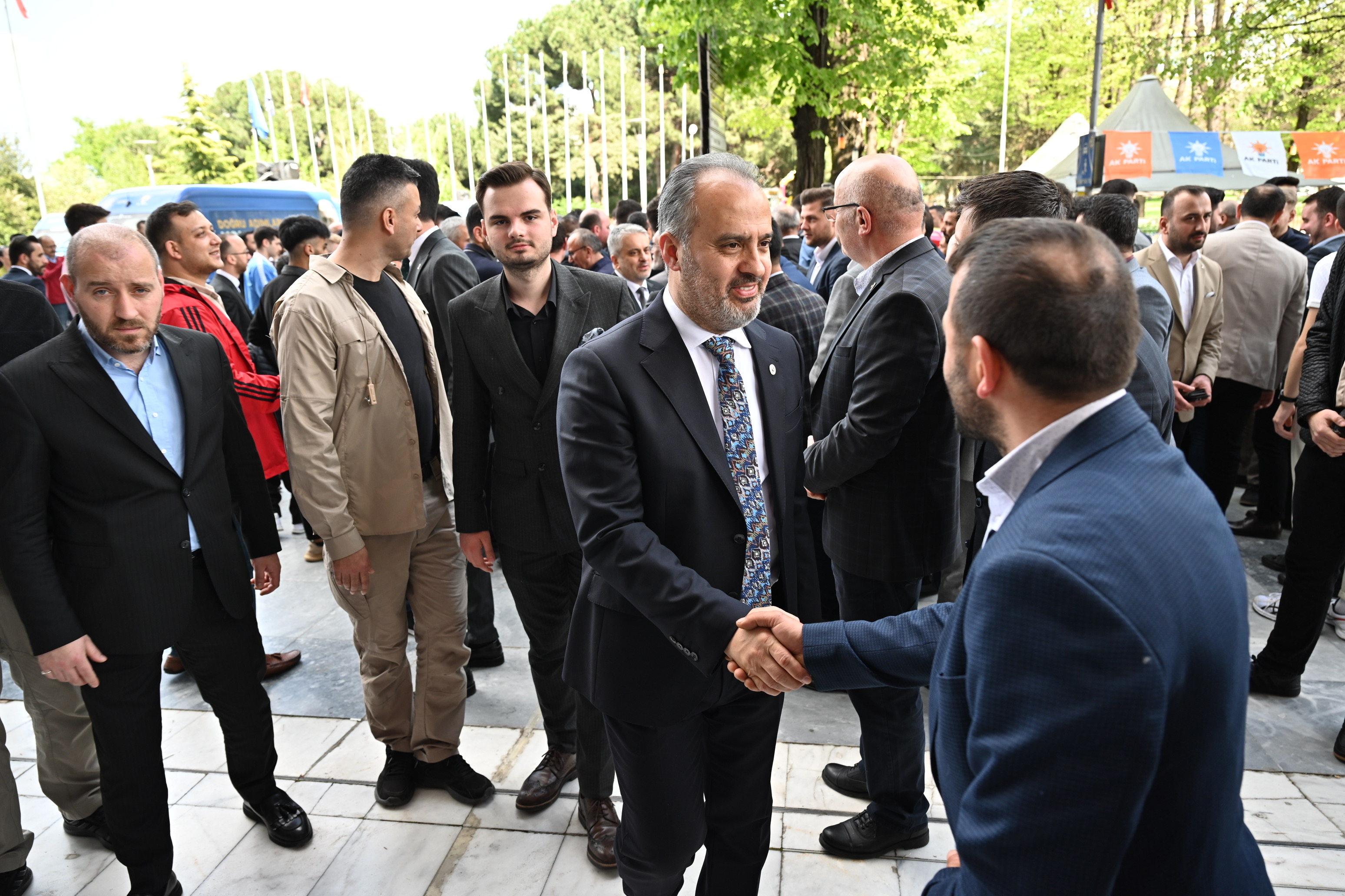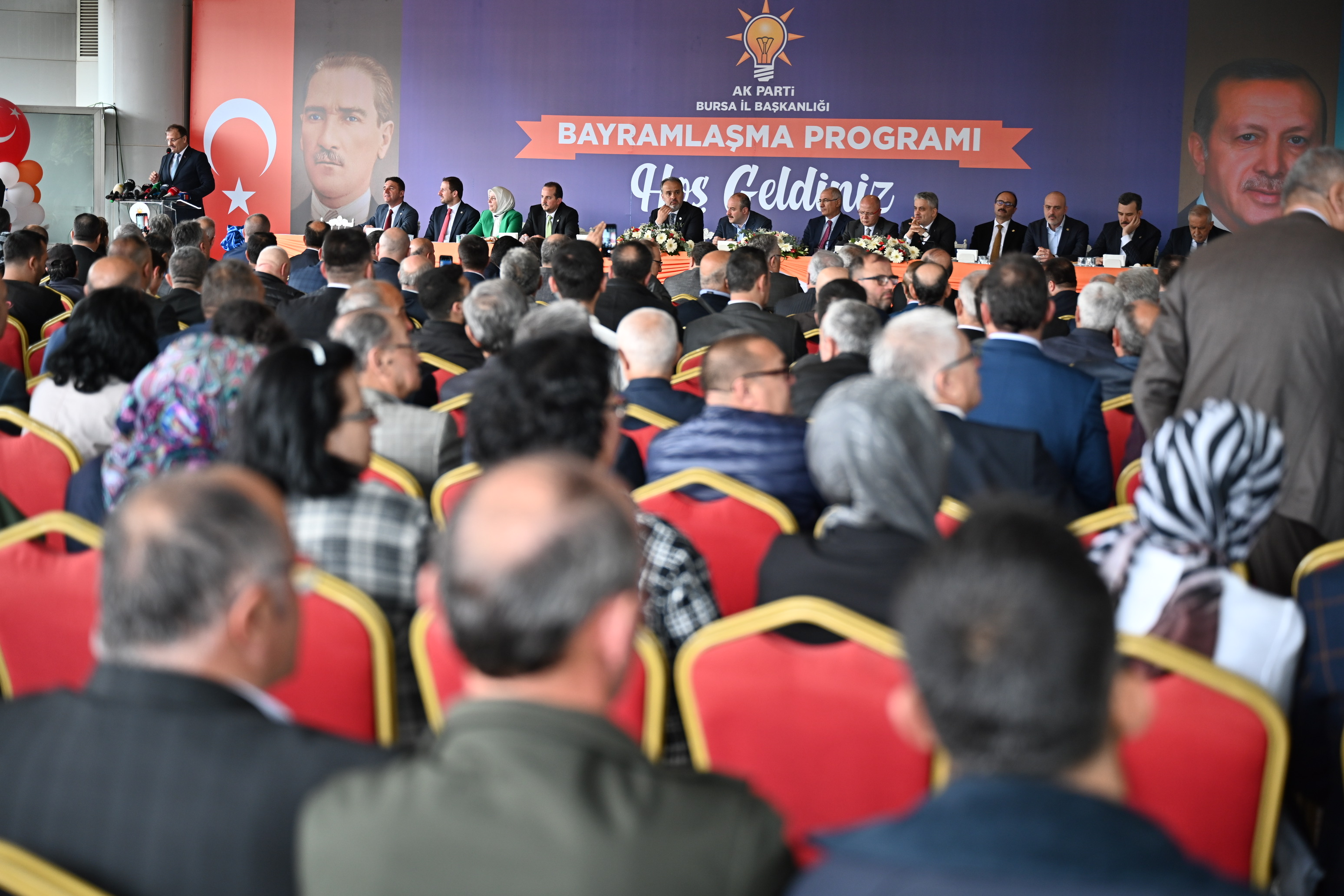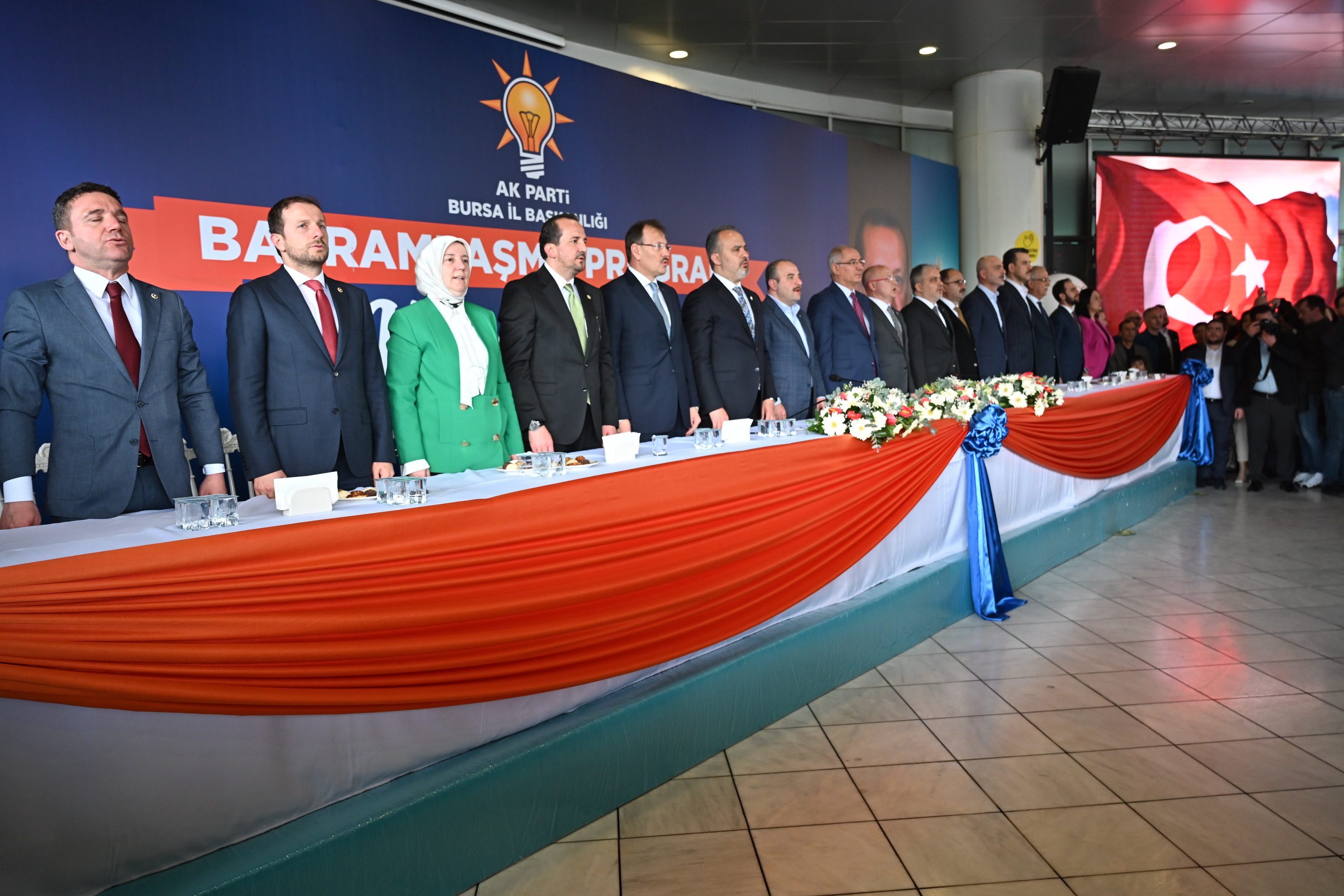 AK Parti İl Başkanı Davut Gürkan ve törende söz alan Bursa Milletvekili Hakan Çavuşoğlu, Sanayi ve Teknoloji Bakanı Mustafa Varank, AK Parti Genel Başkan Yardımcısı ve Bursa Milletvekili Efkan Ala ve Bursa Milletvekili adayı Ayhan Salman da konuşmalarında birlik ve beraberlik mesajları verdi. Konuşmaların ardından partililer sırayla protokolle bayramlaştı.