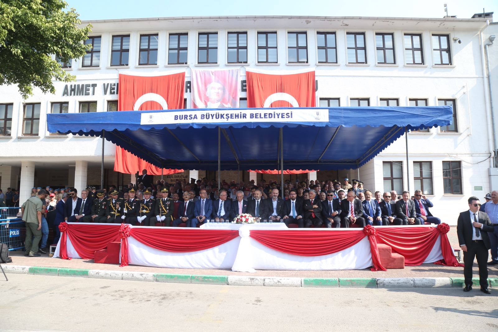 Bursa’daki etkinlikler, ilk olarak Heykel’deki Atatürk anıtı önünde başladı. Büyükşehir Belediye Başkanı Alinur Aktaş ve protokol üyeleri, Atatürk anıtına çelenk koyarak saygı duruşunda bulundu. Protokol üyeleri, daha sonra yine Heykel’de bulunan tarihi valilik binasına geçti. Burada ise Bursa Vali Vekili Abidin Ünsal ve Büyükşehir Belediye Başkanı Alinur Aktaş, tebrikleri kabul etti. Başkan Aktaş ve Vali Vekili Ünsal, ‘valilikteki kabulün ardından’ tören aracına binerek, asker-protokol ve vatandaşların bayramını kutladı. Etkinlikler, protokolün halkı selamlamasının ardından yine Heykel’deki Atatürk anıtı önünde kurulan platformda devam etti. Burada yapılan törende, TOFAŞ Fen Lisesi öğrencileri Muhammed Fahri Ünlü ile Seray Tenur, günün anlam ve önemini anlatan şiirler okudu. Osmangazi Belediyesi halk oyunları ekipleri, aynı program kapsamında sahne alarak gösteriler yaptı. Vatandaşların büyük ilgi gösterdiği 30 Ağustos Zafer Bayramı kutlamaları, Atatürk Caddesi’nde yapılan kortej geçişiyle son buldu.