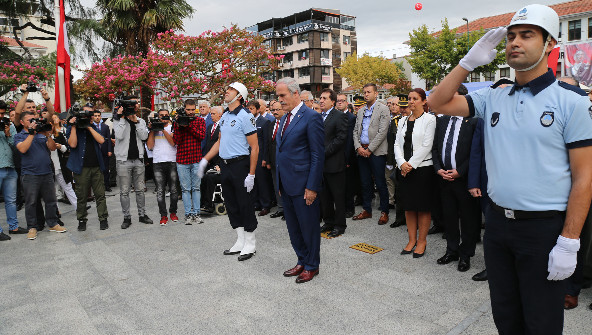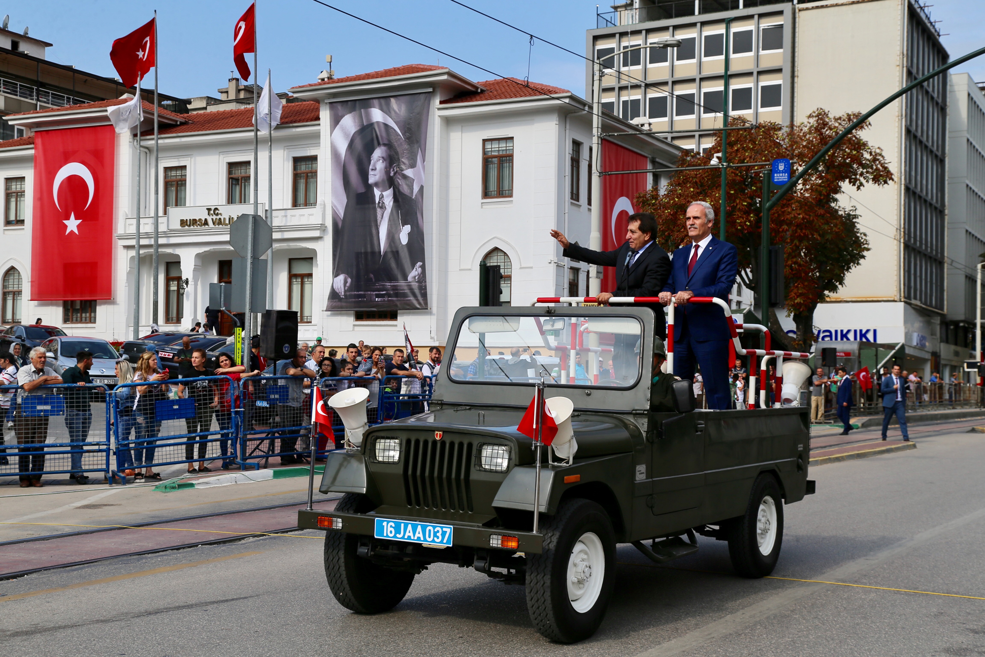 Vali İzzettin Küçük ve Büyükşehir Belediye Başkanı Recep Altepe, tören aracıyla asker, protokol ve vatandaşların bayramını kutladı.