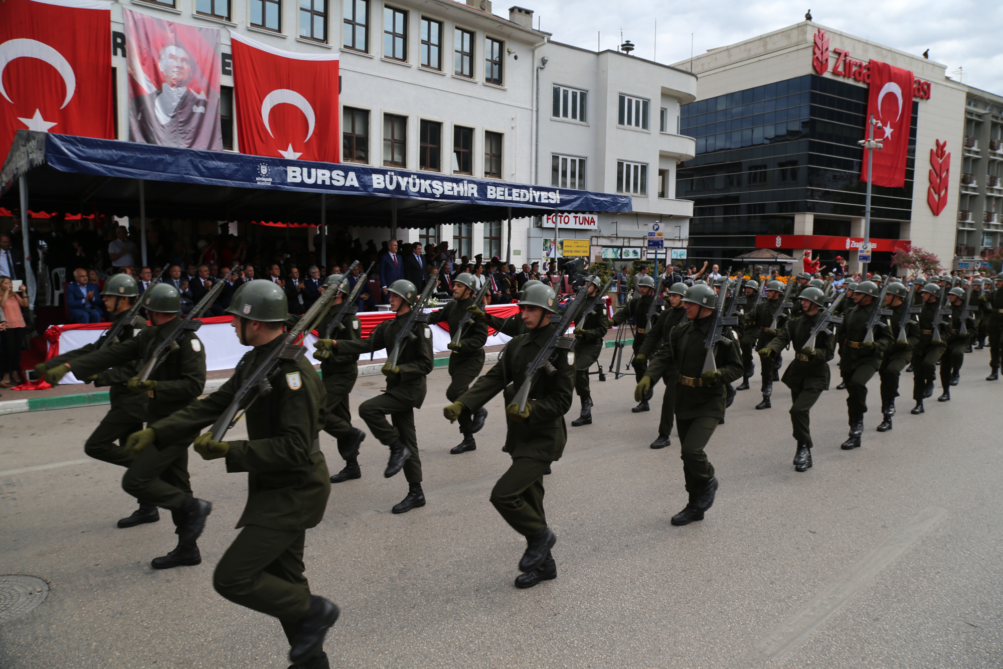 İstiklal Marşı ve şiir okunmasının ardından Osmangazi Belediyesi folklor ekibi gösteri sundu. Daha sonra Garnizon Komutanlığı tarafından görevlendirilen bir binbaşı günün anlam ve önemine dair konuşma yaptı. Resmi geçidin ardından tören sona erdi.