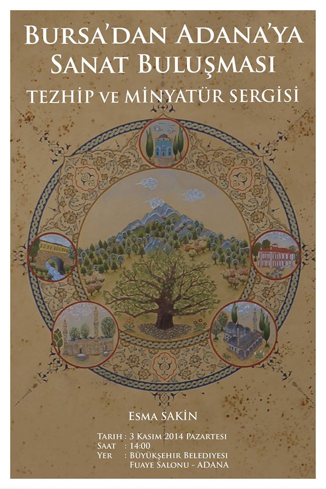 - BUSMEK minyatür ve tezhip kursiyeri Esma Sakin, ‘Bursa’dan Adana’ya Sanat Buluşması’ adlı 2. kişisel sergisini Adana’da izlenime açtı.