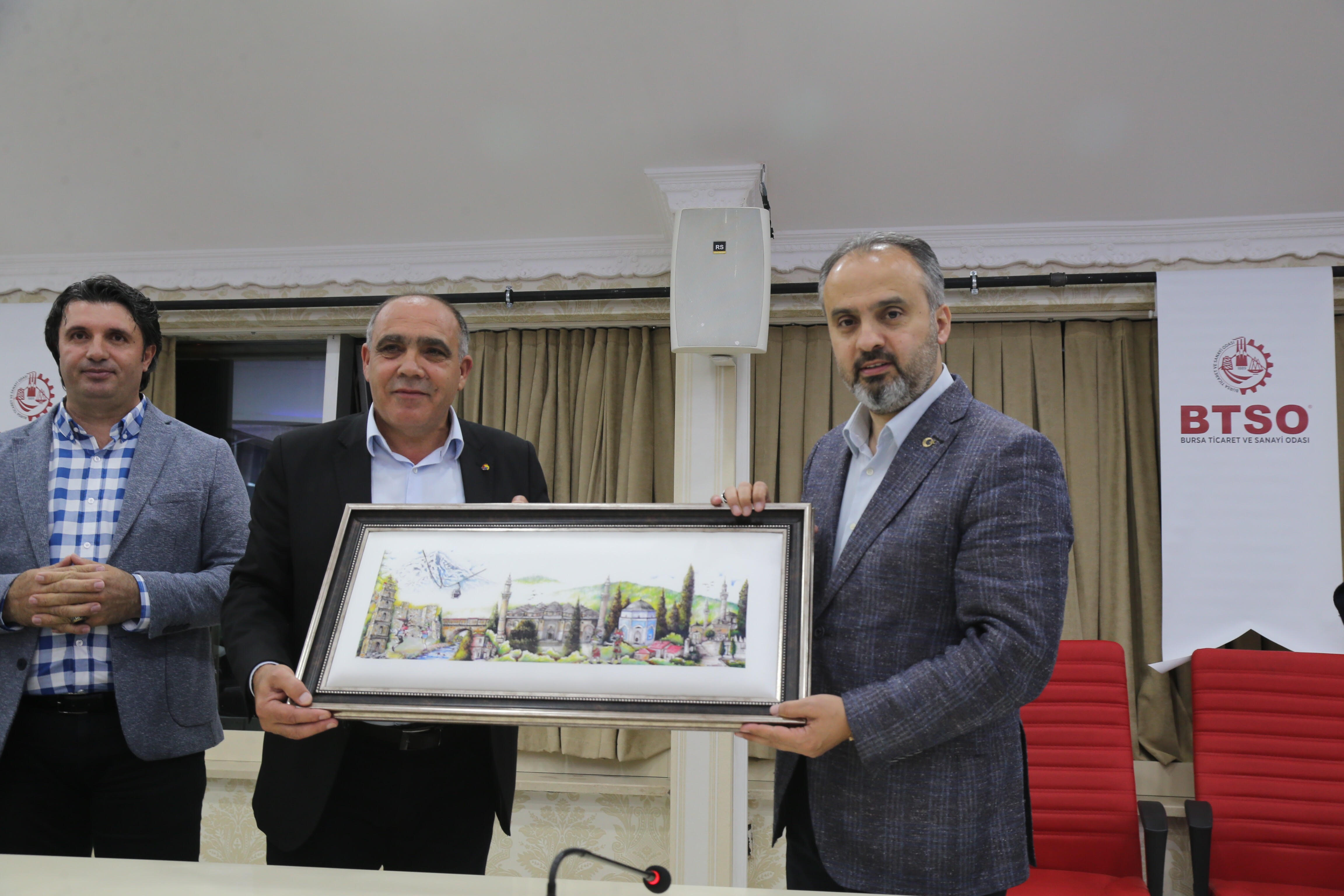 BTSO Başkanı İbrahim Burkay ise, Türkiye’nin yurt içinde ve yakın coğrafyada yaptığı ölüm kalım savaşı mücadelesini net olarak bildiklerini iade etti. Bu coğrafyada güven ve istikrar sağlandığında ve dünyanın en büyük 10 ekonomisi arasında girildiğinde Türkiye'yi kimsenin durduramayacağını anlatan Burkay, Bursa'nın da Doğubayazıt’ın her zaman yanında olacağını aktardı. Bölgede yapılacak çalışmalarda hem bilgi birikimi hem de sermaye ve yatırımcı gücü için Doğubayazıt Ticaret ve Sanayi Odası ile protokol imzaladıklarını söyleyen Burkay, "Bu protokolle bölgedeki işadamlarını Bursa'ya bekliyoruz. Bursa iş dünyası da ilçenin huzura, refaha ve barışa kavuşması için gerekli tüm destekleri verecektir. 1685'te inşaatına başlanan İshak Paşa Sarayı'nın buradaki önemini bizzat gördük. Geçmişten günümüze ve geleceğe aktarılacak mesajı, önemli bir mekanda verelim istedik" diye konuştu.