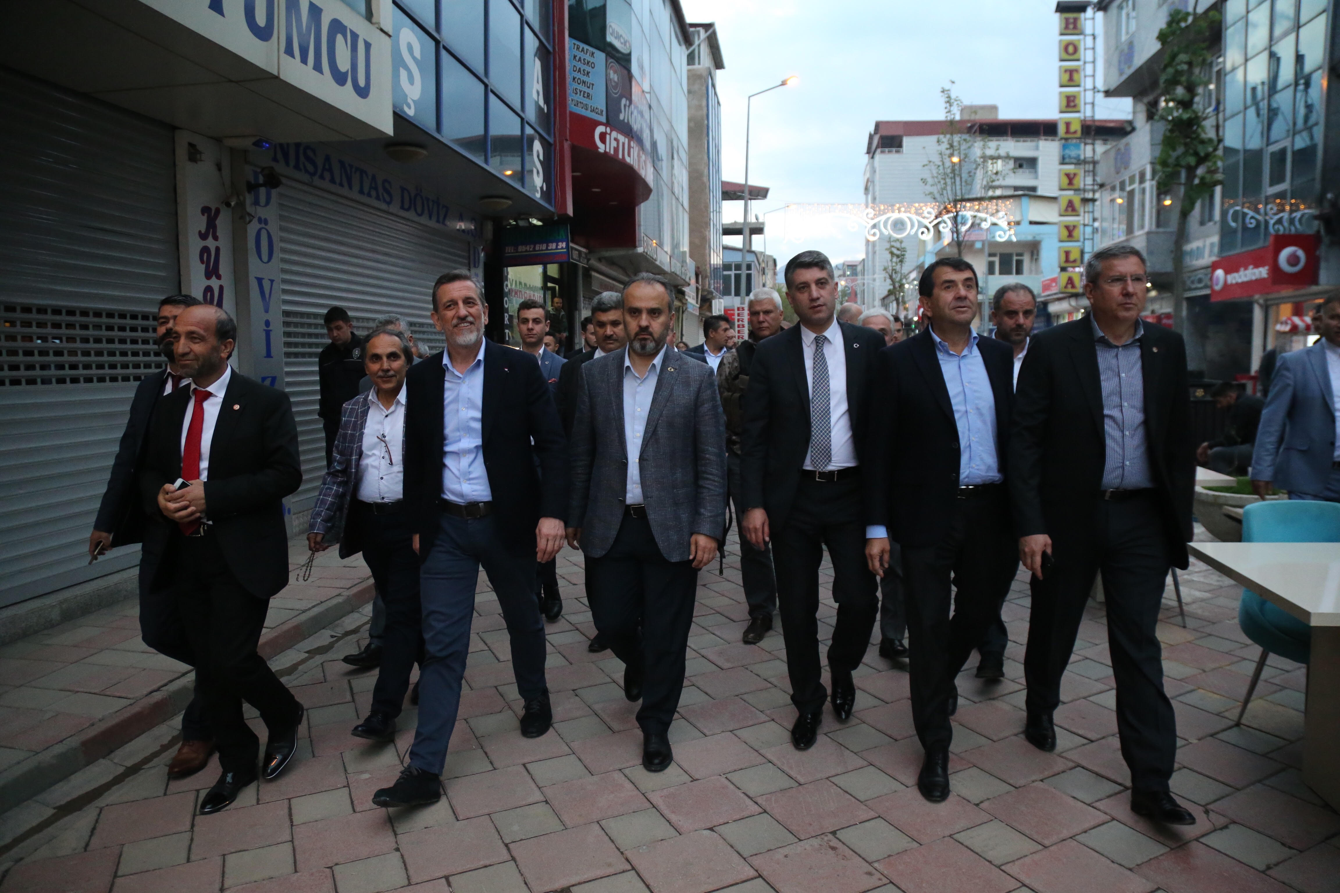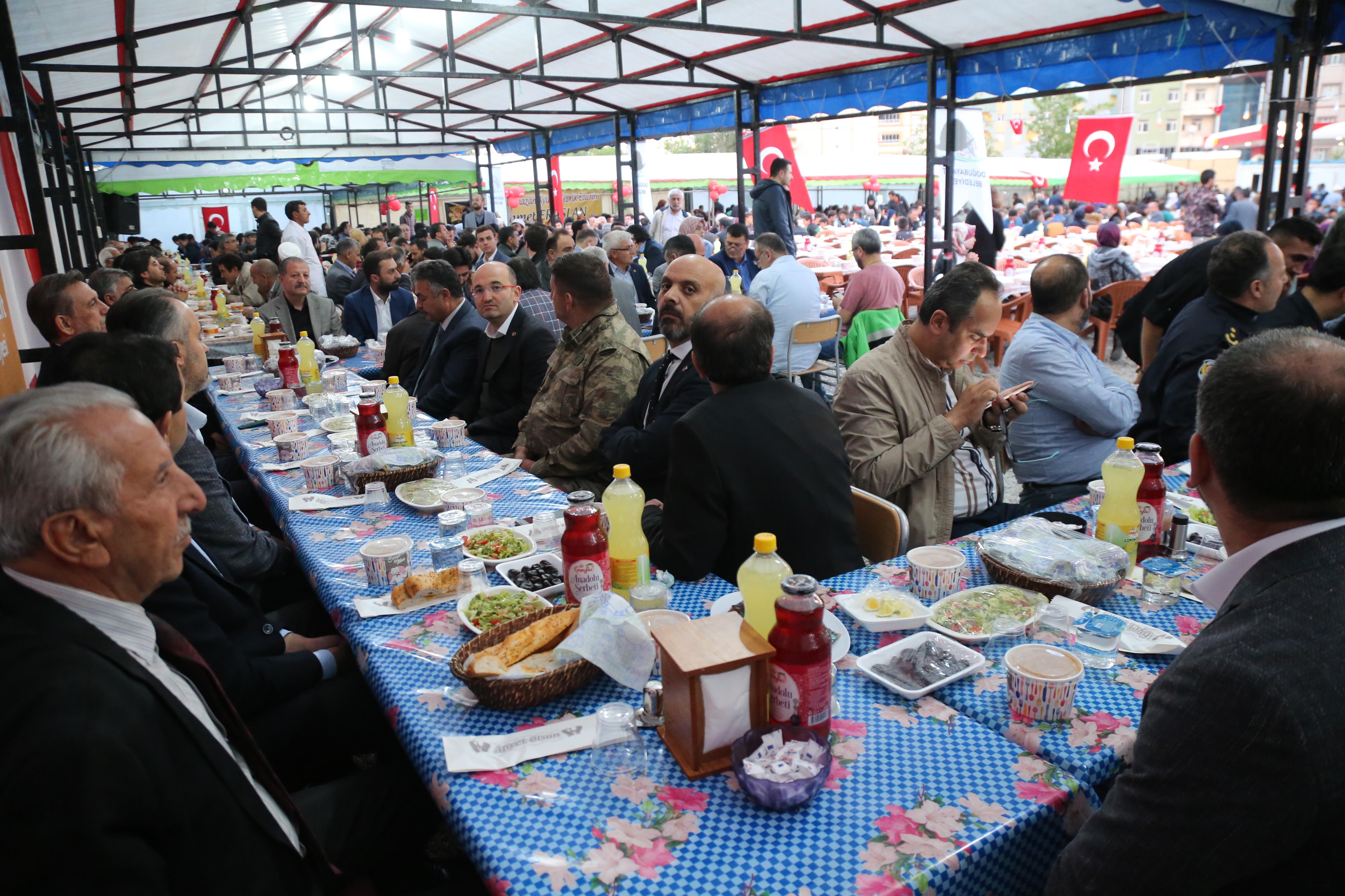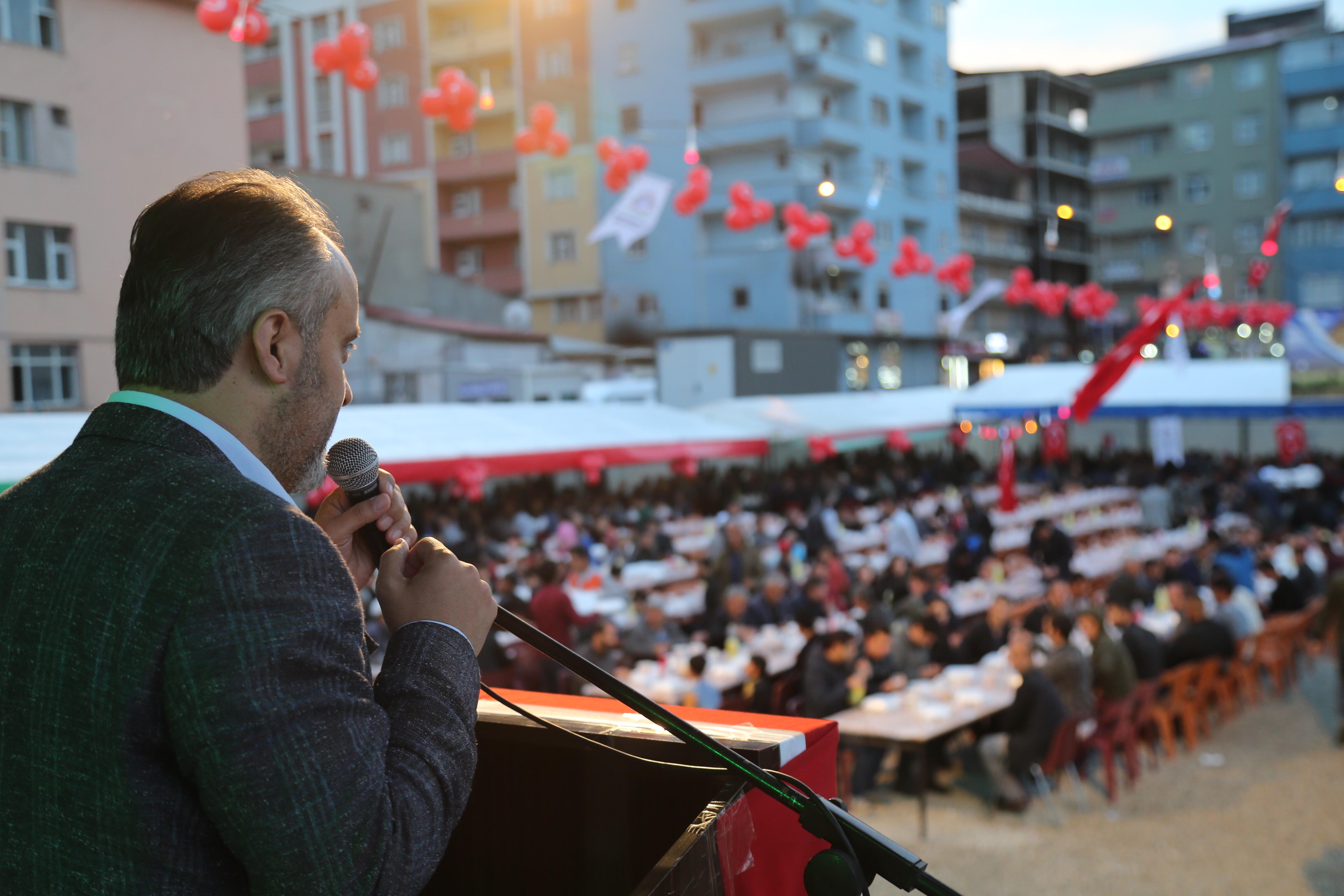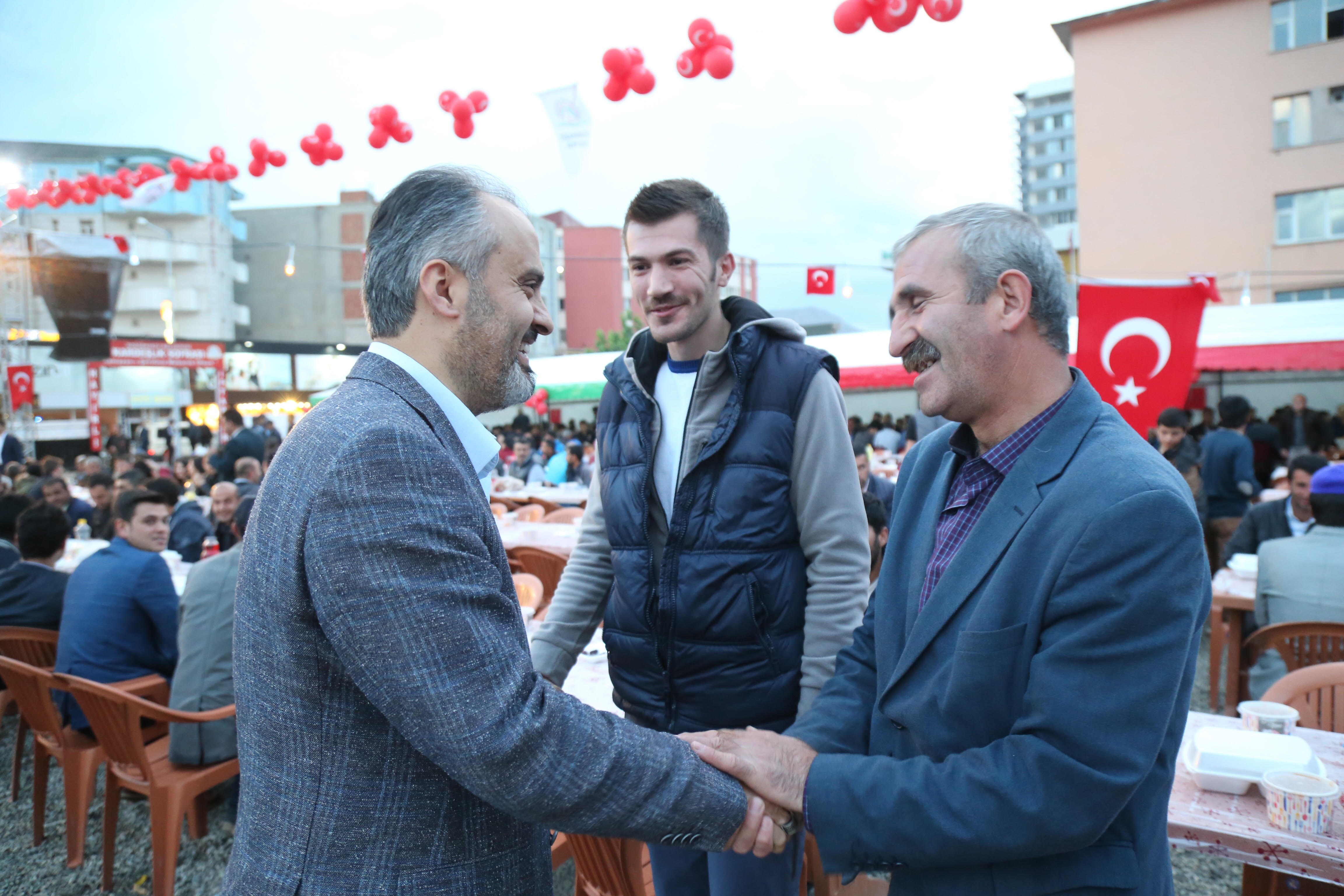 Başkan Alinur Aktaş ve İbrahim Burkay ile beraberindeki heyet, Bursa Büyükşehir Belediyesi ve BTSO’nun katkılarıyla Doğubayazıt’ta düzenlenen kardeşlik iftarında yaklaşık 3 bin kişiyle birlikte orucunu açtı. Doğubayazıt Kaymakamlığı önündeki iftar çadırında iki şehir arasındaki birlik ve beraberliğe dair mesajlar verildi. Anadolu insanını geçmişte sağ-sol, alevi-sünni, Kürt-Türk diyerek bölmeye çalıştıklarını, bu oyuna hiçbir zaman gelmediklerini ve gelmeyeceklerini belirten Başkan Aktaş, "Bizler et ve tırnak gibiyiz. Hepimiz Türkiye Cumhuriyeti’nin vatandaşıyız. Biriz, beraberiz ve kardeşiz. Birbirimize sahip çıkmalıyız. Ramazan sofralarında buluştuğumuz gibi hep beraber olalım. Çanakkale'de atalarımız bu memleketin bağımsızlığı için canlarını seve seve feda etti. Anadolu'nun her yerinden insanlar vardı. 15 Temmuz da olduğu gibi her zaman birlik ve beraberlik içerisinde olmalıyız" ifadelerini kullandı.