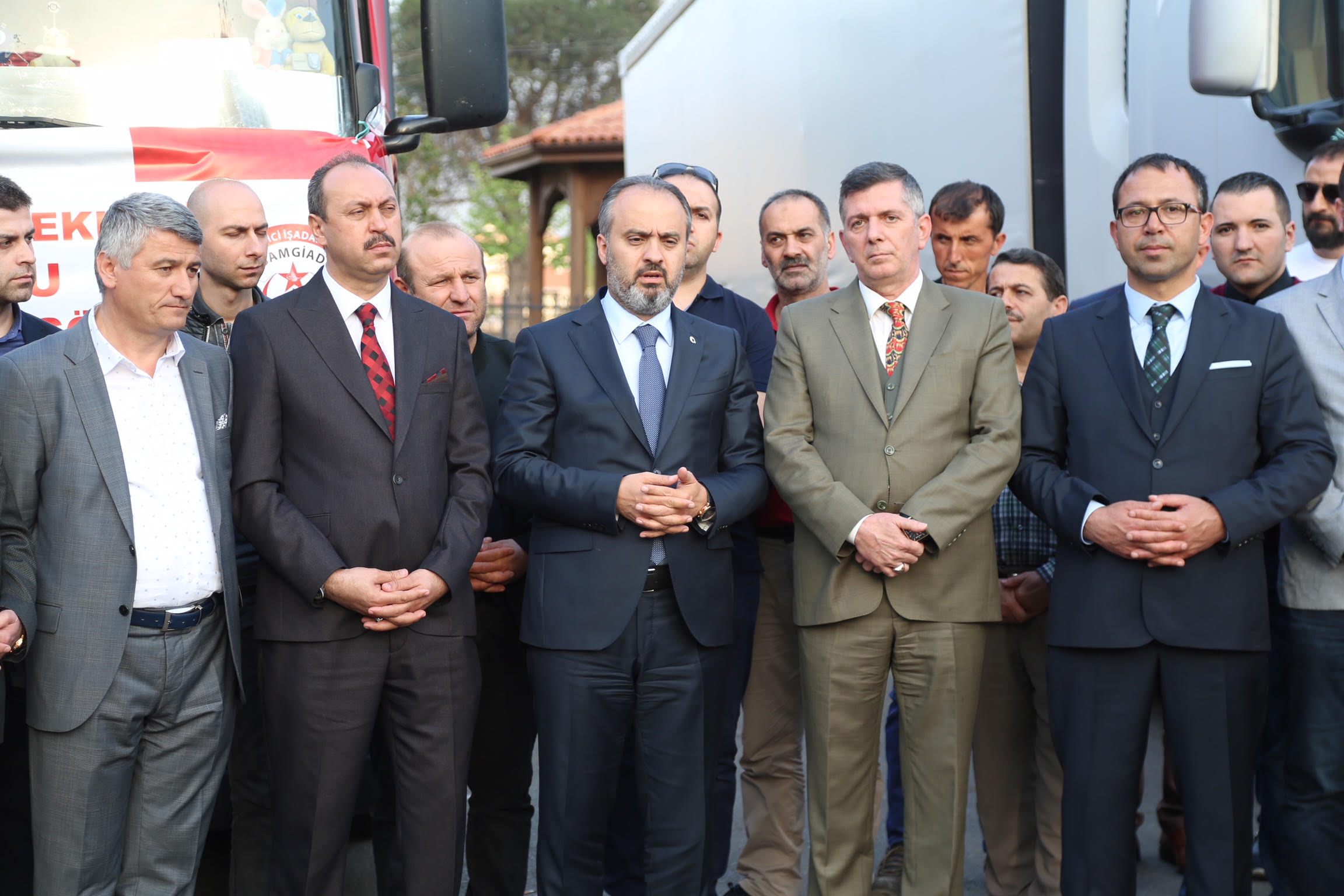 Konuşmaların ardından AK Parti İl Başkan Yardımcısı Bülent Temelli, iş adamları ve vatandaşların yer aldığı kafile, dualar eşliğinde yardım malzemesi taşıyan tırları Doğu Guta'ya uğurladı.