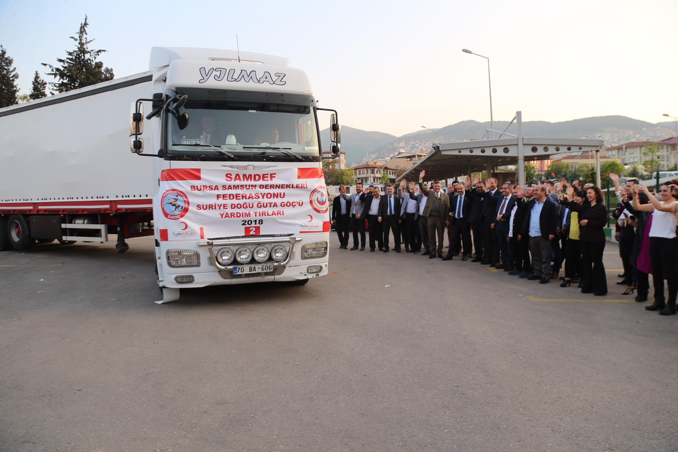Bursa Büyükşehir Belediyesi'nin destek verdiği ve Bursa Samsun Dernekleri Federasyonu (SAMDEF) tarafından toplanan 4 tır dolusu yardım malzemesi, Büyükşehir Belediye Başkanı Alinur Aktaş’ın da katıldığı törenle Suriye'nin Doğu Guta şehrine gönderildi.