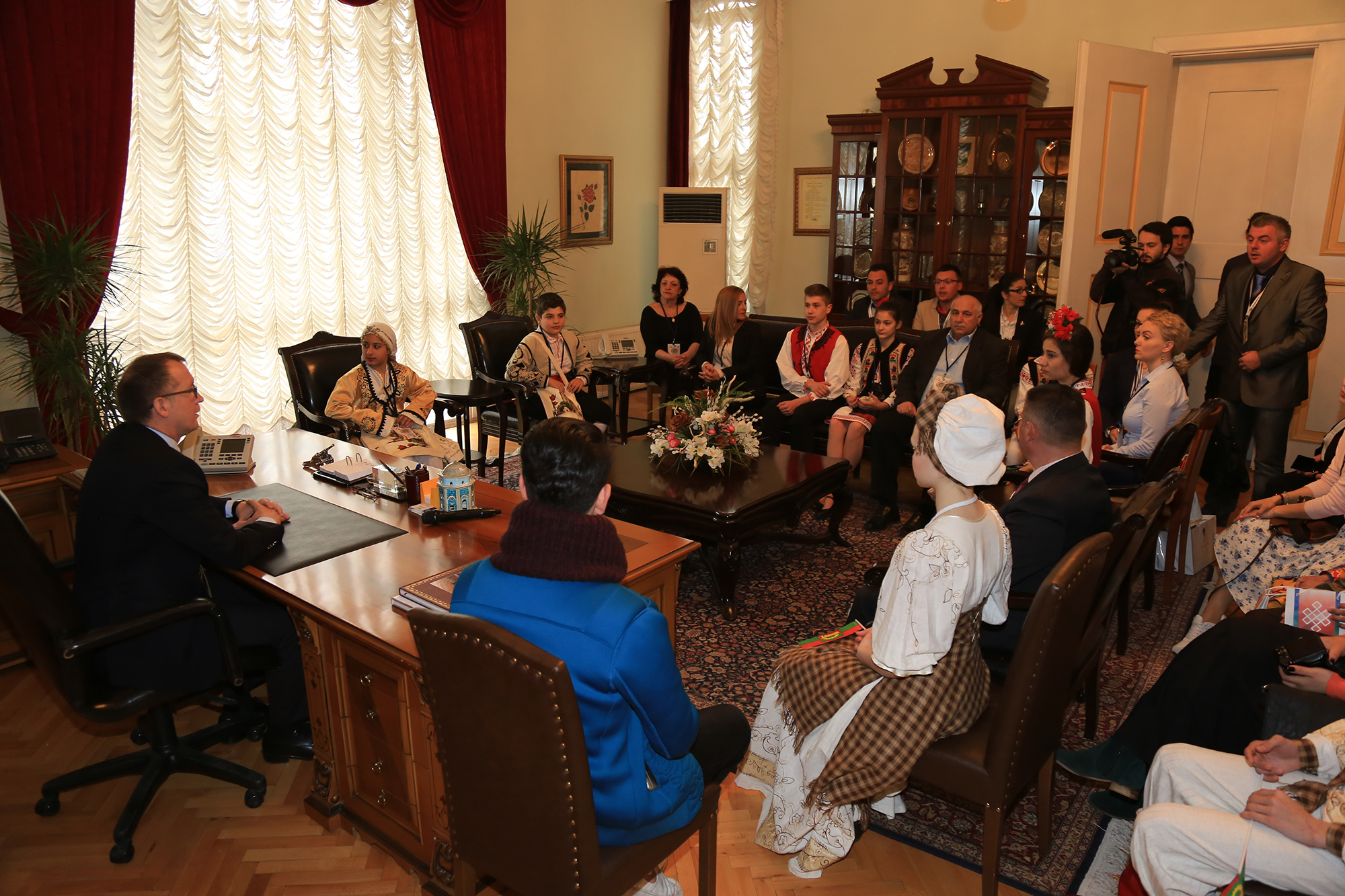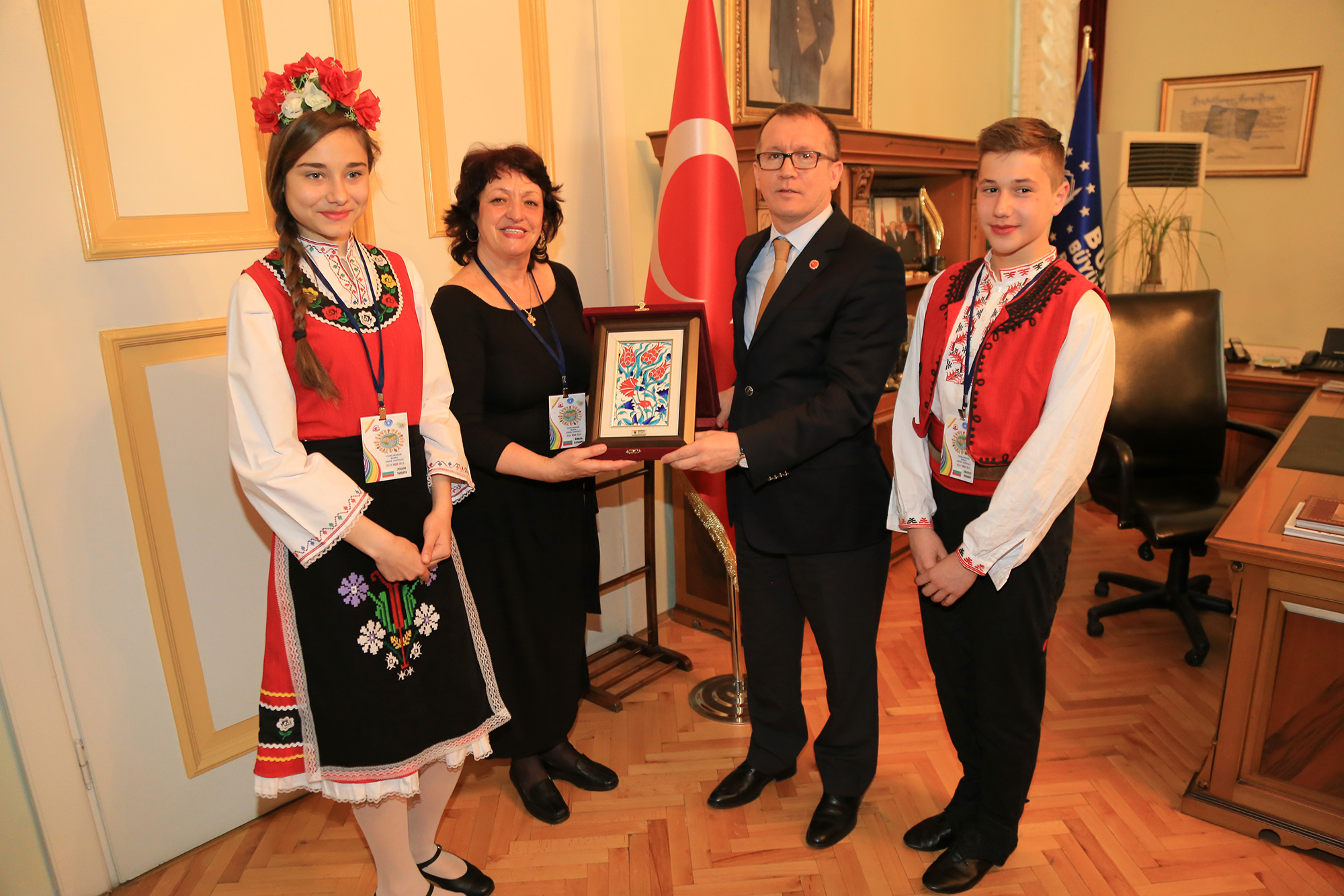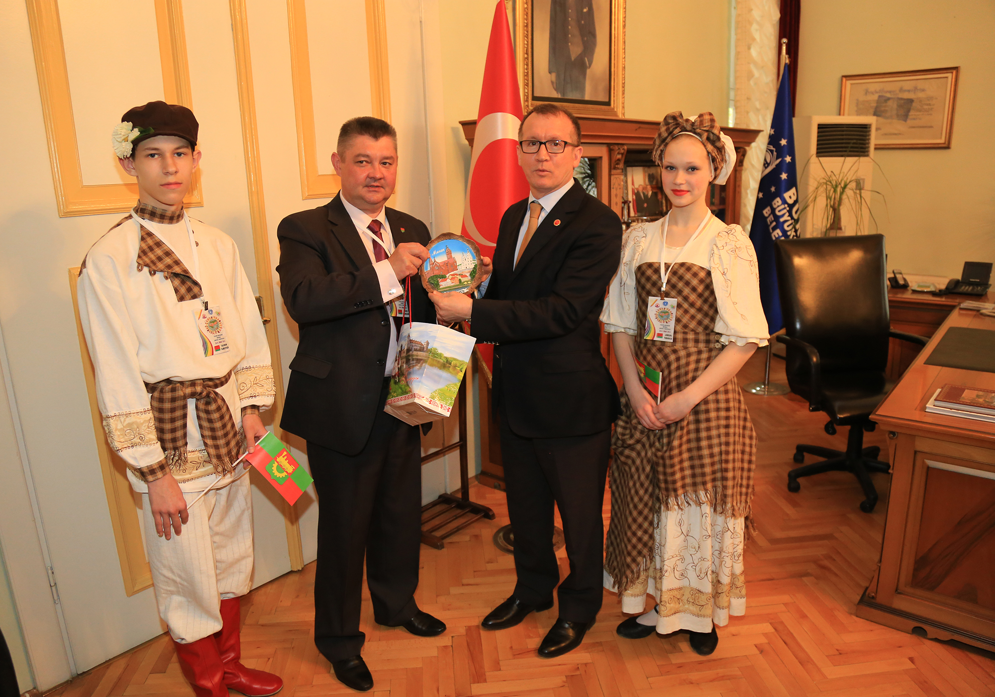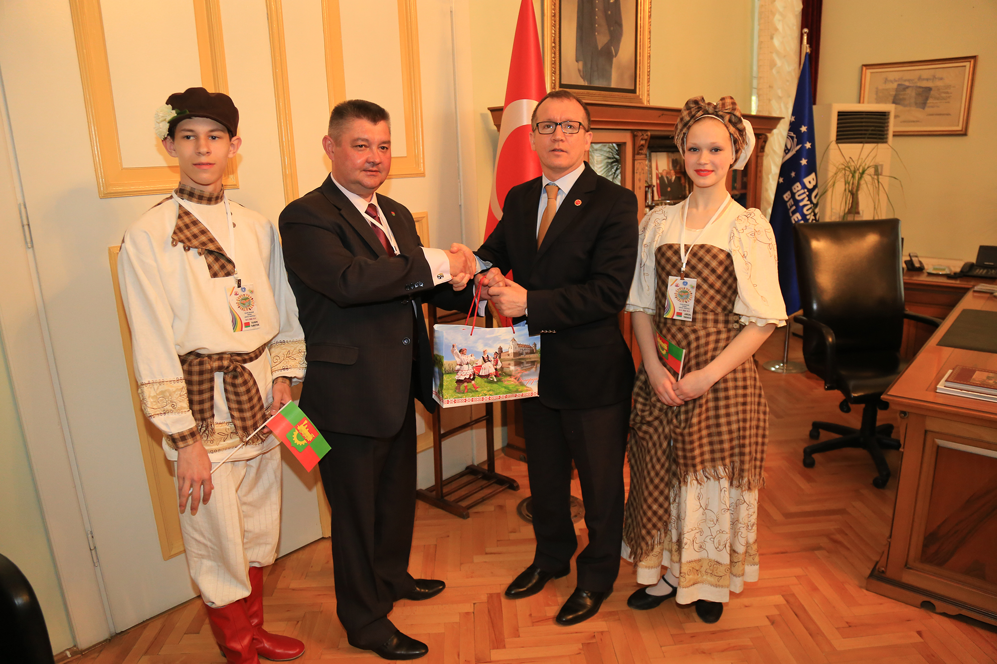Büyükşehir Belediyesi’nin desteğiyle BURFOLK Bursa Halk Dansları ve Antrenörleri Turizm Tanıtma Derneği ve Gala Kültür Sanat Organizasyon tarafından gerçekleştirilen program çerçevesinde 4 gün boyunca Bursa’da konuk olacak olan öğrenciler, bugün Gölyazı, 22 Nisan Çarşamba günü (YARIN) Nilüfer FSM Hastane Alanı ve 23 Nisan Perşembe günü de gala konserinde Nilüfer Kara Fatma Heykeli’nin bulunduğu meydanda gösterilerini yaparak yöresel kültürlerini tanıtacaklarını söyledi. Bursa’yı çok beğendiklerini ifade eden öğrenciler, Başkanvekili Karlık’a ülkelerine has hediyeler takdim etti.