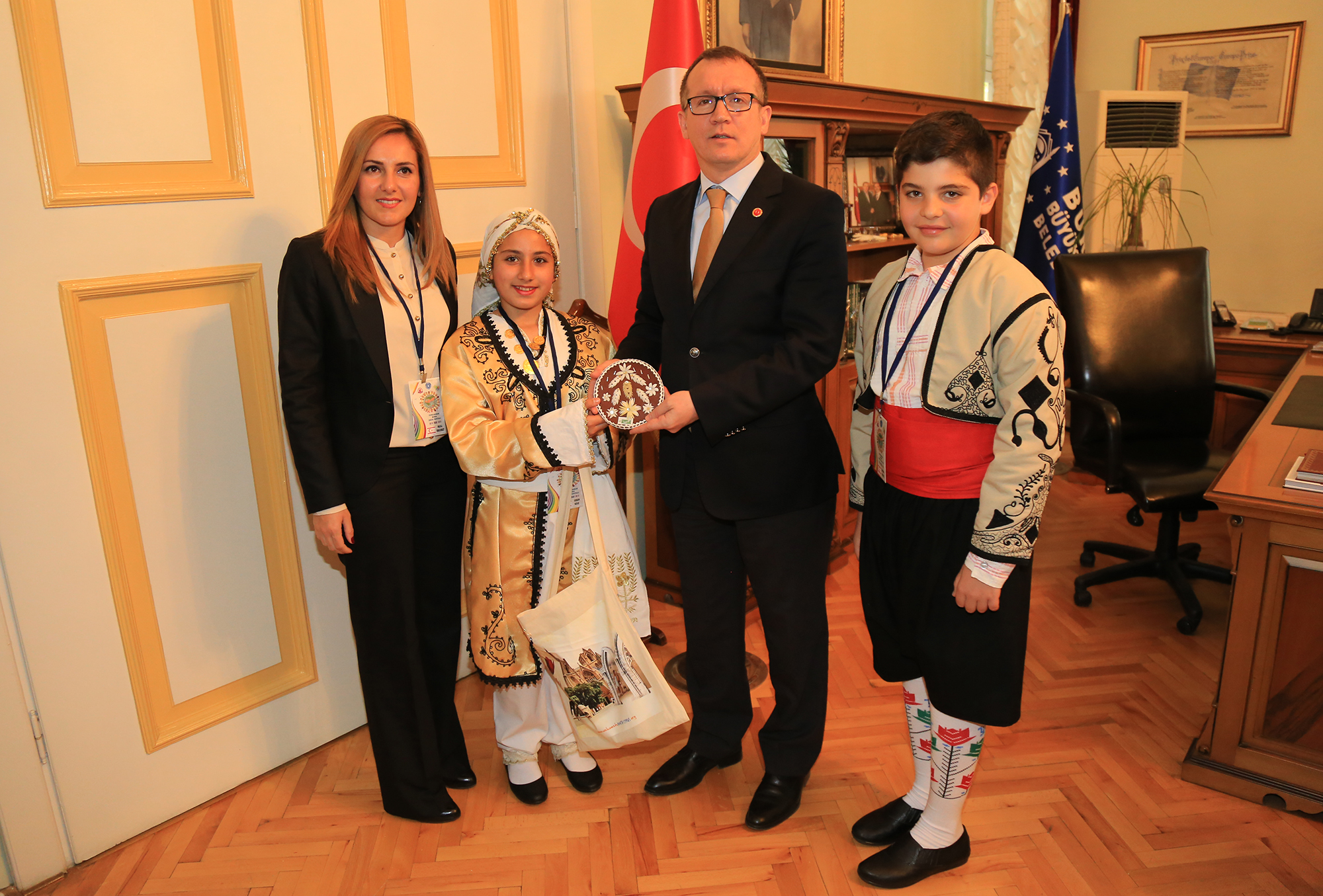 - 23 Nisan Ulusal Egemenlik ve Çocuk Bayramı nedeniyle farklı ülkelerden Bursa’ya gelen çocuklar, Büyükşehir Belediyesi’ni ziyaret etti.