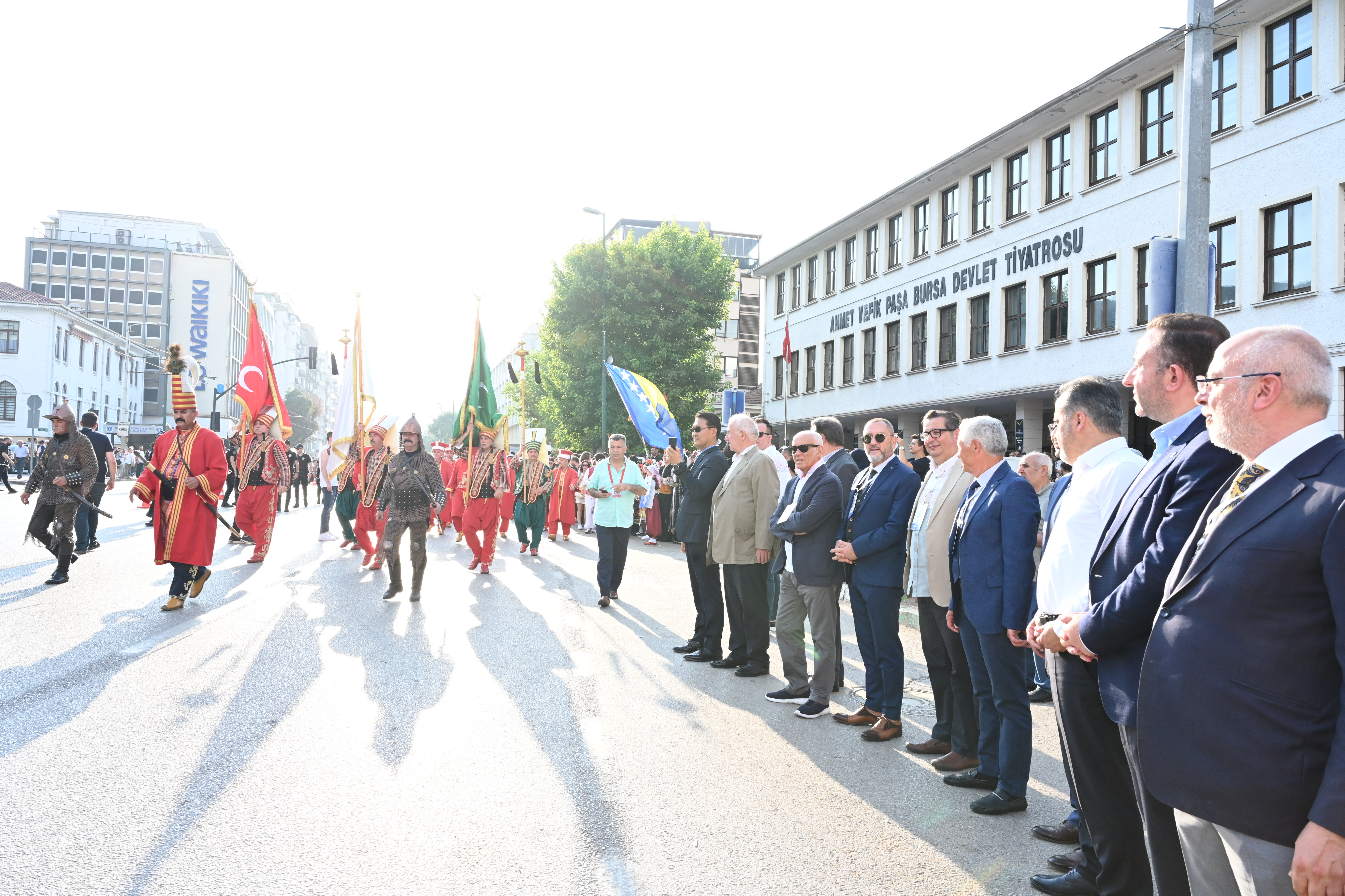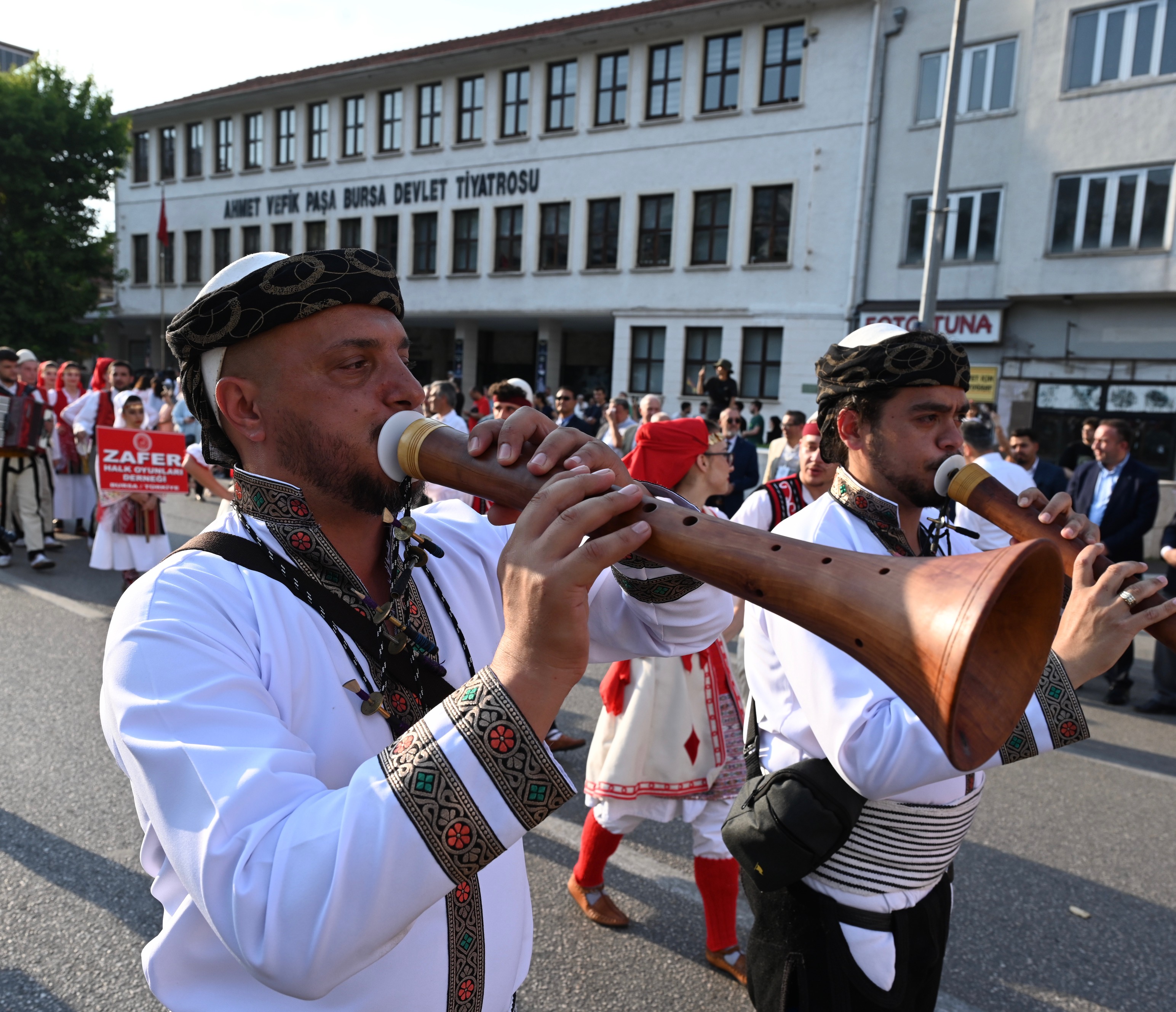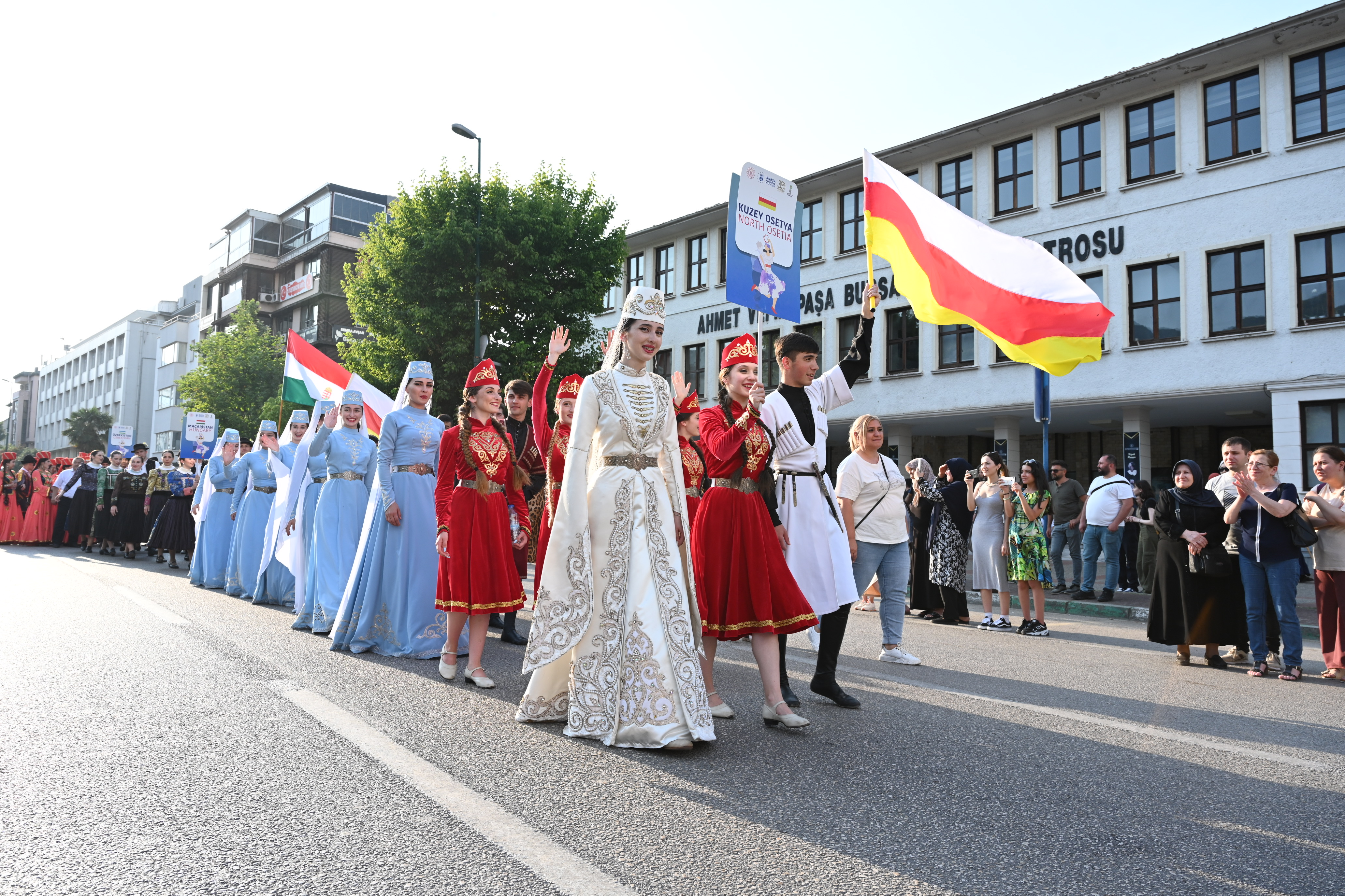 BKSTV Başkanı Sadi Etkeser de Bursa Büyükşehir Belediyesi’nin katkıları ve Kültür ve Turizm Bakanlığı’nın destekleriyle yapılan Altın Karagöz Halk Dansları Yarışması’nın dünyada sayılı halk dansları organizasyonları arasında gösterildiğini belirtti. Farklı kültür ve inanışları Bursa’da buluşturduklarını dile getiren Etkeser, yarışmanın dünya barışına katkı sağlamasını temenni etti. Konuşmaların ardından yerli ve yabancı halk dansları ekiplerinin katılımıyla renkli kortej yürüyüşü başladı. Başkan Alinur Aktaş ve beraberindekiler, kortejdeki yerli ve yabancı halk dansları ekiplerini alkışlayarak selamladı. Cumhuriyet Caddesi üzerinden Kültürpark’a kadar süren kortejde, yabancı ekipler yöresel danslarıyla kendilerini tanıttı.