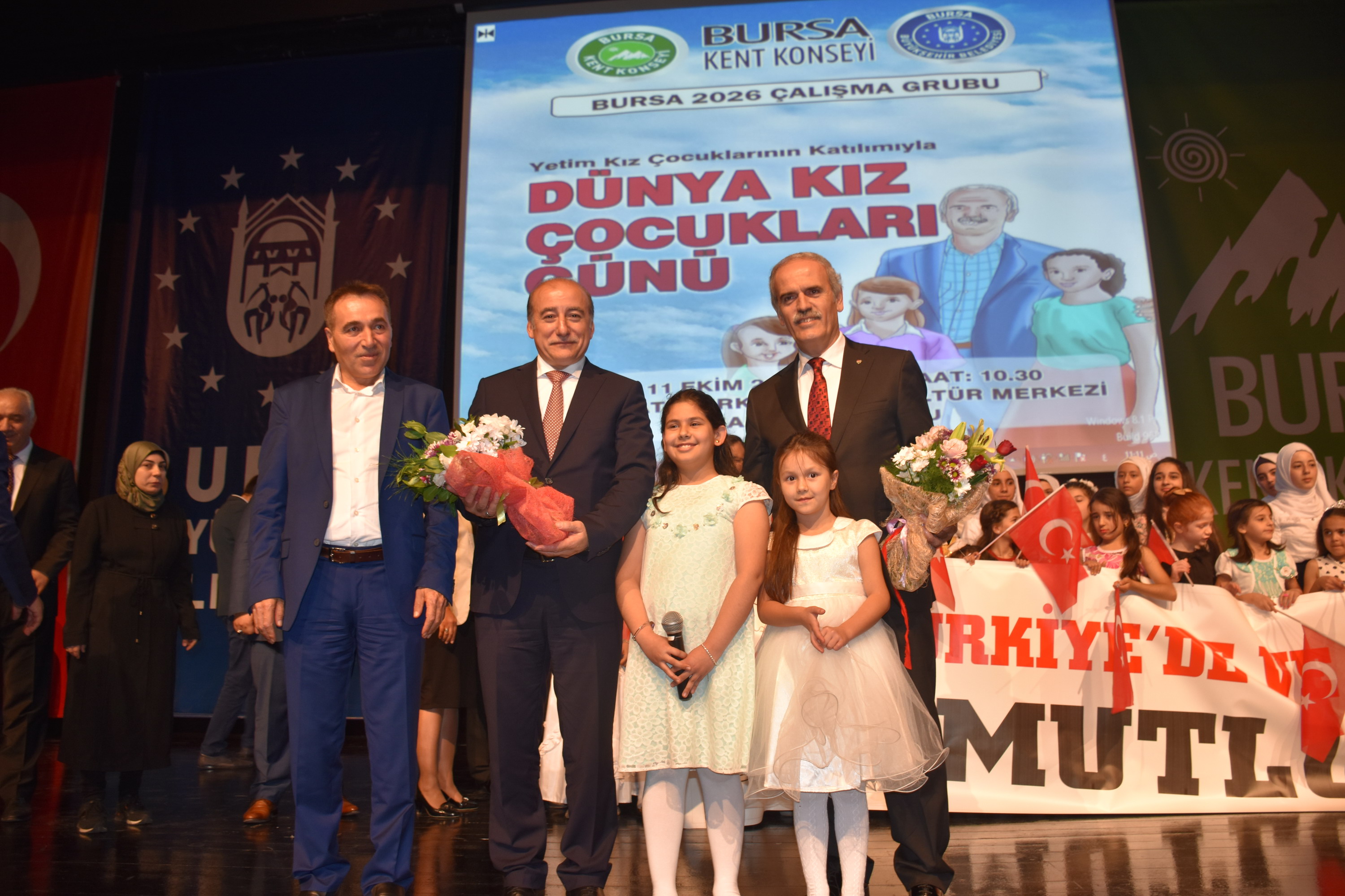 BURSA – Bursa Kent Konseyi tarafından “Dünya Kız Çocukları Günü’ münasebetiyle hazırlanan programda, aynı sahneyi paylaşan Suriyeli ve Bursalı kız çocukları dünyaya barış ve sevgi mesajları verdi.