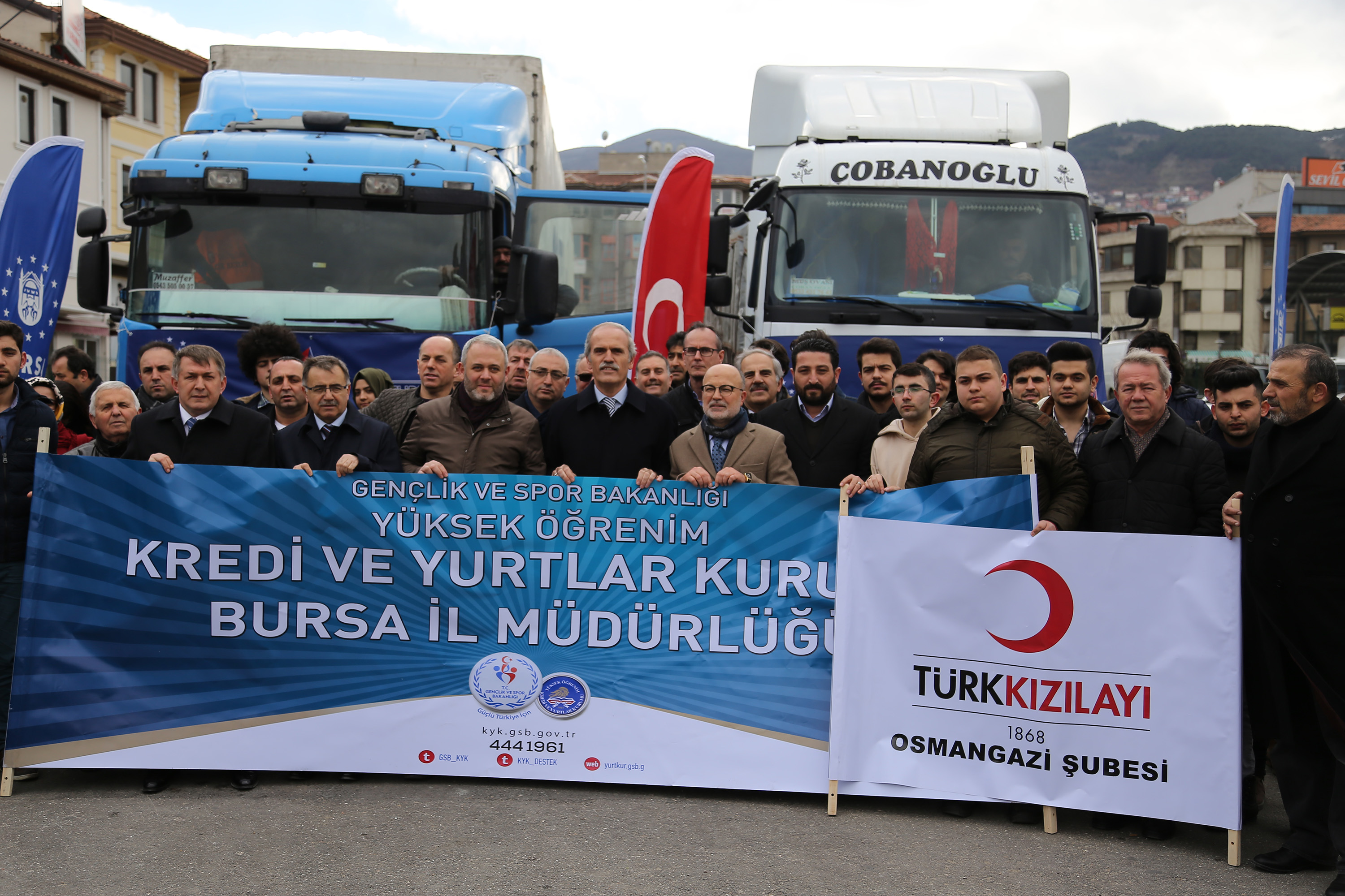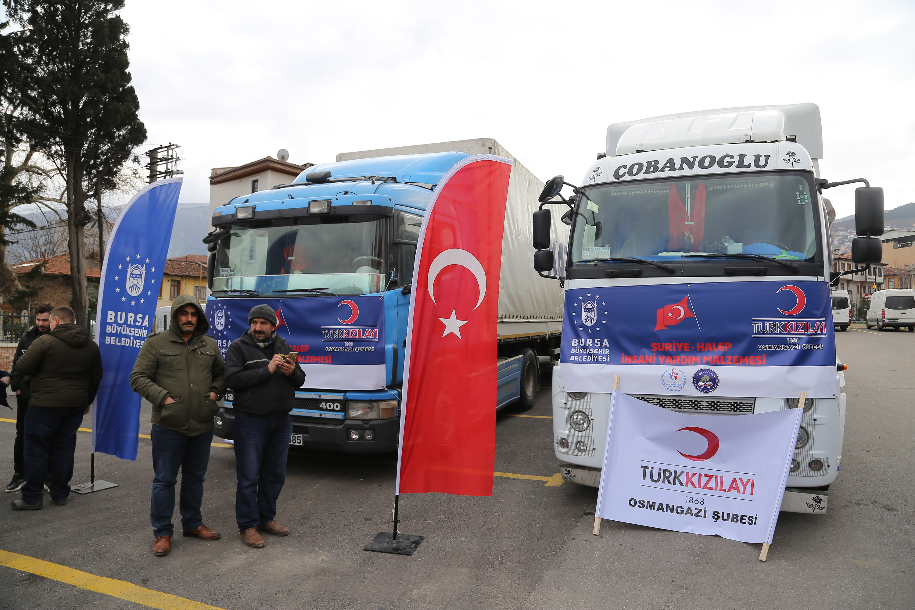 - Bursa Büyükşehir Belediyesi ile Kızılay Osmangazi Şubesi ve Kredi ve Yurtlar Kurumu İl Müdürlüğü işbirliğiyle toplanan 2 tır dolusu yardım malzemesi, Suriye Halep’teki ihtiyaç sahiplerine ulaştırılmak üzere yola çıkarıldı.
