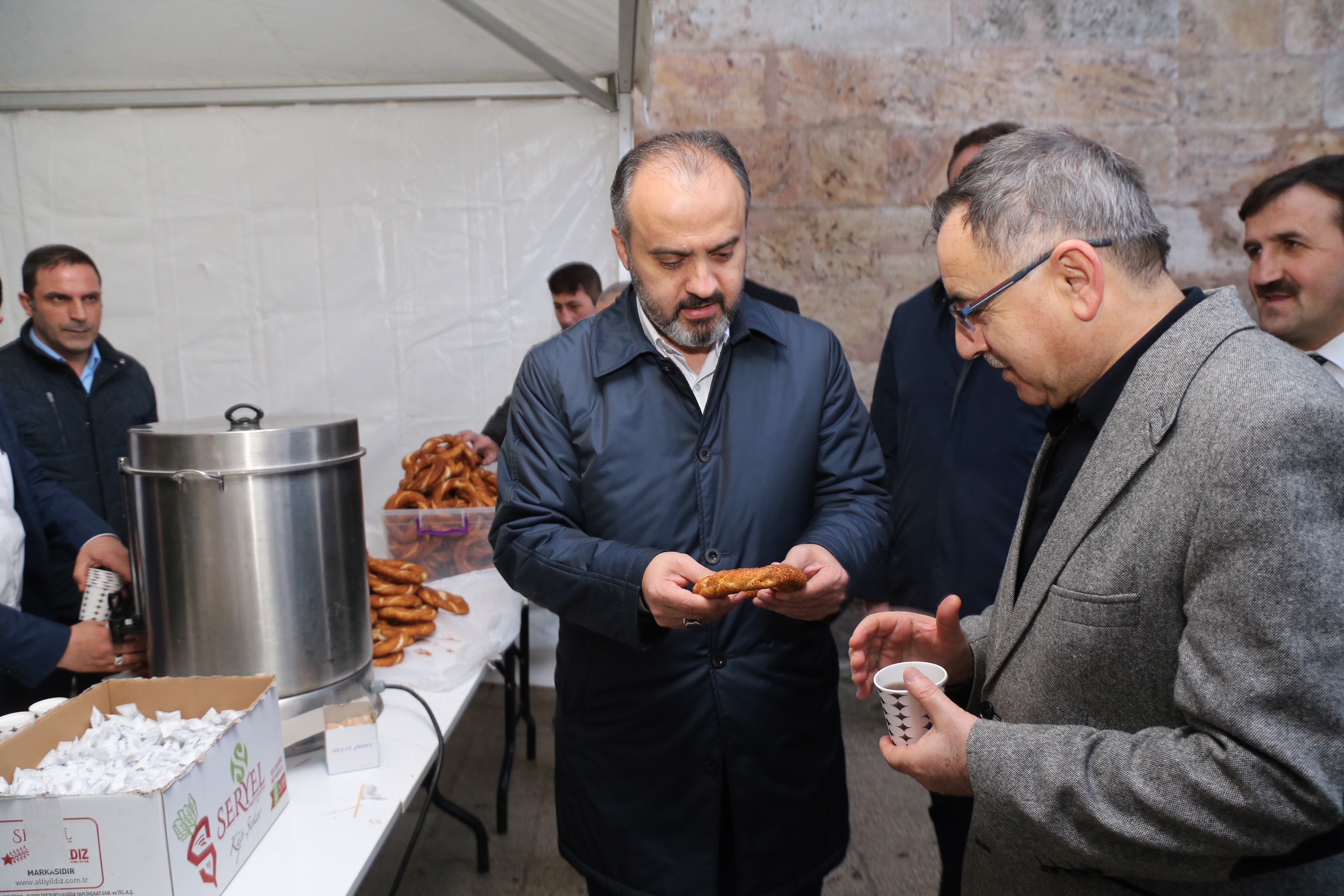 Bursalıların yoğun katılımıyla kılınan namazın ardından, çıkışta ikram edilen simit, çay ve çorba ile kahvaltısını yapan Aktaş, vatandaşlarla bol bol sohbet etti. Aktaş, İl Müftülüğü tarafından Türk ordusu ve şehitlere ithafen düzenlenen ‘Kahraman Ordumuza Tehecütte Duaya’ etkinliğinin de Ulu Cami’de oluşu nedeniyle bu hafta bereket sofrasının burada yapıldığını kaydetti.