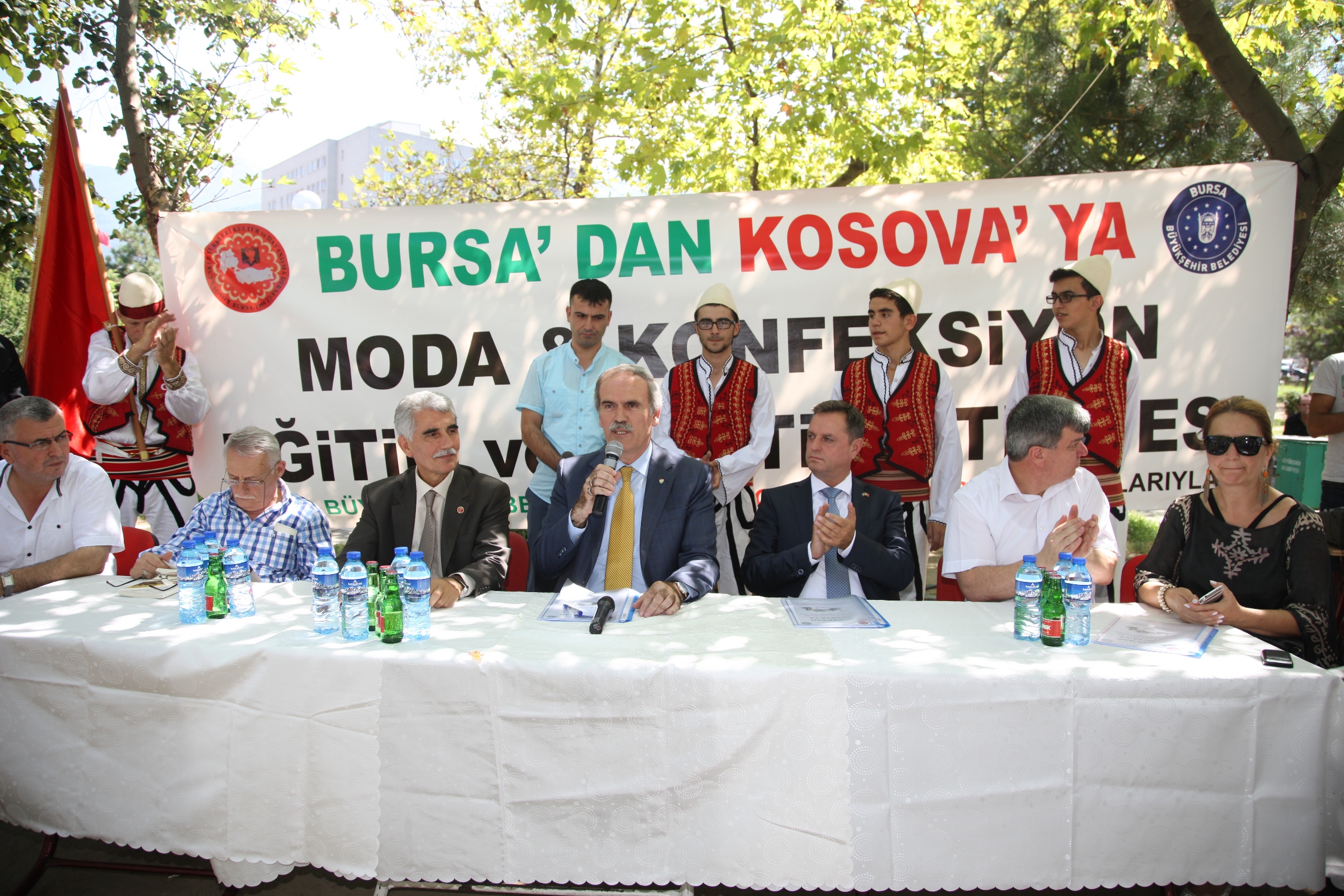 Başkan Altepe, Büyükşehir Belediyesi ile Kosova Üsküp Derneği’nin organizasyonu ve işadamlarının katkılarıyla alınan konfeksiyon makinelerinin Bursa’da eğitim gören Kosovalı 20 kişiye gönderildiğini belirtti. Kosova’dan gelenlerin Bursa’da 2 ay boyunca konfeksiyon eğitimi aldığını ve ardından ülkelerine döndüğünü söyleyen Başkan Altepe, “Artık onlar ne yapacak? Tabii ki üretim. Onun için de makine lazım. Büyükşehir Belediyemiz, derneğimiz ve işadamlarımızın katkısıyla gerekli olan ekip ve ekipmanlar oluşturuldu. Şu anda 20 parça oraya gönderiliyor. Bu daha da artabilir” diye konuştu.