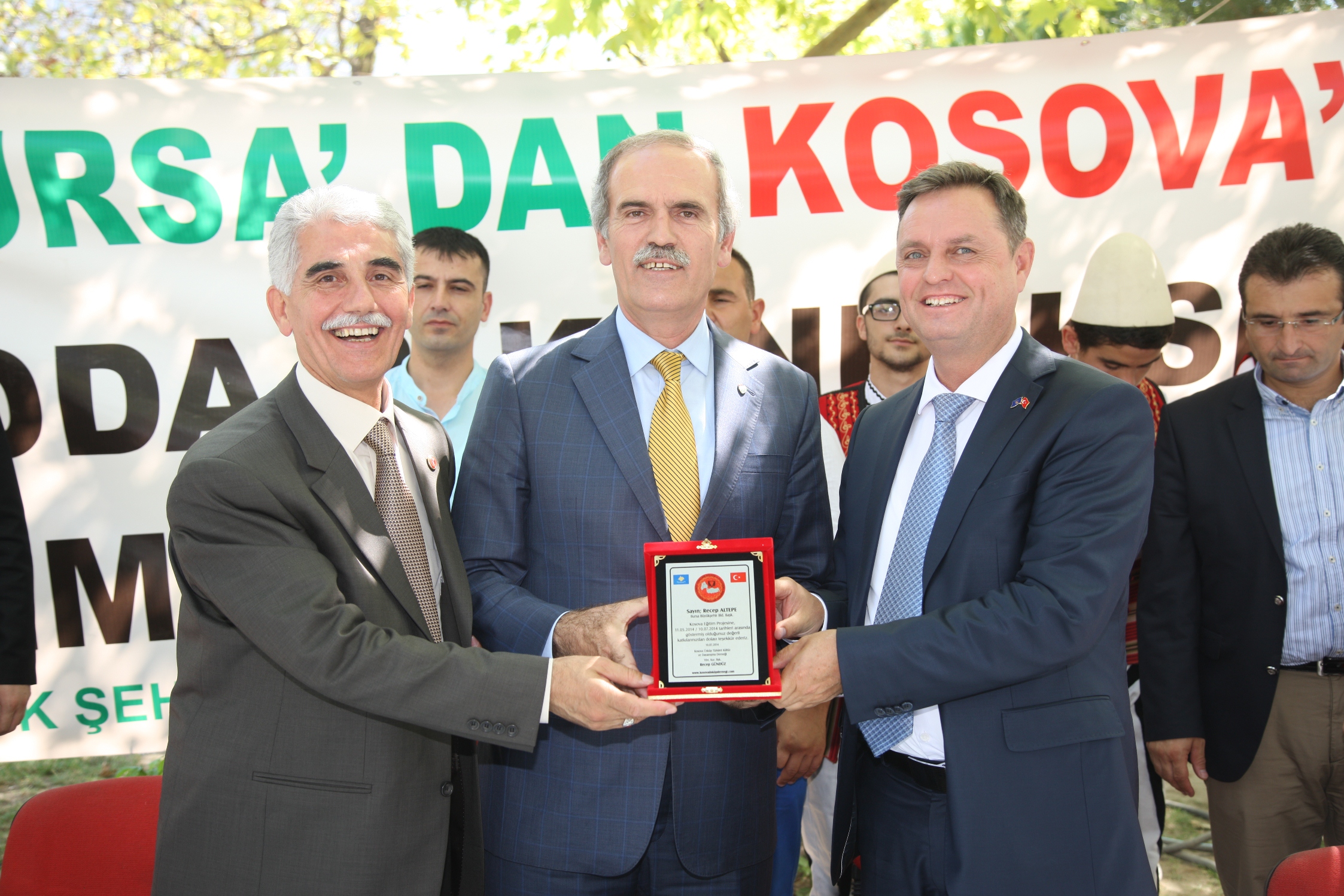 Kosova Üsküp Derneği Başkanı Recep Gündüz ve Bursa İl Dernekler Müdürü Osman Dikmen de, yaptıkları selamlama konuşmalarında, Balkan ülkelerine gösterdiği hassasiyet ve verdiği destekler nedeniyle Başkan Altepe’ye teşekkür etti. Konuşmaların ardından Kosova Üsküp Derneği Başkanı Recep Gündüz, Başkan Altepe ve İstanbul Başkonsolosu Morina’ya birer teşekkür plaketi takdim etti. Gündüz, Başkan Altepe’ye ‘yıllar önce, meclis üyeliği sırasında’ derneğe yapmış olduğu ziyareti içeren fotoğrafı hediye etti. Plaket töreninin ardından protokol üyeleri, Kosova’ya gidecek konfeksiyon makinelerini taşıyan kamyonu uğurladı.