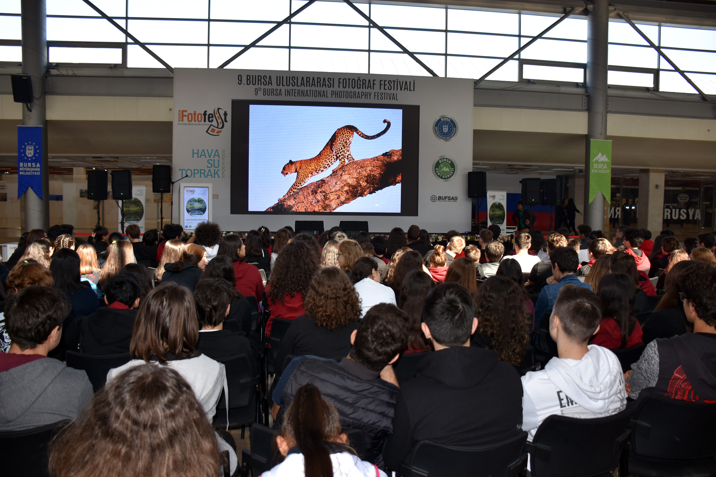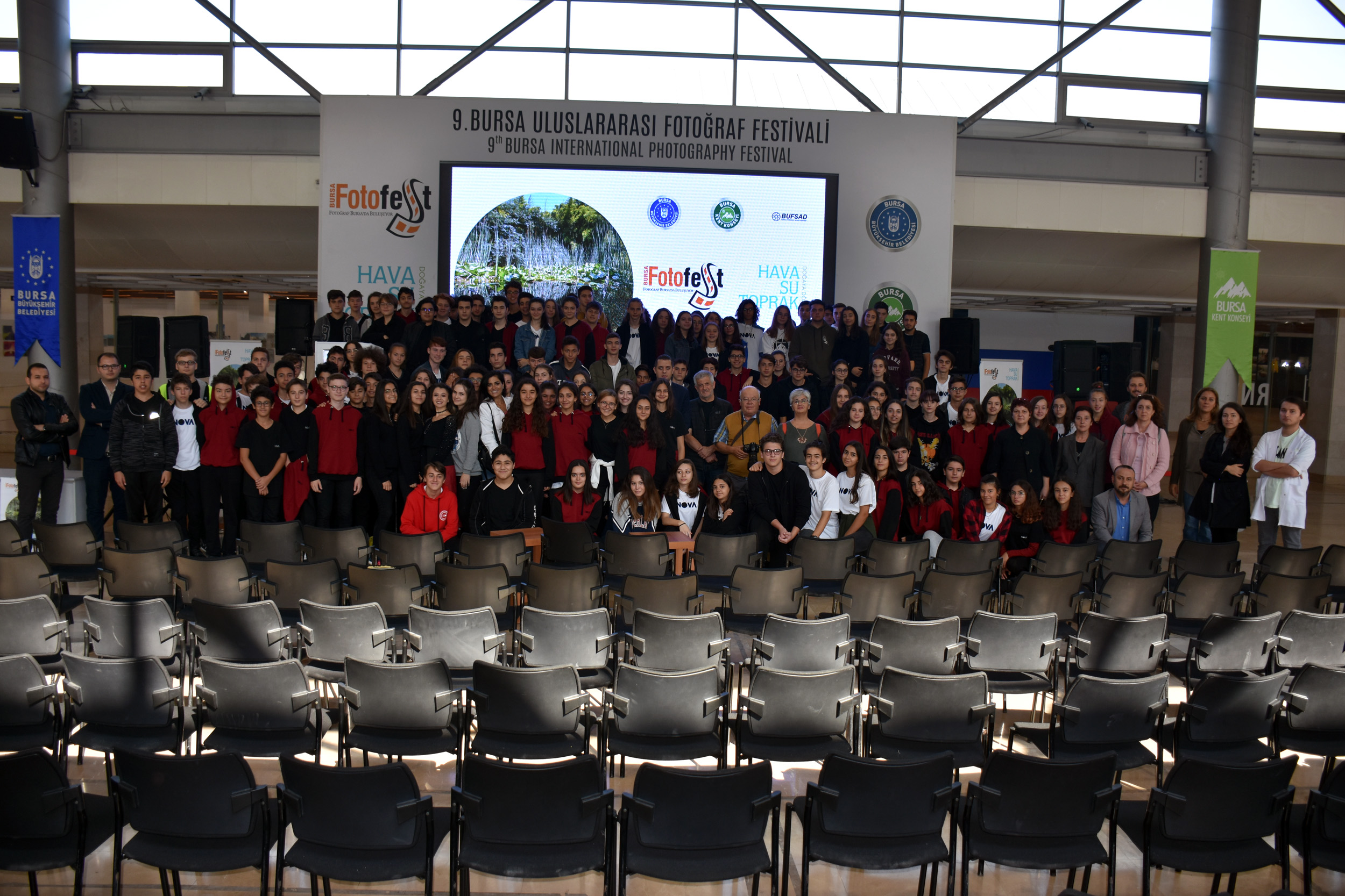 Bursa Büyükşehir Belediyesi ve Bursa Kent Konseyi tarafından organize edilen, Bursa Fotoğraf Sanatı Derneği’nin (BUFSAD) destekleriyle ‘Hava, su, toprak... Doğaya dönüş’ temasıyla düzenlenen 9. BursaFotoFest, fotoğraf meraklılarını usta isimlerle buluştururken, aynı zamanda Atatürk Kongre Kültür Merkezi (Merinos AKKM) Fuar Alanı’nda oluşturulan fotoğraf sergisiyle Bursalılara da görsel şölen yaşatıyor. 16 ülkeden yerli ve yabancı 230 fotoğraf sanatçısının 165 sergisi ve iki binden fazla fotoğraf karesinden oluşan festival alanı, başta öğrenciler olmak üzere her kesimden büyük ilgi görüyor. Her gün farklı farklı eğitim kurumlarından binlerce öğrencinin ziyaret ettiği sergi, birbirinden önemli isimlerin değerli çalışmalarını barındırıyor. Merak ettikleri soruları fotoğraf sanatçılarına sorma imkanı bulan öğrenciler, festival anısına kitapçık ve broşürleri imzalatıyor, fotoğraf gösterilerini izliyor.